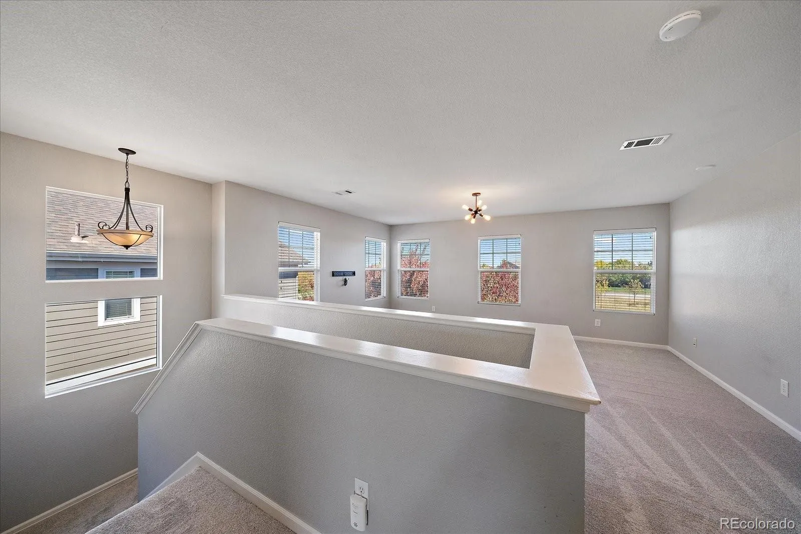 Upstairs, the primary suite offers a retreat with a soaking tub, dual vanities, tile flooring, and a generous walk-in closet. The secondary bedrooms won’t disappoint either with lots of light and walk-in closets. The full hall bath has been refreshed with dual sinks and updated tile. A bright loft area provides a flexible space with plenty of natural light and views.