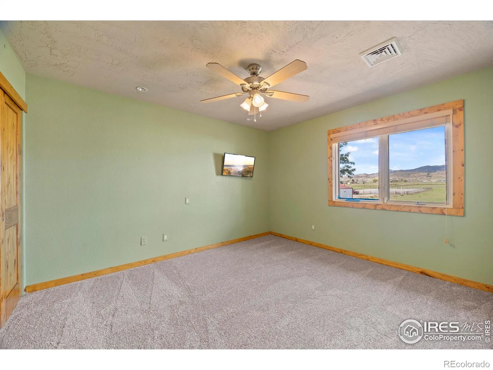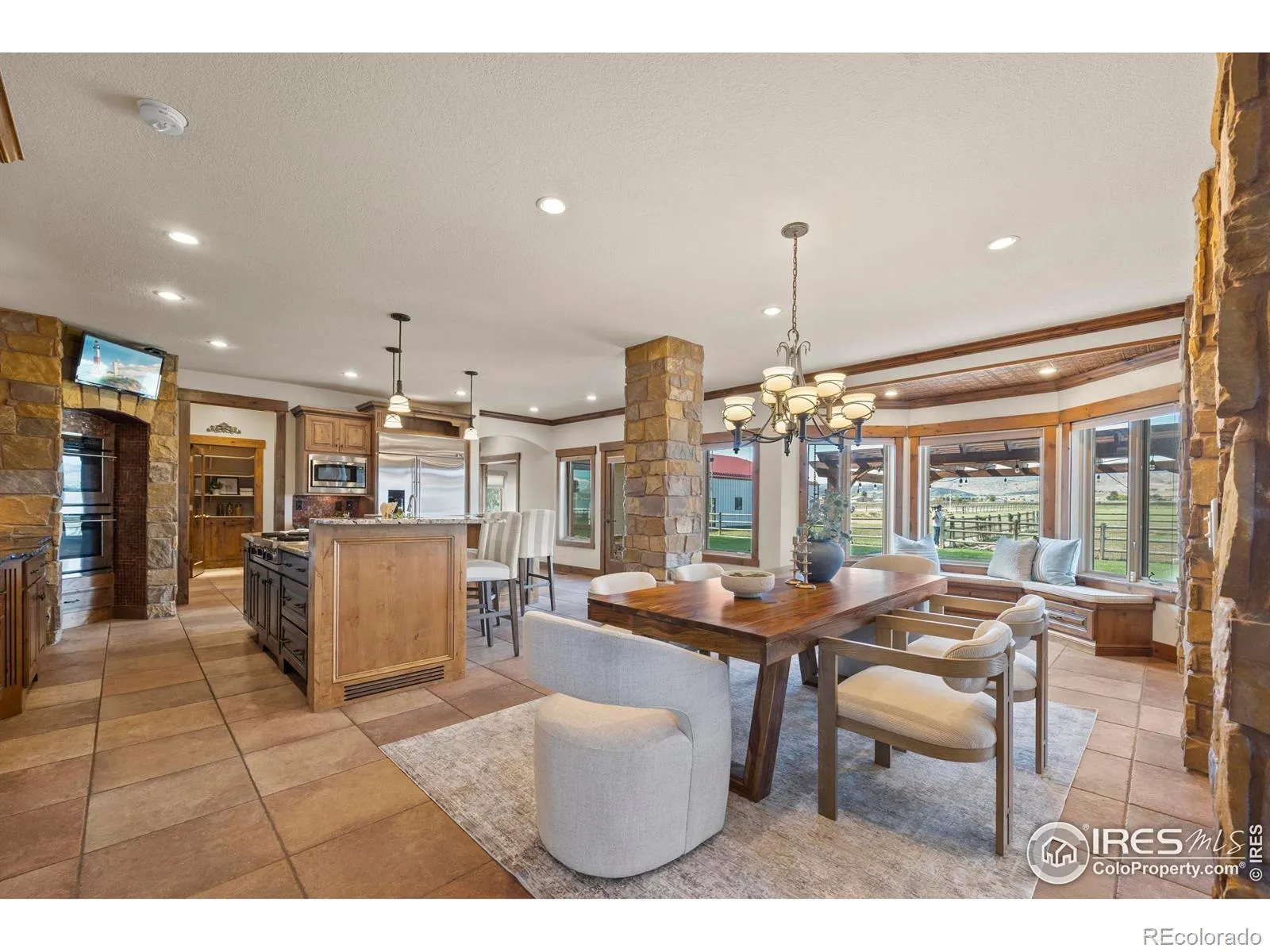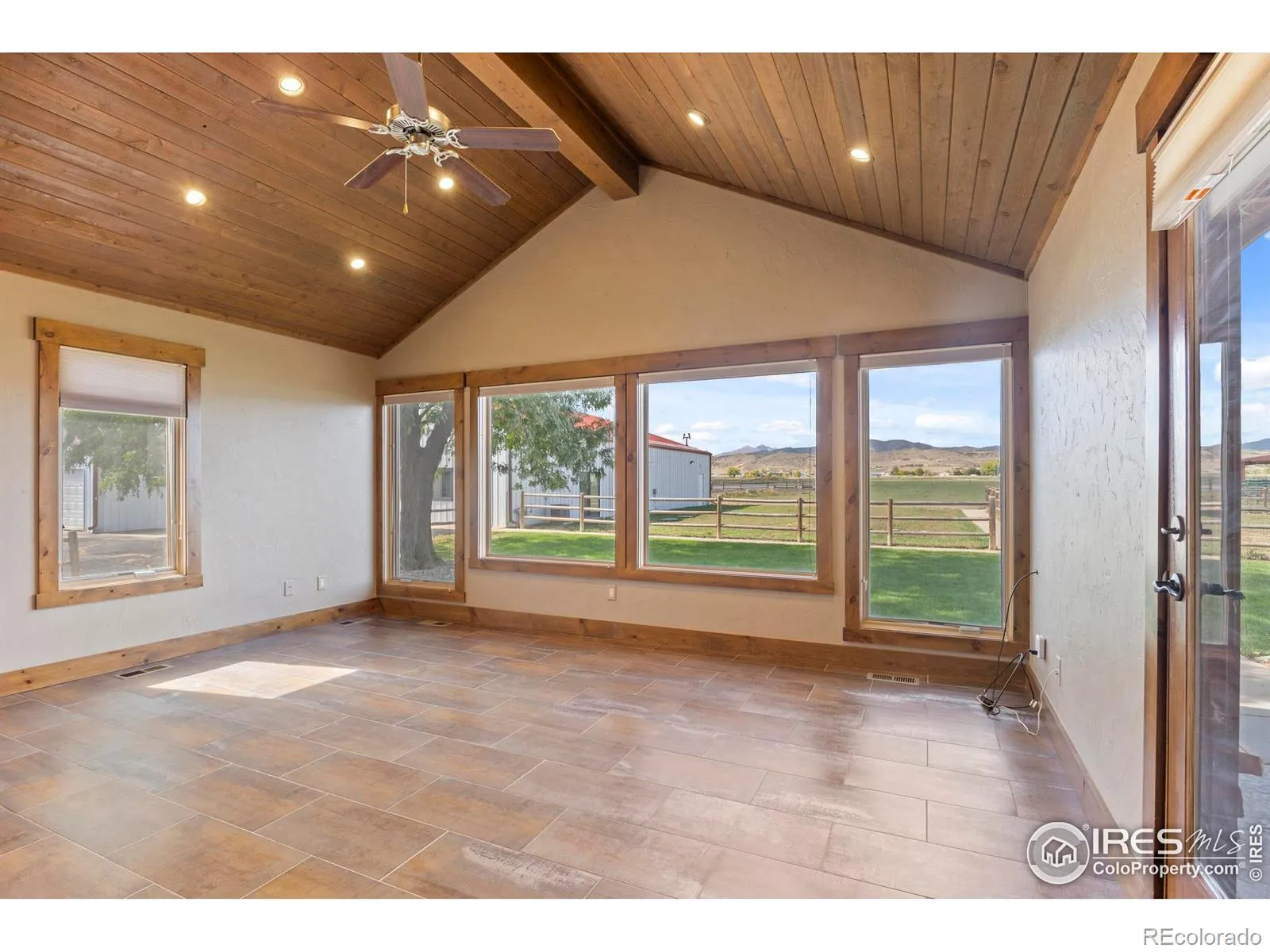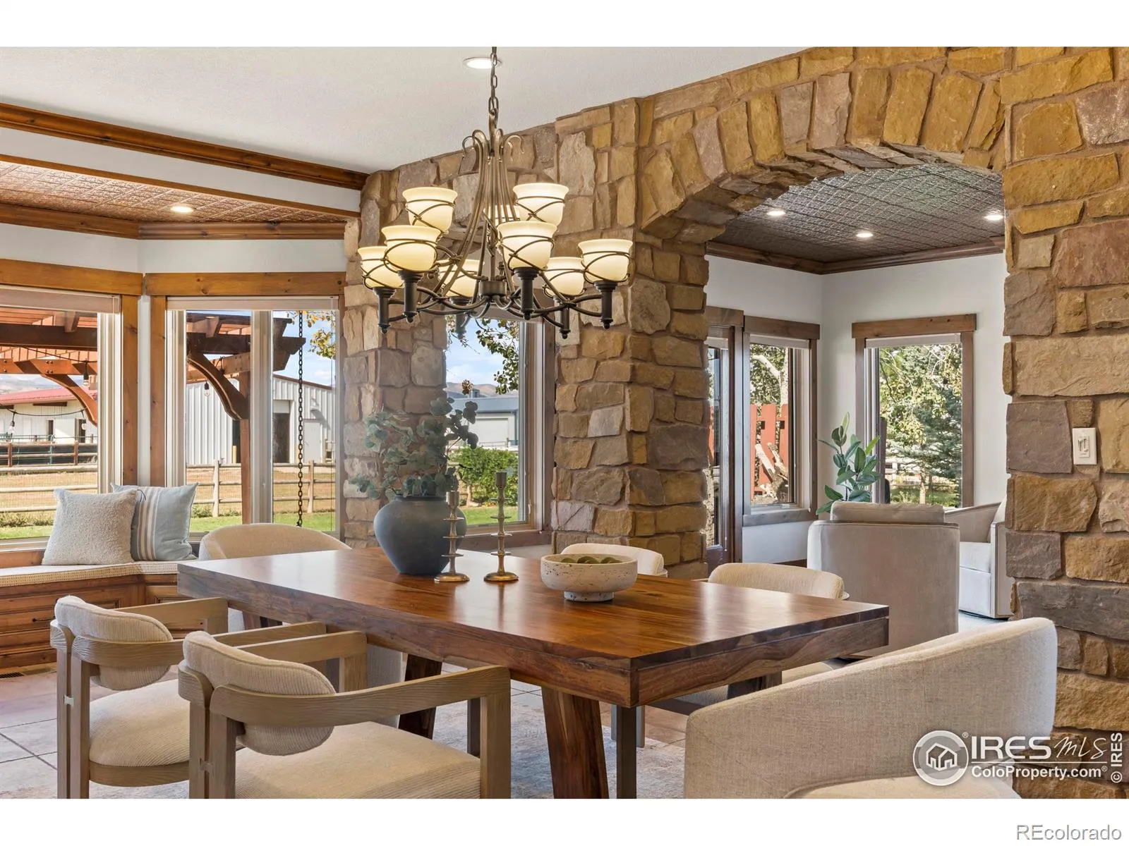 Welcome to your dream farmhouse retreat in Loveland, Colorado. This rare 4-bedroom, 3-bath horse property sits on an 8.75-acre lot with panoramic views of the Rockies. Open, light-filled layout highlighted by hardwood floors, fresh finishes, and thoughtful updates throughout. Relax by the fire in inviting living room, one of many cozy gathering areas. Across the hall find a 4th non-conforming bedroom great as a guest room or private office with nearby 3/4 bath. At the heart of the home is the gourmet kitchen-with granite countertops, stainless steel appliances, double ovens, and an oversized kitchen island. This space flows seamlessly into a large dining area with dedicated space for both eat-in and formal dining – all with gorgeous views. Whether you envision movie nights, a playroom, or a creative studio, the large recreation room offers flexibility with built-in workspaces for remote work, homework stations, or crafting projects. The sunroom is a highlight-wrapped in windows and filled with natural light, it offers breathtaking views that make it the perfect spot to watch a sunrise or sunset. Upstairs find an expansive primary suite, your private haven with a gas fireplace that adds warmth and charm and luxurious 5-piece bathroom with dual vanities, soaking tub, walk-in shower, and custom walk-in closet. Second and third bedrooms with a shared full bath complete the top floor. Step outside onto the patio with pergola and fire pit. Horse lovers will find everything they need including a 6-stall barn, arena, multiple loafing sheds and heated tack room – all with nearby trails for riding. A standout feature of this property is the huge workshop, which provides space for RV or boat storage or room for up to six additional vehicles as well as space for a home-based business, hobby workshop, or creative studio. Water rights included. Easy access to shopping, dining, schools, and healthcare, as well as quick connections to Fort Collins, Longmont, and I-25.