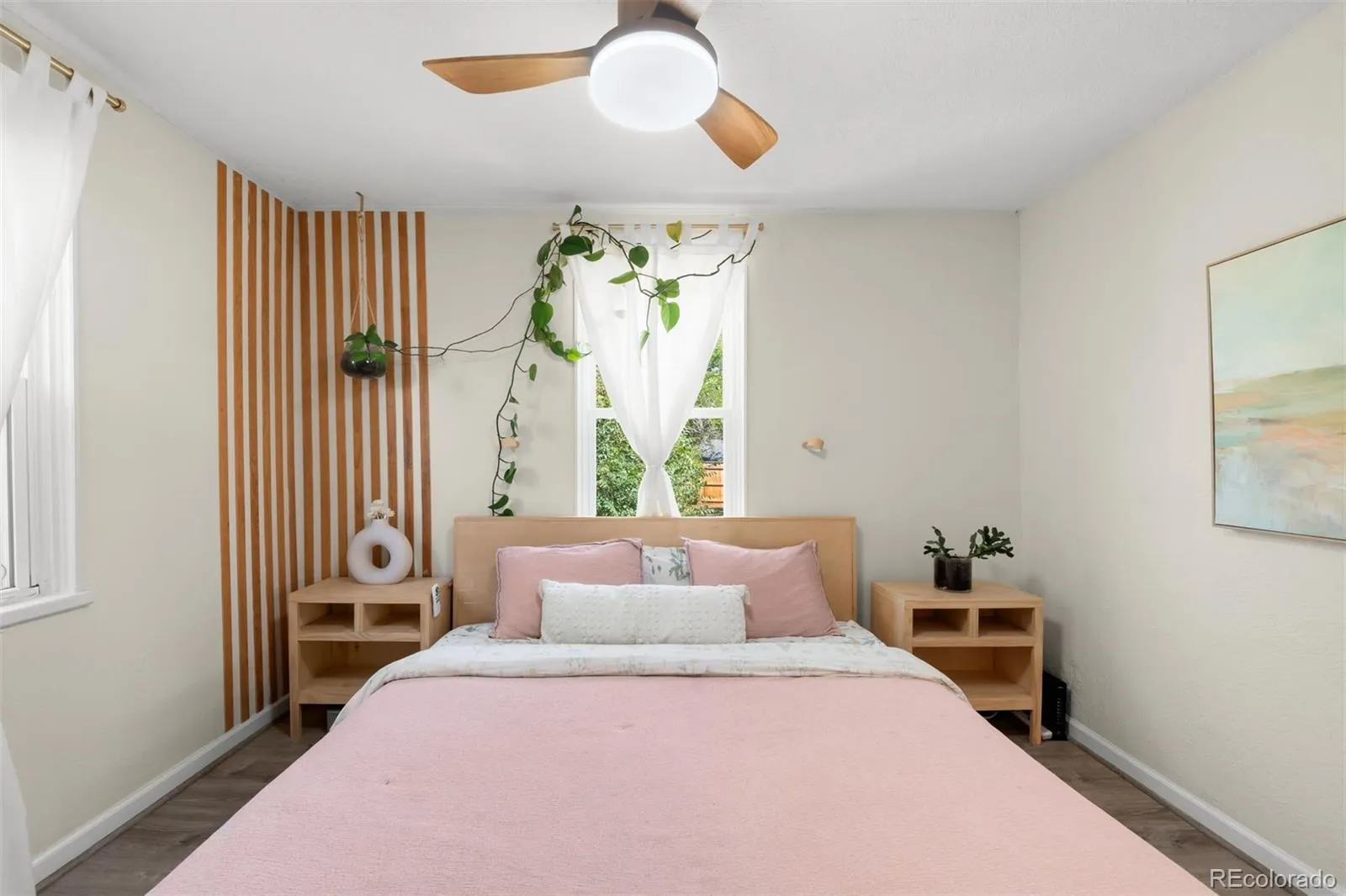 Discover refined, low-maintenance living in this updated 2-bedroom, 1-bath ranch on a quiet block in the desirable Two Creeks neighborhood, just north of Lakewood Country Club and 5 minutes away from Sloan’s Lake. Thoughtfully modernized, this home blends enduring character with contemporary comfort. Inside, large west-facing windows fill the open layout with natural light. The spacious eat-in kitchen features quartz countertops, stainless Samsung appliances, a moveable island for flexible prep space, and open shelving for a clean, modern aesthetic. The primary bedroom easily accommodates a king-sized bed and includes a reconfigured closet designed for maximum functionality, while the secondary bedroom serves equally well as a guest space or home office. The recently remodeled full bath showcases designer tilework, ceiling beams, and a heated towel rack. Additional upgrades include LVP flooring, new lighting, and brand-new central A/C (2025). The oversized 2-car detached garage offers abundant storage, including a separate workshop or gear room, ideal for outdoor enthusiasts or hobbyists. Set on an oversized fully fenced lot, the yard provides ample room for gardening or play, with privacy and space rarely found this close to the city. A newer roof and radon mitigation system (both 2020) are just a few of the recent improvements and add peace of mind for years to come. Located just a few blocks away from the soon to be newly redesigned Two Creeks Park, featuring trails, playgrounds, and open space, plus easy access to light rail, restaurants, and breweries, this home offers a seamless balance of neighborhood charm and urban access. Only 15 minutes to downtown Denver and 10 minutes to I-70 for quick mountain getaways. This home truly has it all – character, comfort, and a central location!
