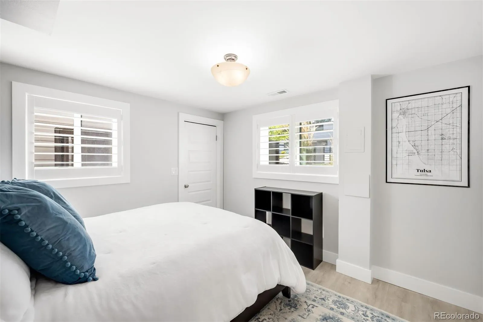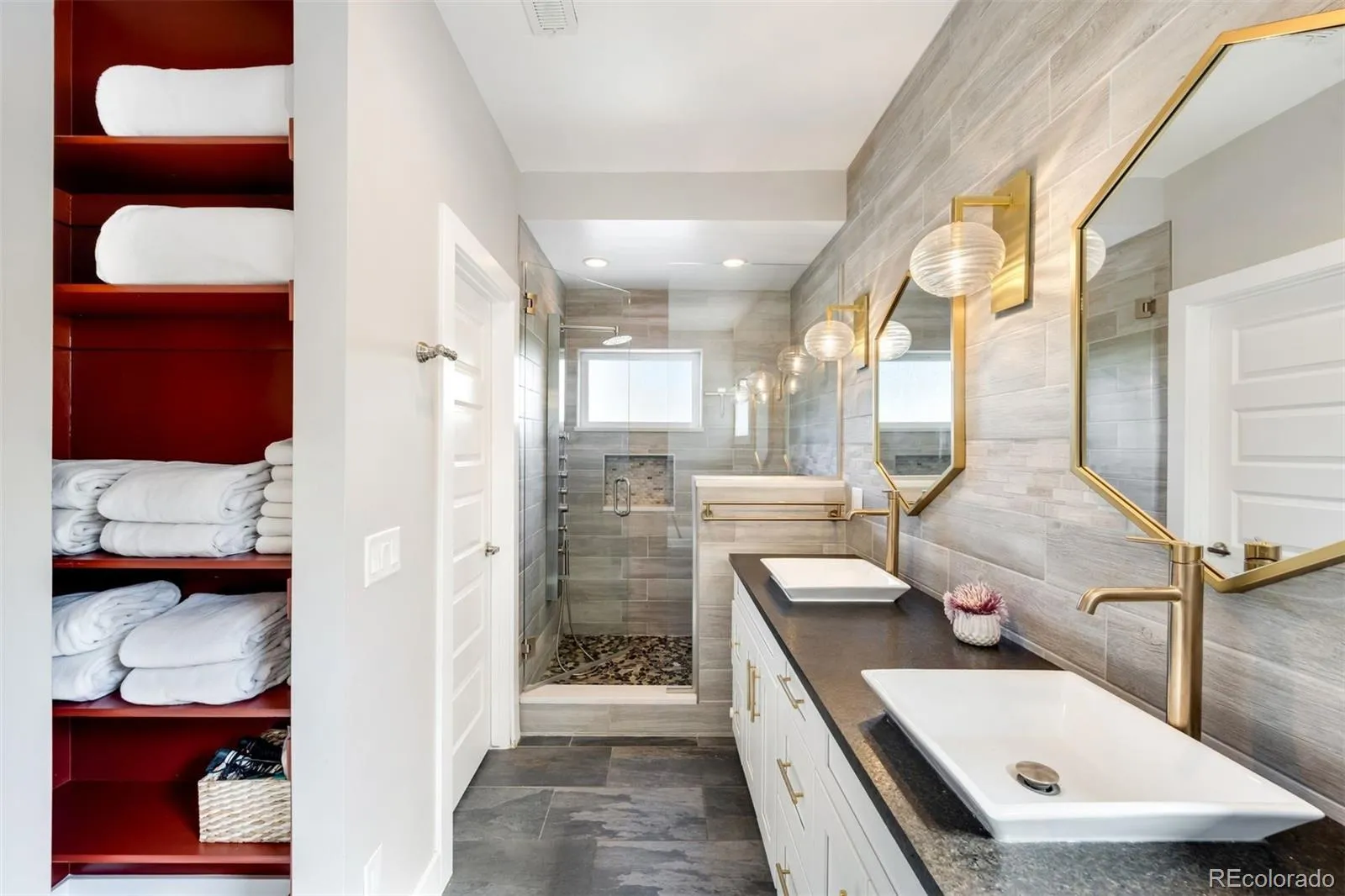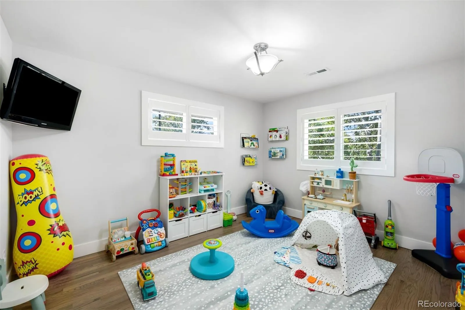 In the heart of Crestmoor Park, this beautifully updated 5-bedroom, 4-bath home blends thoughtful design, modern amenities, and a prime location just steps from one of Denver’s most cherished parks. The chef’s kitchen is designed for everyday ease and entertaining, featuring granite countertops, a large island, open shelving, a coffee bar, and the rare combination of dual Bosch ovens, dual dishwashers, and dual sinks. Natural light pours in from oversized windows, with direct access to the side patio extending the space outdoors. The dining area is bright and welcoming, while the living room showcases soaring ceilings, a sleek stone-surround fireplace, and doors that open to the private backyard. The lower level is an entertainer’s dream with a custom wet bar, built-ins, and space for a media lounge or game table. A secluded guest suite with an adjacent full bath completes this level. Upstairs, three secondary bedrooms share full baths and provide flexible options for playrooms, home offices, or guest quarters. The third floor is reserved for the primary suite, a retreat with its own fireplace, a walk-in closet, and a spa-like 5-piece bath with dual vanities, soaking tub, and walk-in shower. A conveniently placed laundry room adds practicality. Outdoors, the backyard is landscaped for gatherings with a stamped concrete patio, dining space, and mature greenery. The detached two-car garage includes a mini-split system for year-round comfort, and the detached Studio Shed, also with a mini-split, is ideal as a home office, gym, or creative studio. Just steps from Crestmoor Park and within walking distance of Pete’s Market, Park Burger, and Boulevard One at Lowry, this home is also minutes from Cherry Creek. Top-rated schools, neighborhood favorites like High Point Creamery and Call Your Mother Deli, and community amenities including the Crestmoor Community Center are all nearby. This home is the complete package: spacious, stylish, and perfectly located.