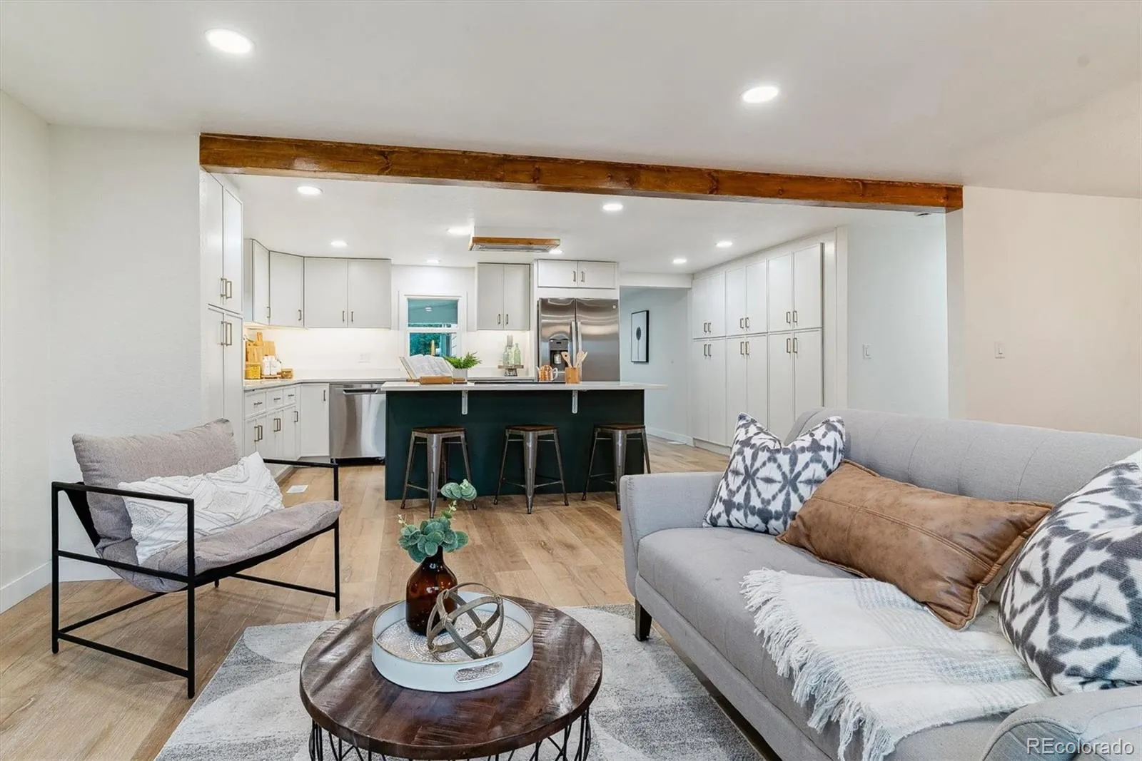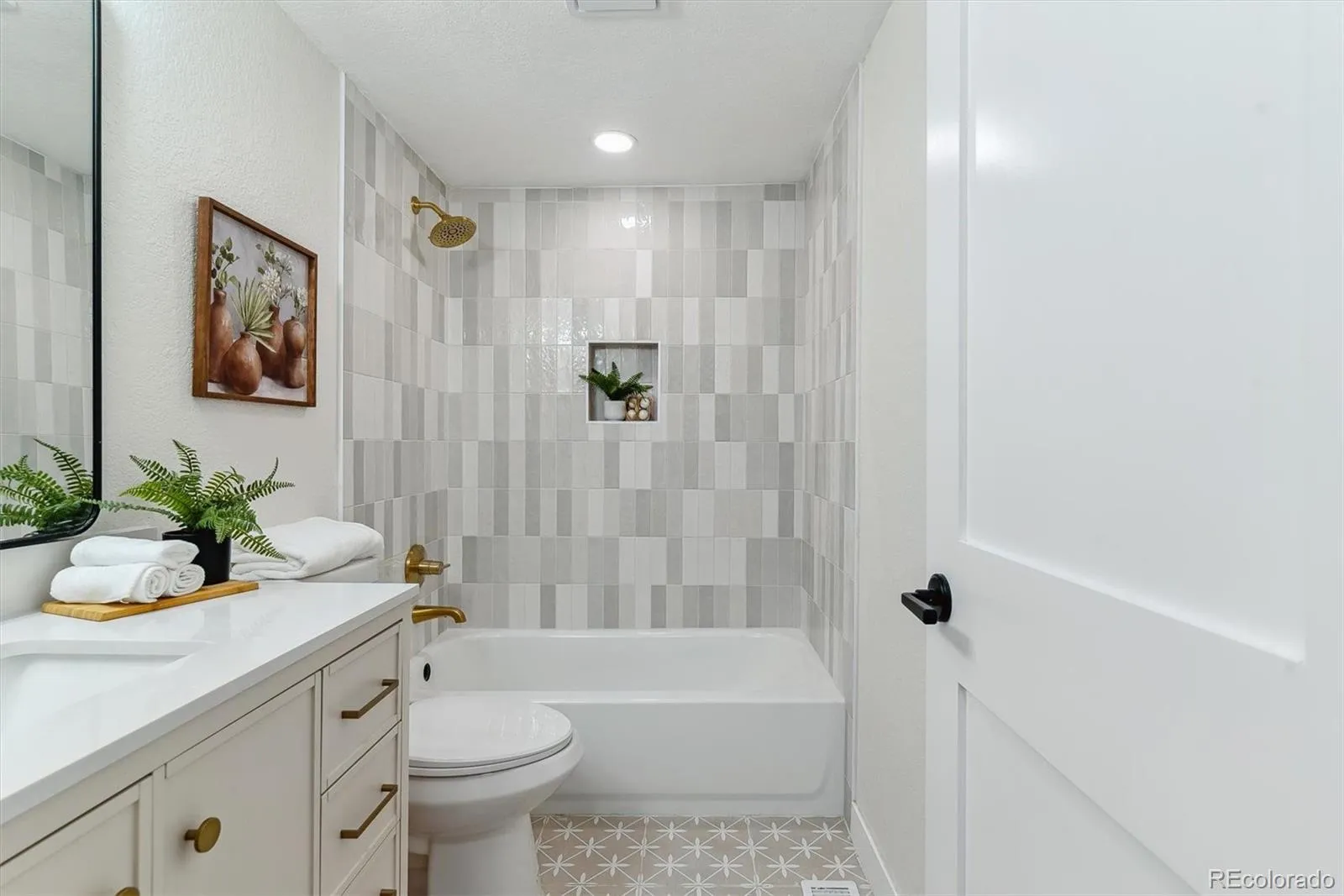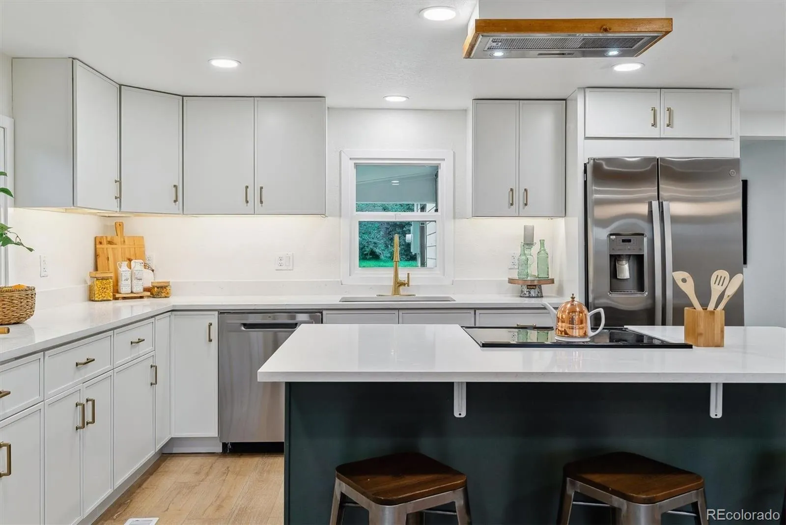 Welcome to this beautifully remodeled ranch style home in Edgewater. Seated on a massive nearly 10,000 SQF lot, this unique bright and open home has been completely remodeled from top to bottom. Inside you’ll love the main living area, which boasts an open space for living, dining and kitchen. The eat-in kitchen features all new soft-close shaker cabinets, white quartz counters, and new stainless steel appliances. Two bedrooms can be found in the front of the home, along with a full bath in the hallway, complete with stellar brass finishes and custom tile work. Through the kitchen to the back you’ll find the mudroom, which features a laundry area with a new stackable washer and dryer. In the back, the primary suite is MASSIVE and offers tremendous natural light, two walk-in closets, and an en-suite bathroom with dual vanity and custom tile work. The spacious backyard is sure to impress and offers a covered patio and easy access to the large detached 2 car garage. All new concrete driveway. All new windows. All new electrical. All new finishes. Updated plumbing, and much more! Located near Edgewater marketplace and Sloans Lake.