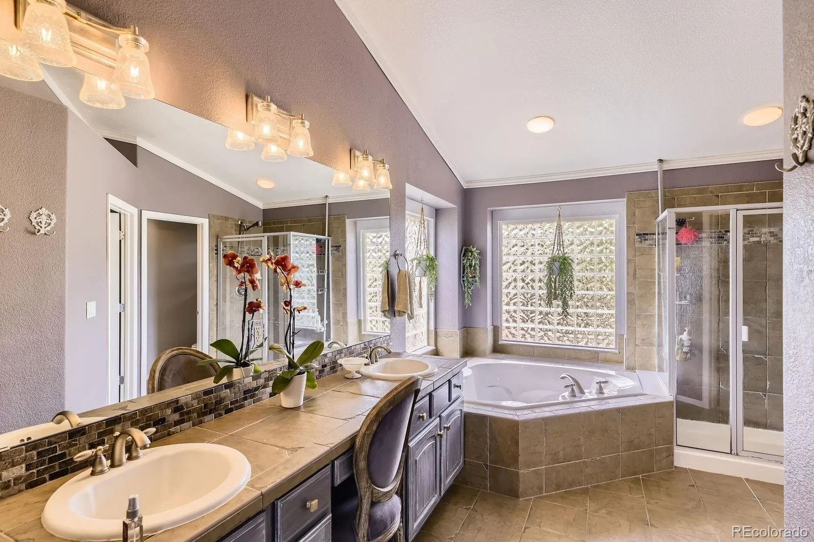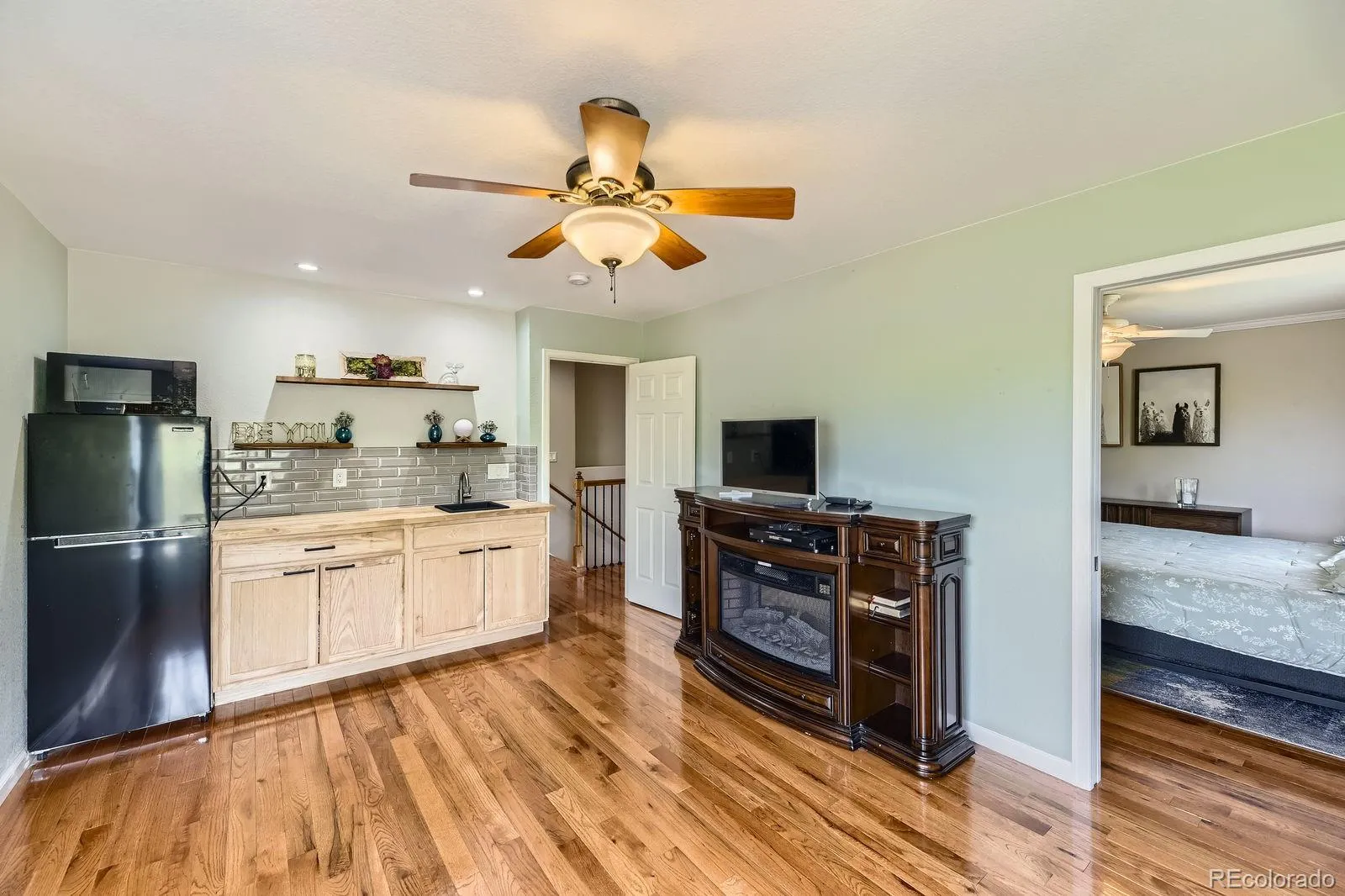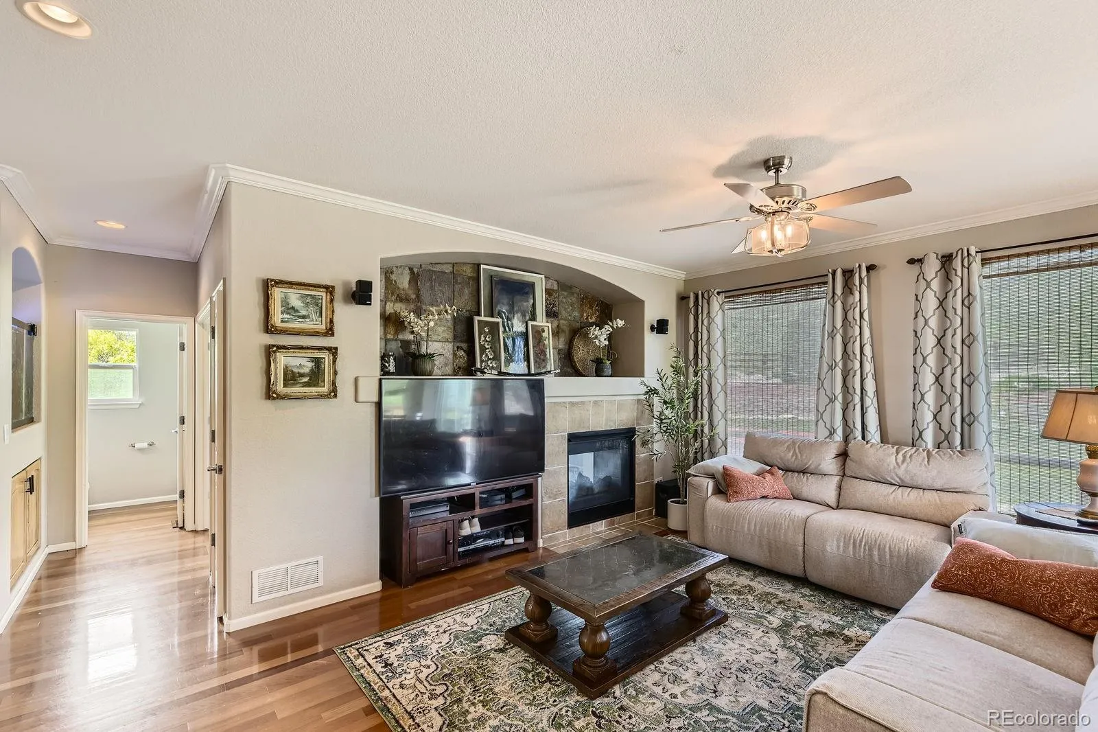Parker Beauty on a Rare Half-Acre Lot Backing to Trails You’ve been dreaming of more space without giving up the convenience of community living, this is it. Perfectly tucked at the end of a quiet cul-de-sac, this Parker home offers privacy, room to roam, and direct access to open space and scenic trails. From the moment you arrive, the lot feels lush, private, and expansive.Inside, hardwood floors (2024) flow through much of the main and upper levels. A formal living and dining room provide the perfect backdrop for entertaining, while a private office with a bay window and two-way fireplace creates a warm work-from-home retreat. The kitchen features KitchenAid appliances including a double oven and convection microwave, granite counters, rich cabinetry, and a large center island opening to the family room—both filled with natural light and backyard views. A custom Closet Factory pantry provides organized storage. Upstairs, hardwoods continue, and two bedrooms have been combined into a junior suite with a kitchenette—perfect for multigenerational living. The primary suite is a retreat with its own fireplace, sitting area, spa-like bath, and oversized Closet Factory walk-in closet. The basement adds flexibility with a large rec room, storage, and ¾ bath—ideal for a guest suite or gym. The carpet is new (2024), and additional built-in storage was added by Closet Factory. Thís home is as functional as it is beautiful. Major updates include a new roof (2023), double-pane Pella windows (2024), and a top-of-the-line American Standard Platinum HVAC with humidifier, UV virus-killing light, and magnetic filter (2021). Outdoors, enjoy a Kentucky Bluegrass lawn (2022) supported by a sprinkler system that waters and fertilizes simultaneously. The backyard is an entertainer’s dream with a water feature, hot tub, pergola, and outdoor fireplace. With a 3-car garage, thoughtful upgrades, and no neighbors behind(just scenic trails)this home is move-in ready and waiting for you