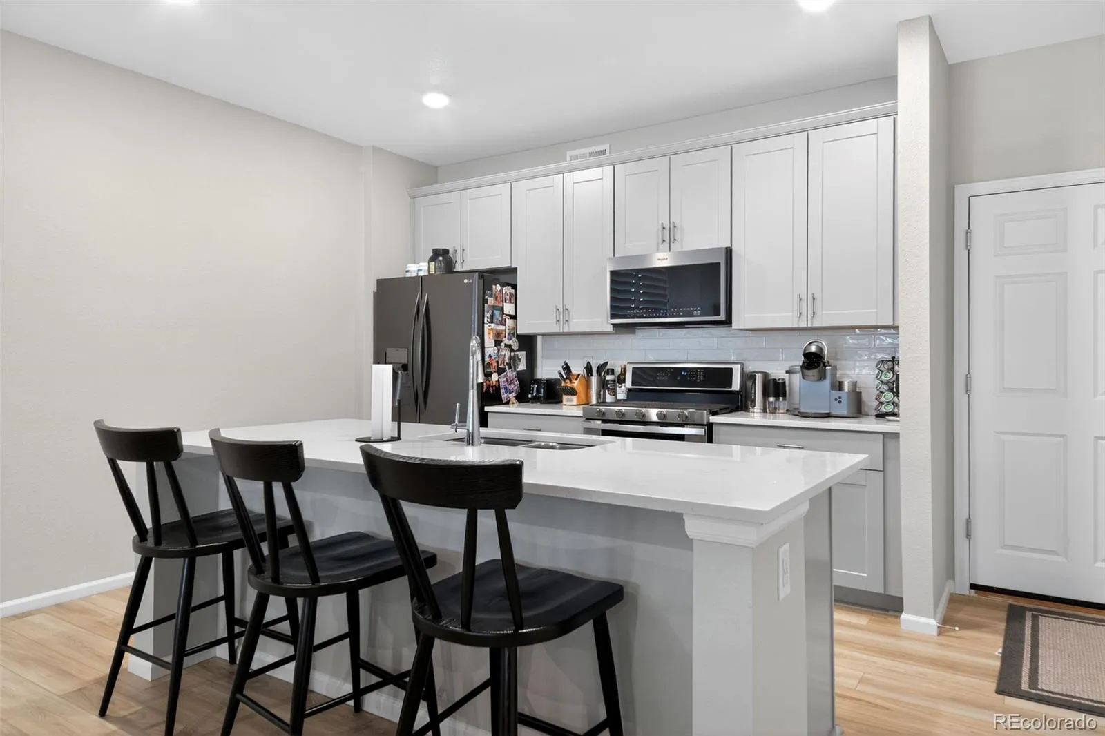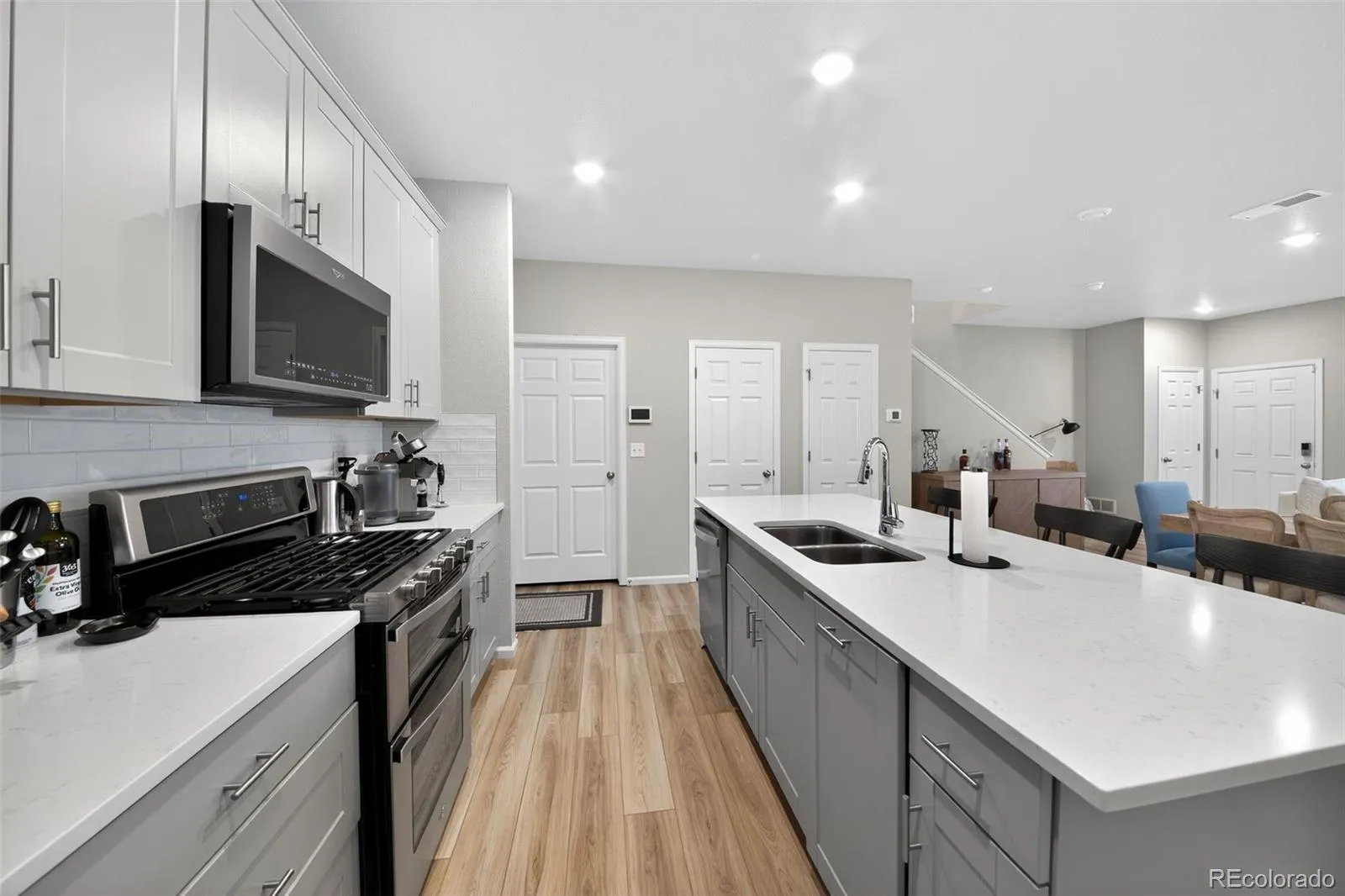 This energy-efficient, open concept, end unit townhome also has a covered front porch. The upper-level primary suite includes a large walk-in closet and double sinks. The upper-level loft is perfect for a game room, second living space, or office.