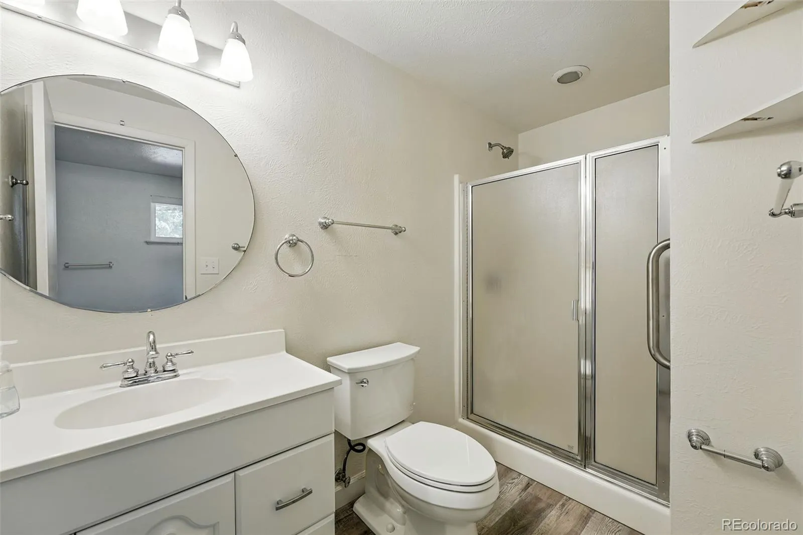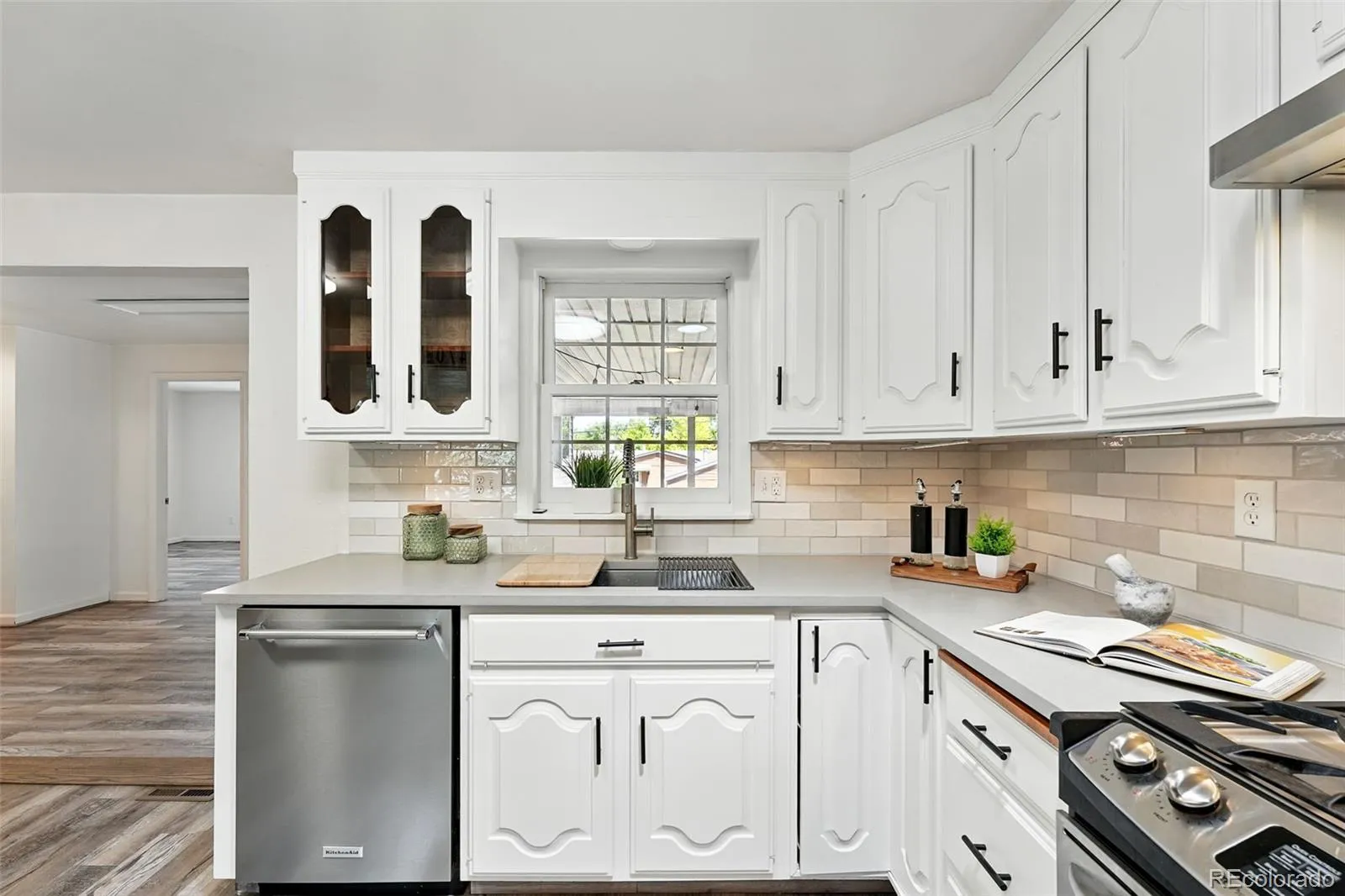 If you are looking for a gorgeous turnkey home that has had all the big items remodeled this is it! The charming rambling rancher is ready for its new owners and it has luxury vinyl plank flooring, fully remodeled bathrooms, double pane windows and a tranquil location in the heart of Green Mountain. The front yard is lovely with it’s mature trees, sprinklered yard and the attached oversized one car garage. Upon entering you will enjoy the bright and airy living room space with its oversized front window. Down the hall you have a brand new fully remodeled bathroom with built in storage. The adjacent bedroom is nicely appointed with plenty of closet space. The owners suite is set up as two rooms and one part can be the perfect quiet home office space and an ensuite bath is attached. The kitchen is ready for large family gatherings and enjoy time with your brand new Quartz counters, backsplash and stainless appliance suite with a new hood. The back of the house has two private bedrooms and a nicely appointed laundry room with all appliances included. Ready for game day fun and movie nights on the weekend? Head on downstairs to the large family room with custom built in’s and the newer carpet. There is a second owners retreat with a fully remodeled bathroom, egress window and a very generous walk in closet. Lastly, there is a basement bonus room perfect for another office, game room or craft and hobby space. Are you into gardening and back yard evenings with family and friends? Enjoy the oversized covered patio and the back yard has a multitude of garden spot options and raised beds as well. The detached storage sheds are just another bonus with this great home. The sellers have done all the big ticket renovations so you can move in and enjoy this one today! Here is a walkthrough video of the home to enjoy: https://youtu.be/_EeyHxP1ehE