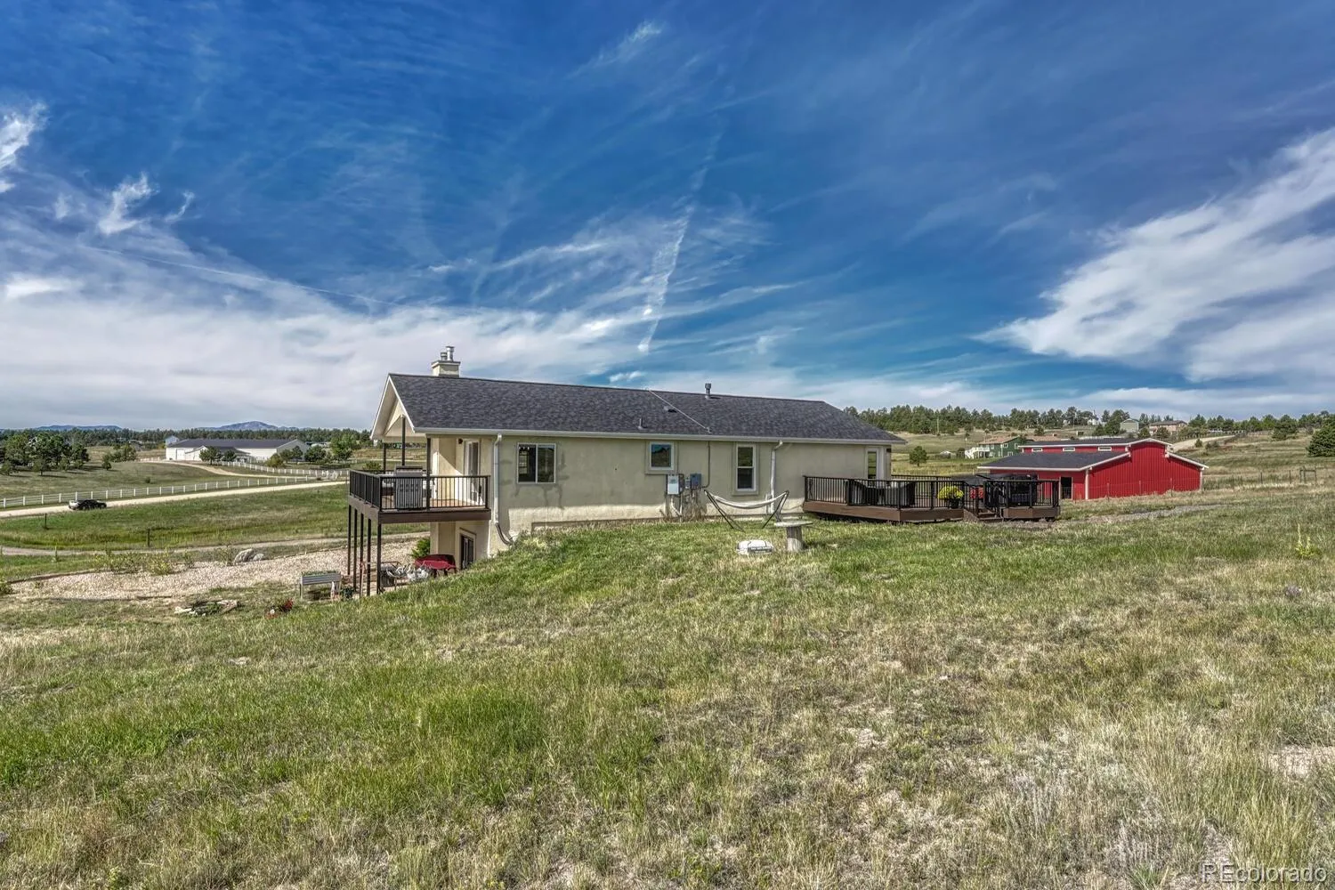 *** There is an Assumable VA Loan on this home, 15 year loan at 2.25% ****Experience the best of Colorado country living on this peaceful 5-acre property with unobstructed 360° views. This beautifully remodeled 3,463 sq ft home combines modern comfort with refined rural style—designed for those who love space, function, and low-maintenance living. Inside, a chef-inspired kitchen features leathered granite countertops, brand new double ovens, and stainless-steel appliances. The primary suite includes a private sitting area and spa-quality 5-piece bath, while two additional bedrooms and a full bath complete the main level.Downstairs, the walkout lower level is built for entertaining with a large bar, family room, home gym, and guest suite with private bath.Step outside to relax or entertain on the expansive Trex deck with steel framing and a newer Jacuzzi® hot tub, overlooking wide-open prairie and views of Pikes Peak and the front range. The 1,500-sq-ft barn (with water, electricity, hay room/tack room, and a chicken coop) is perfect for horses, hobbies, livestock, or storage.Additional upgrades include newer windows, AC, brand new furnace with humidifier, Jacuzzi® hot tub, solar with battery backup (paid off at closing), newer roof, and an oversized garage with EV charger and built-in workbenches.With no HOA, ample parking, and space for multi-generational living, this home offers an exceptional blend of comfort, efficiency, and self-sufficiency—ready for you to move in and make it your own.