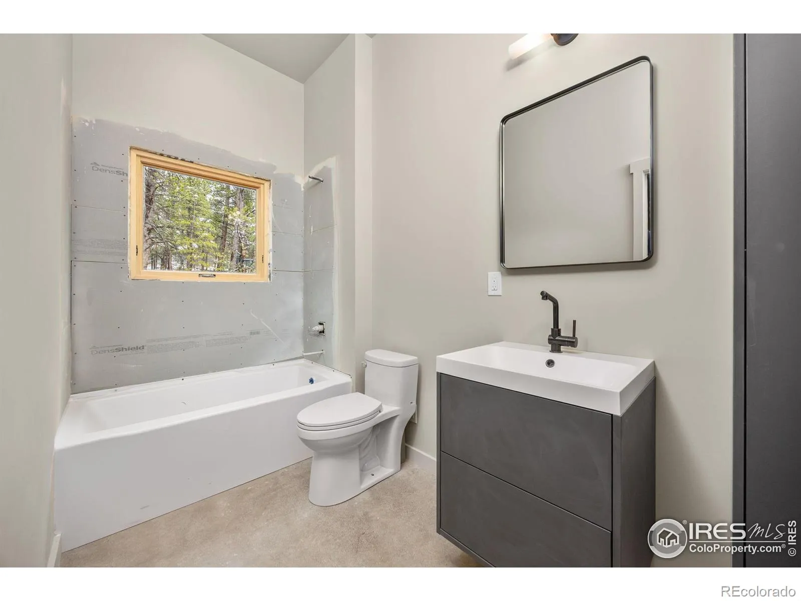 BEST VALUE ON THE MARKET – BRAND NEW CONSTRUCTION UNDER $350/SQUARE FOOT! Maintenance free living for decades to come, why settle for a property that needs work, when you can have THIS?! Located just 10 minutes from Nederland, and with National Forest access at the end of the road, this 3b/4b modern, mountain home with polished concrete floors and radiant in-floor heat throughout the home is quietly nestled in a small community has easy access to trails and all the adventures they have to offer. Unwind in the sun filled, Scandinavian inspired space, complete with professional kitchen appliances, walk in pantry, open living room/dining room, large Marvin windows and Thermatru doors, and soaring 10’+ ceilings throughout the home. Every bedroom has its own en-suite full bathroom and the primary bathroom suite includes a water closet, dual-head walk in shower, soaking tub, and oversized walk in closet. Included in the floor plan is a separate office as well as an additional flex room with it’s own exterior door for a true work from home private space. With Hardie board exterior siding and metal skirting details, along with stunning timber accents, the exterior of the home requires little maintenance and is truly beautiful. Don’t miss your chance to own a stunning, near maintenance free home in the mountains that basks in year round sun. This home was engineered to be emissions free with an air to water heat pump heating system and a high efficiency heat pump water heater. Be sure to review the additional property remarks for a list of future provisions that were designed with the home. Interior work is still being completed and property is currently under construction with estimated completion on 10/15/2025