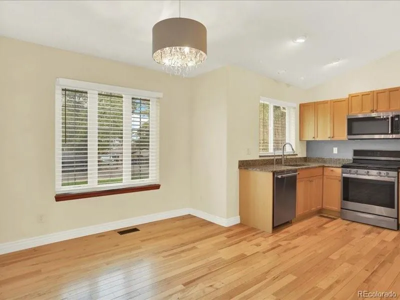 Welcome to 3415 S Clay Street! This 3-bedroom, 2-bath ranch home features an open layout with vaulted ceilings, hardwood floors, and a beautifully updated kitchen with granite countertops. Enjoy natural light throughout, a private fenced backyard, and an oversized 2-car garage. Solar panels help lower utility costs, while built-in wireless speakers in the main area create the perfect space for entertaining. Ideally located near highways, light rail, and just minutes from Denver.
