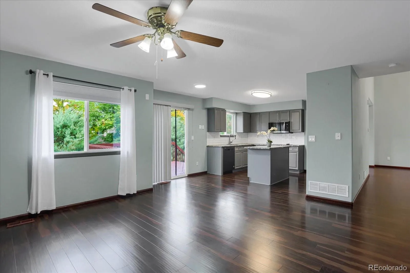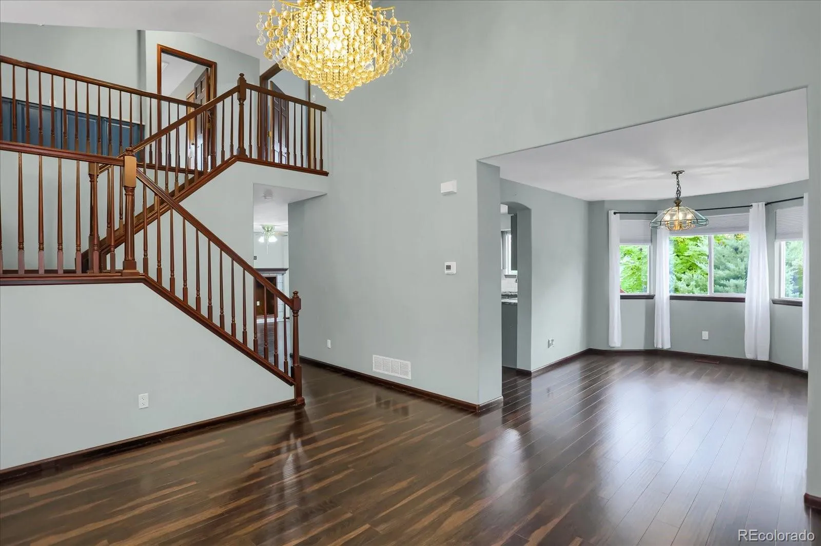 Beautiful Corner-Lot Home with Vaulted Ceilings and Contemporary Elegance. Welcome to this well designed 4-bedroom, 4-bathroom home surrounded by mature trees and close to scenic outdoor trails. Step inside to an inviting open-concept layout featuring vaulted ceilings, a regal chandelier, and a cozy gas fireplace that anchors the living space. The kitchen flows seamlessly into the dining and living areas — perfect for entertaining and everyday comfort. The massive primary suite offers a true retreat with a private sitting area, fireplace, and a 5 piece ensuite bath. Three additional bedrooms 2 up and 1 down with a jack n jill bathroom up and spacious basement bath provide room for family and guests. Enjoy additional living space in the finished walkout basement, ideal for a gym, or play/recreation room. Step outside to a large patio surrounded by greenery — perfect for relaxing or hosting gatherings. 3 car garage for all of your parking and storage needs. With its elegant design, thoughtful layout, and serene setting, this home combines modern comfort with timeless sophistication. Endless outdoor activities abound within highly desirable Grant Ranch. Close to every shopping and dining option one could ever dream of. Nearly all appliances, HVAC systems, water heater, flooring, fencing and roof are less than a few years old. Make this your forever home today!