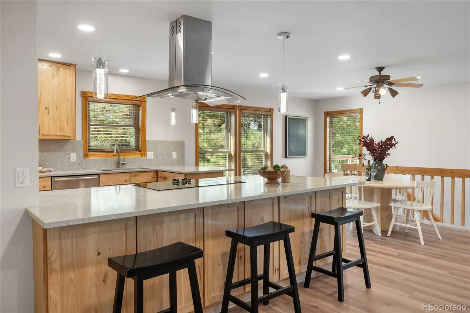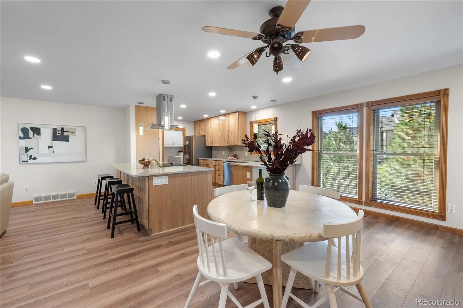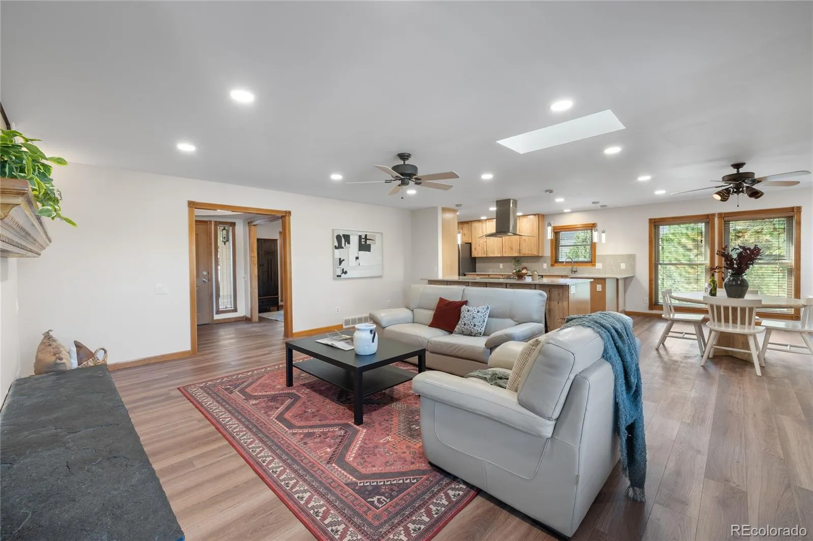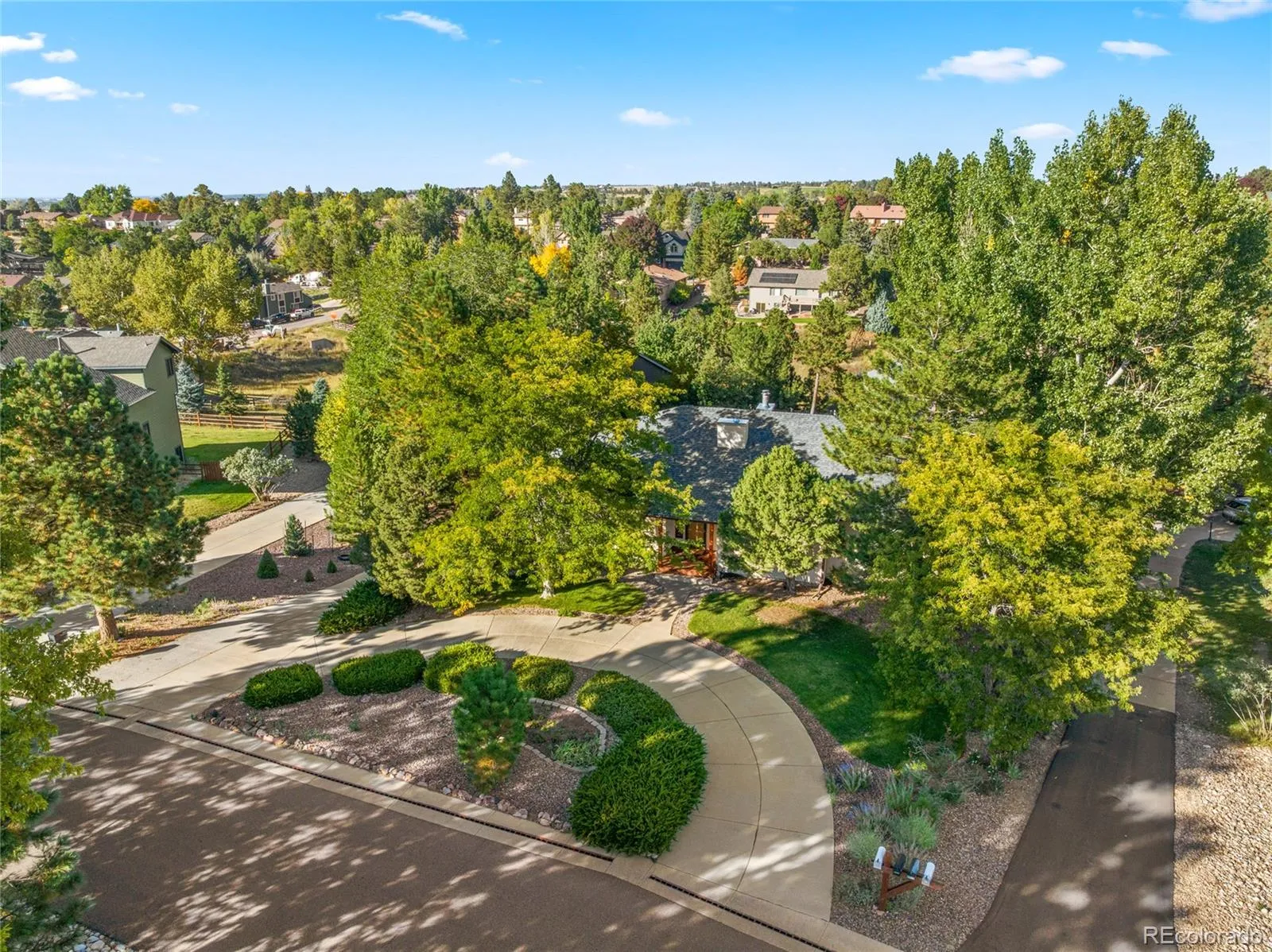 Discover your private retreat in The Pinery. This stunning 4-bedroom, 3-bath ranch-style home sits on a pristine, tree-filled lot with lush foliage and a charming circle driveway, creating a true Colorado oasis. Step inside to find a thoughtfully updated interior that blends comfort, style, and function. The kitchen and bathrooms were tastefully renovated in 2020 and feature Bosch appliances, quartz countertops, and a large peninsula perfect for gathering. New flooring throughout (2025) adds a fresh, modern touch. The main level offers both formal and casual dining areas, ideal for everything from family meals to entertaining guests. The oversized primary suite feels like a retreat, complete with a cozy fireplace and sitting area—your own private escape at the end of the day. The spacious walk-out basement provides endless possibilities, whether you envision a game room, home theater, gym, or guest suite. Step outside to enjoy the tranquil setting from your deck, or spend your afternoons gardening and soaking in the peaceful surroundings. With its blend of updates, space, and natural beauty, this home offers the perfect balance of modern living and serene Colorado charm.