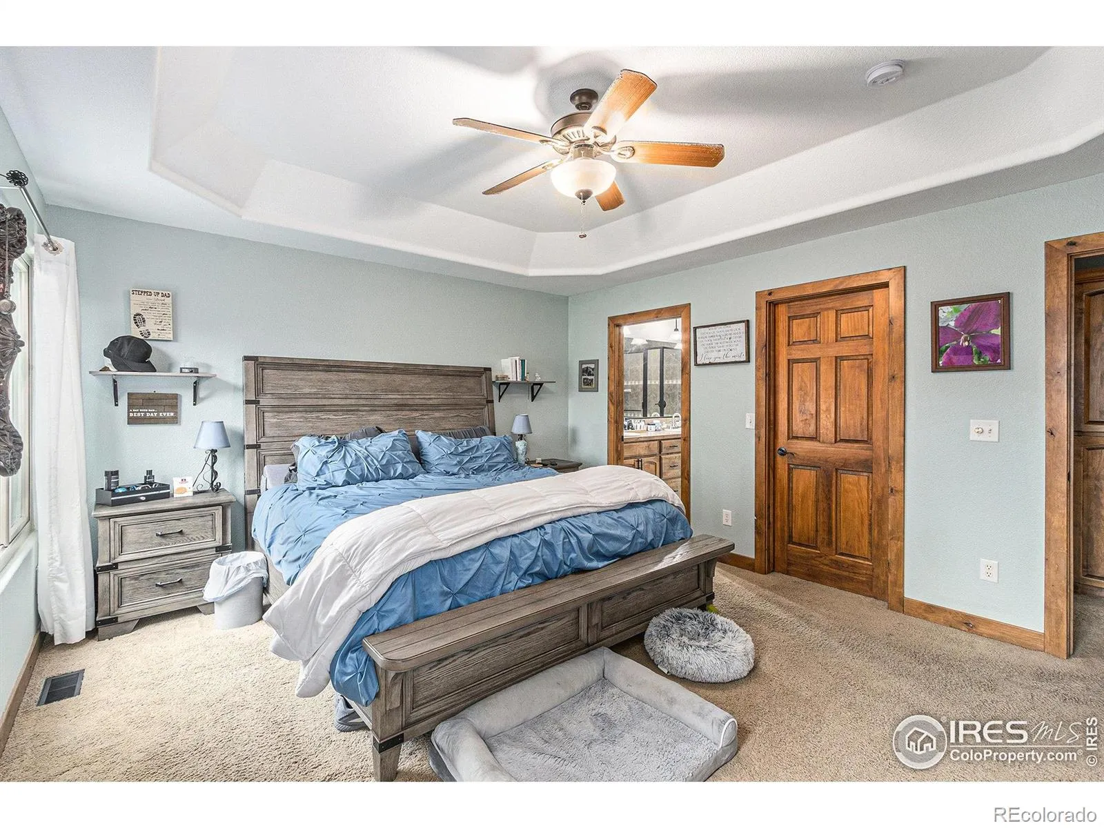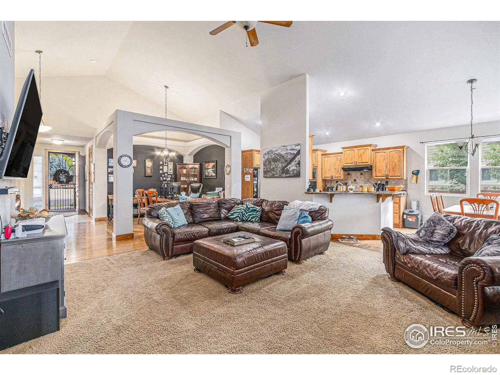 Stunning Former Model Home in Kendall Brook! This beautifully maintained ranch-style home sits on a premier corner lot surrounded by lush landscaping and cedar fencing-truly a must-see in one of Loveland’s most desirable neighborhoods! Step inside to experience exceptional craftsmanship throughout, including 8′ solid wood doors, rich trim work, and an inviting open floor plan-perfect for entertaining or relaxing by the cozy main-floor fireplace. The gourmet kitchen is a chef’s dream, showcasing slab granite countertops, Tharp custom cabinetry, a full tile backsplash, gas range, and built-in oven and microwave. You will love the spacious primary suite featuring a luxurious 5-piece bath and walk in closet. The elegant formal dining room is enhanced by graceful arches and lighted plant ledges, adding charm and character. A versatile main-floor bedroom with French doors-perfect for a guest room, office, or quiet workspace. The finished basement with 9′ ceilings expands your living space with two large bedrooms, a generous rec room, laundry sink, and an additional utility sink in the unfinished storage area-offering both versatility and functionality. Step outside to a beautifully landscaped yard featuring a poured concrete patio and a new custom cedar pergola-ideal for outdoor relaxation. Additional highlights include two stone gas fireplaces, an insulated and finished garage with epoxy flooring, automatic openers and keypad entry. All major components- HVAC system -Tankless water heater, Roof and exterior paint are newer for peace of mind. Just steps from neighborhood parks and bike trails and minutes from Lake Loveland and Sculpture Park, this prime location lets you experience the best of Colorado living-outdoor recreation, natural beauty, and everyday convenience. Move-in ready and perfectly blending style, comfort, and quality craftsmanship, this Kendall Brook gem is ready for its new owner!