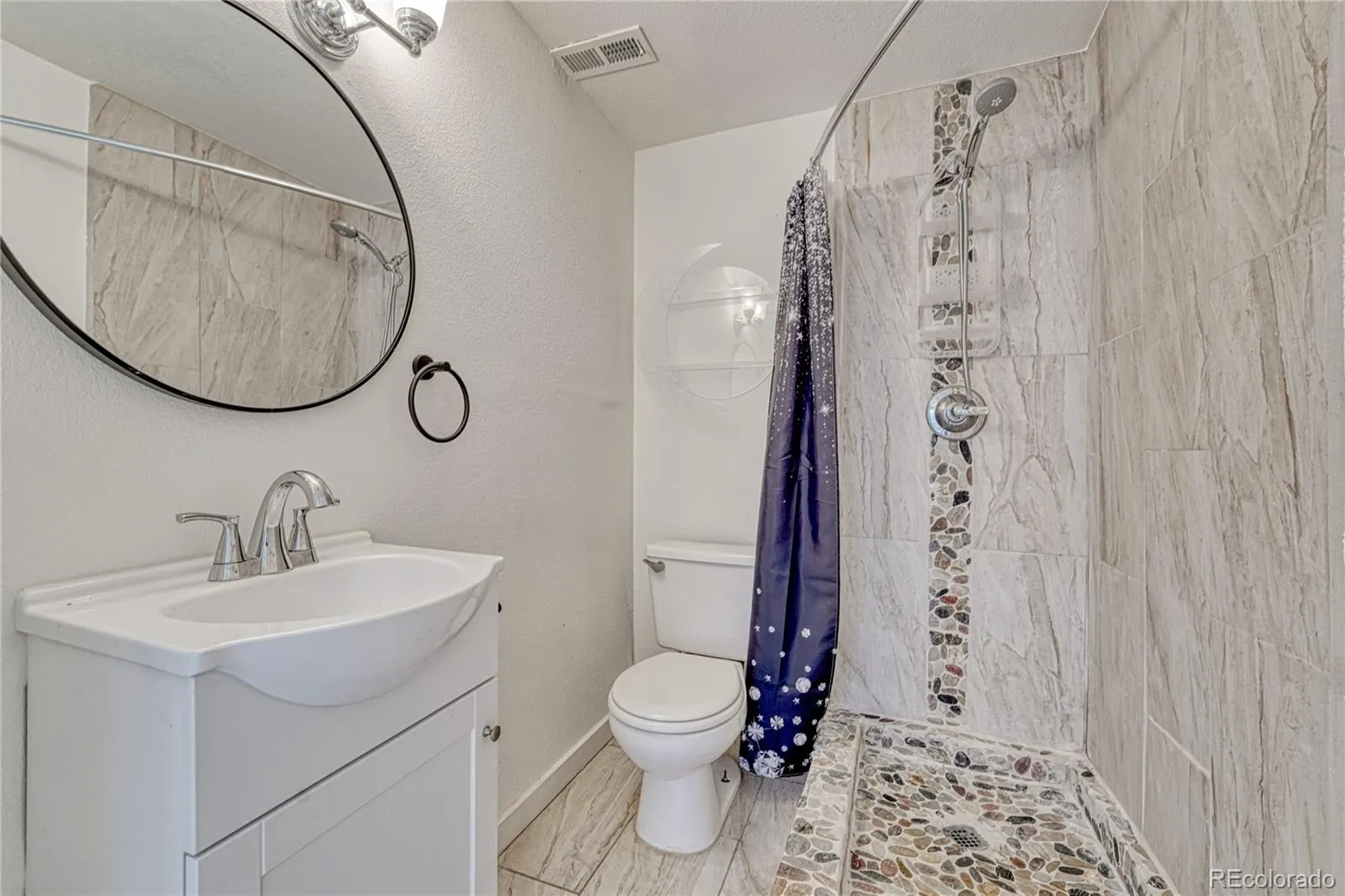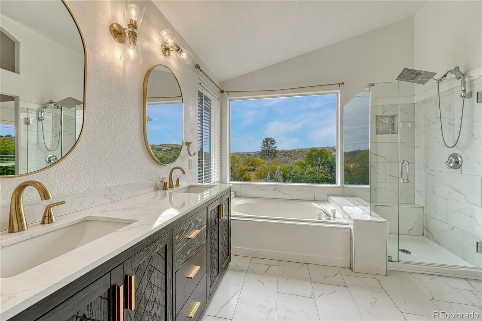 Upper level has 3 bedrooms & 2 full bathrooms. Primary bedroom is spacious with a bonus room area for spectacular mountain views, vaulted ceiling, and a walk-in closet. 5 Piece bathroom has been fully updated with stone floors, countertop, lighting, shower surround, and a deep soaking tub with plant ledges. Finished basement has a 2nd kitchen, 2nd living area, 2 bedrooms, and a 3/4 bathroom with a tile surround shower.