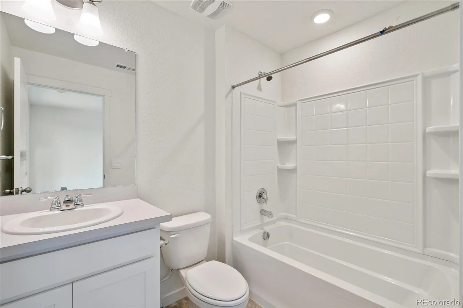 As you enter this delightful 2 story Move in Ready Home you are greeted with lots of natural sunlight beaming in through 8-foot front door with glass enhancement. With 5 bedrooms and 4 full baths. The modern white and black color story that is inviting for everyone. The floors flow throughout the main level of this home and amplifies the dramatic 9-foot ceilings throughout the main floor living space! As you walk down the foyer you enter the family room that overlooks the dining nook area and large kitchen, with ample cabinets and counter space and island. The kitchen boasts a stainless-steel gas stove. The island with Quartz counter tops is great for gatherings. The upper level starts with an oversized loft for everyone to enjoy. Plus, a full unfinished basement with 9’ ceilings – ready for home expansion. The home is fully fenced and offers a cover patio in the backyard!