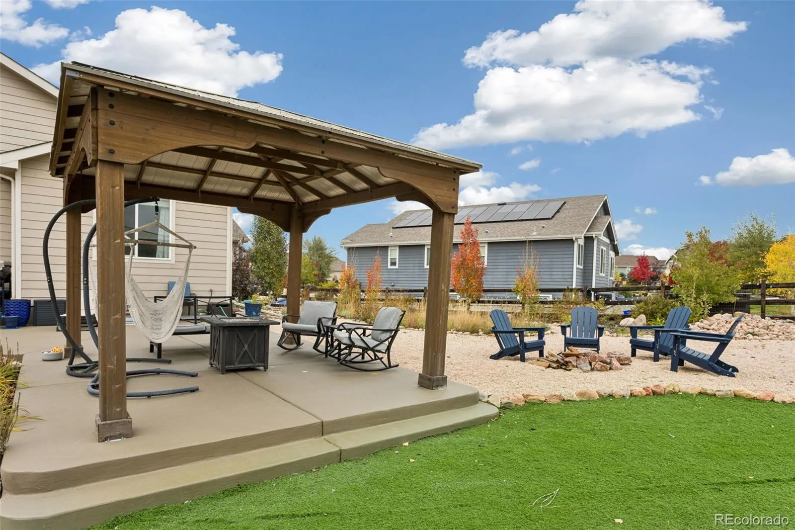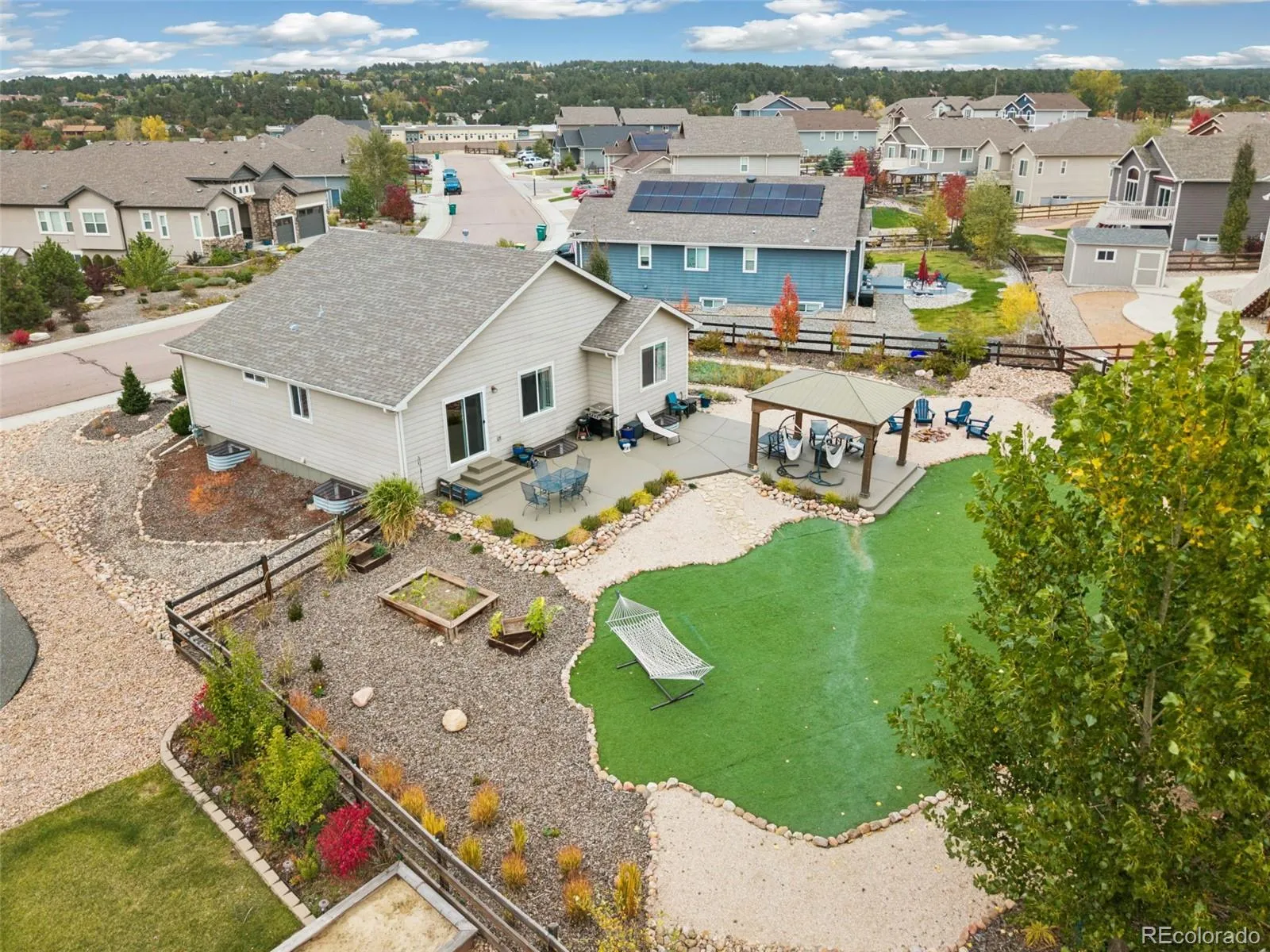 Welcome to this stunning ranch-style home in the heart of Monument that perfectly blends comfort, design, and Colorado living. Enjoy true main-level living with the primary suite and laundry conveniently located on the main floor. Soaring vaulted ceilings fill the home with natural light, while the gourmet kitchen impresses with elegant finishes, a large island, and quality appliances. The beautifully finished basement offers additional living and entertaining space, ideal for family nights or guests. Outside, you’ll love the zero-scaped front yard for easy maintenance and the huge, stunning backyard featuring a concrete patio, fire pit, and charming gazebo—perfect for a family who loves to relax and entertain under the Colorado sky.