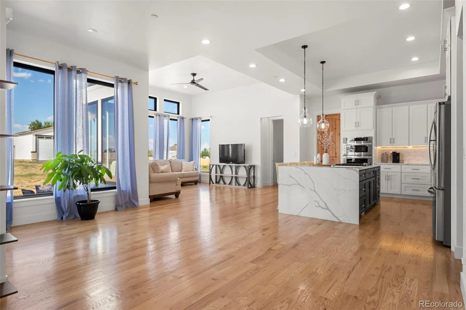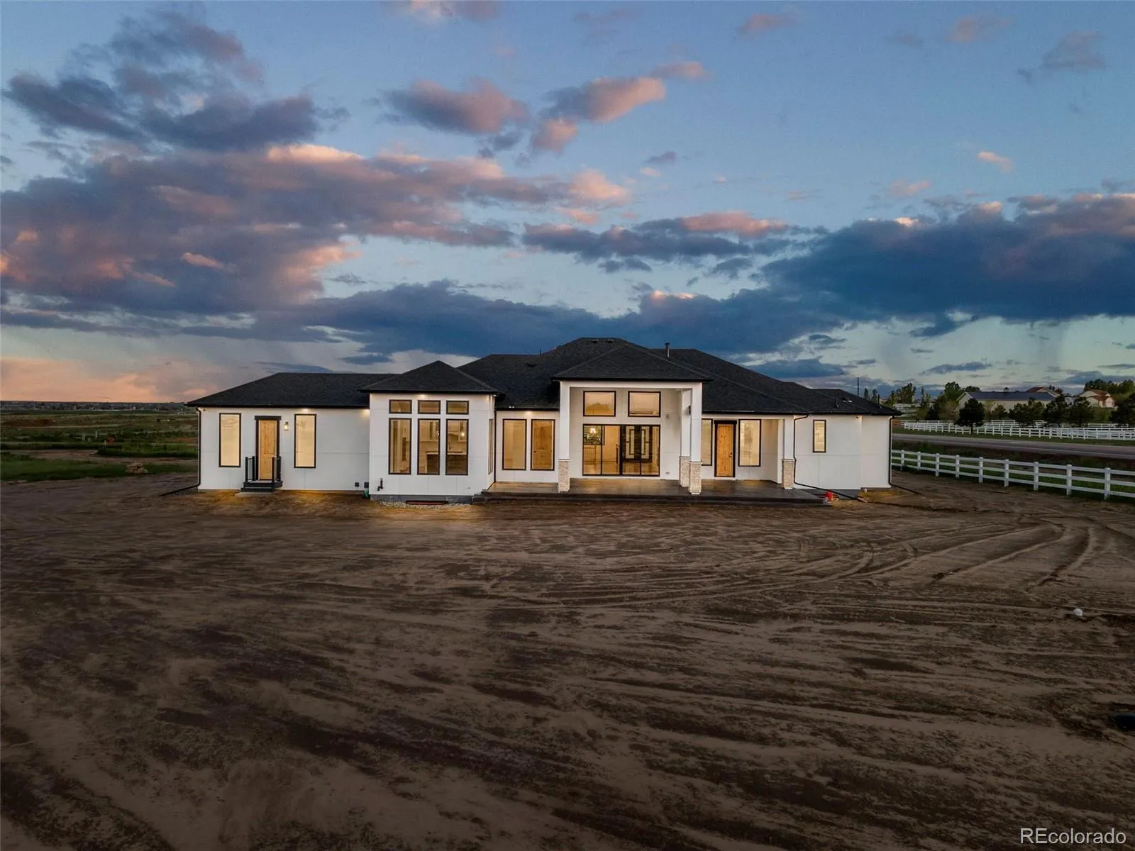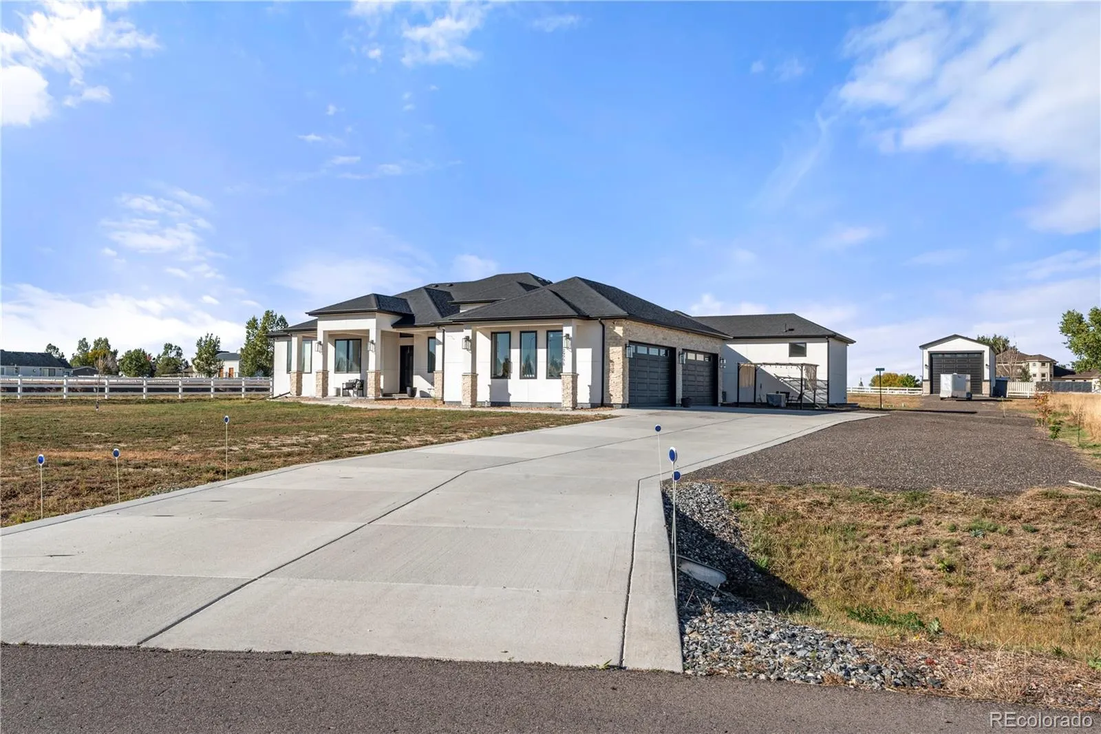 Welcome to Country Club Ranchettes in Brighton, Colorado! This brand-new 2023 custom ranch-style home combines luxurious design, modern comfort, and open-concept living across 6,428 total square feet. Situated on 1.64 acres, this property delivers the perfect blend of elegance and space for Colorado living.