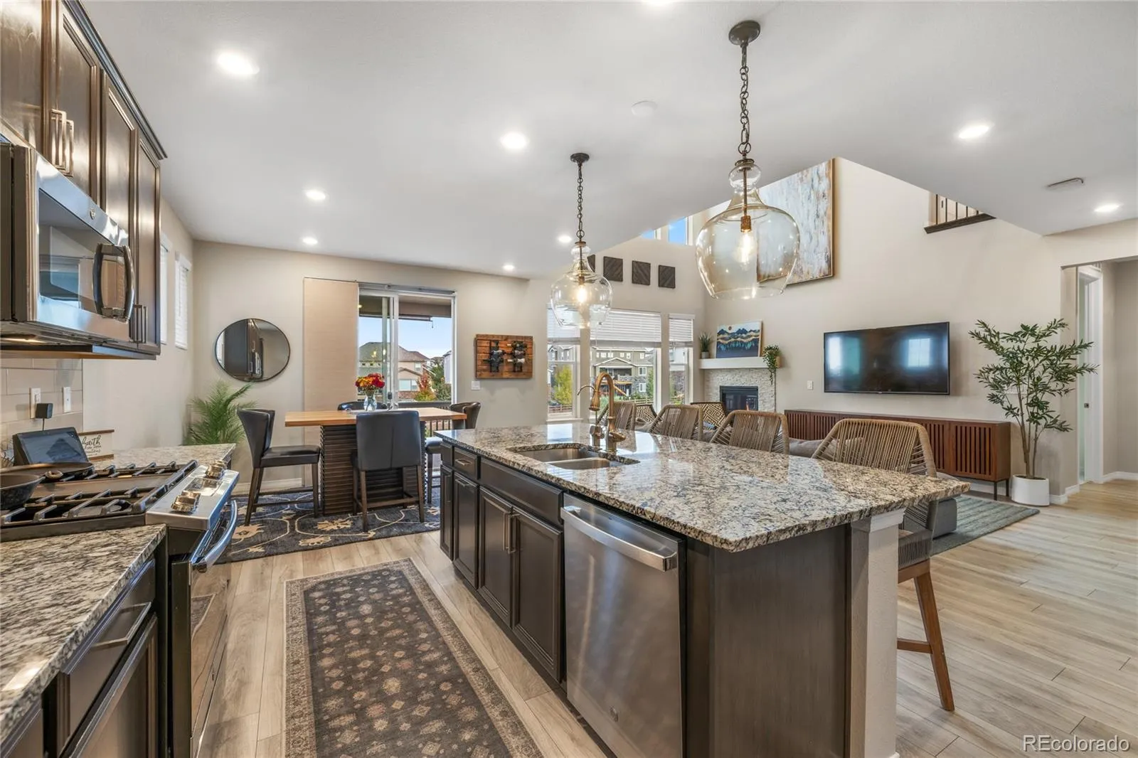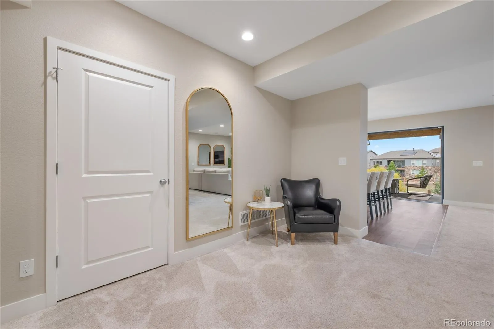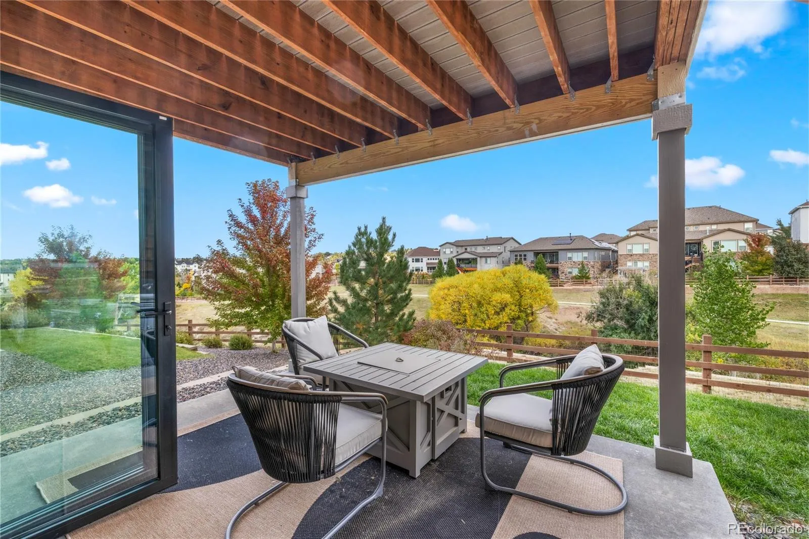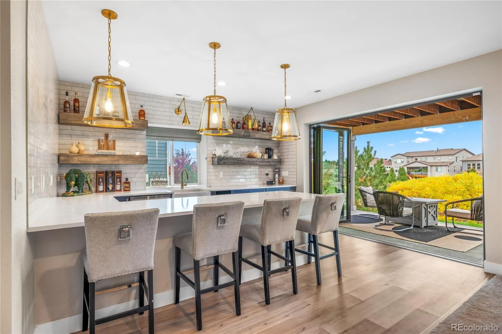 Welcome to this stunning 5-bedroom, 4-bath home in the highly sought-after Whispering Pines community. Backing to open space, this two-story home blends everyday comfort with thoughtful design. The main level welcomes you with a vaulted entry and a bright, open layout. Off the front door, there’s a private office—perfect for working from home. The kitchen offers granite countertops, rich dark cabinetry, and a walk-in pantry, flowing easily into the living room with an electric fireplace. Step outside to a spacious deck that overlooks peaceful open space—an ideal spot for entertaining or simply relaxing at the end of the day. Also on the main floor is a guest bedroom and full bath, plus a convenient mudroom right off the garage. Upstairs, brand-new carpet (October 2025) runs throughout. The primary suite feels like a retreat with its double sinks, glass shower, and oversized walk-in closet. Two additional bedrooms, a full guest bath, and a loft provide plenty of extra living space—perfect for a playroom, media area, or lounge. The finished walk-out basement is where this home truly shines. Designed for versatility, it could serve as a full guest suite or entertainment space. Over $100K in upgrades include a gorgeous full kitchen with quartz countertops, blue cabinetry, and open shelving. Large sliding doors open to the patio, extending your living space outdoors. The lower-level bathroom was fully renovated with double sinks, a large soaking tub, and a glass-enclosed shower. There’s also an additional bedroom and flex area ideal for a gym, game room, or home theater. Located close to parks, trails, shopping, and E-470, this home offers both convenience and tranquility. Backing to open space, you’ll love the peaceful setting and easy access to evening walks and quiet nights under the stars.