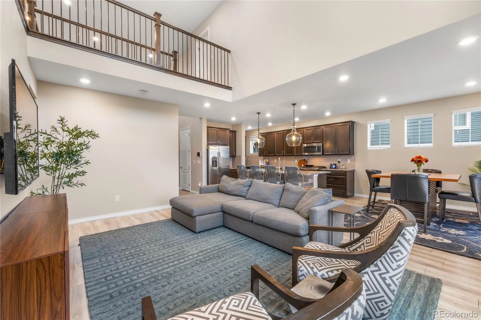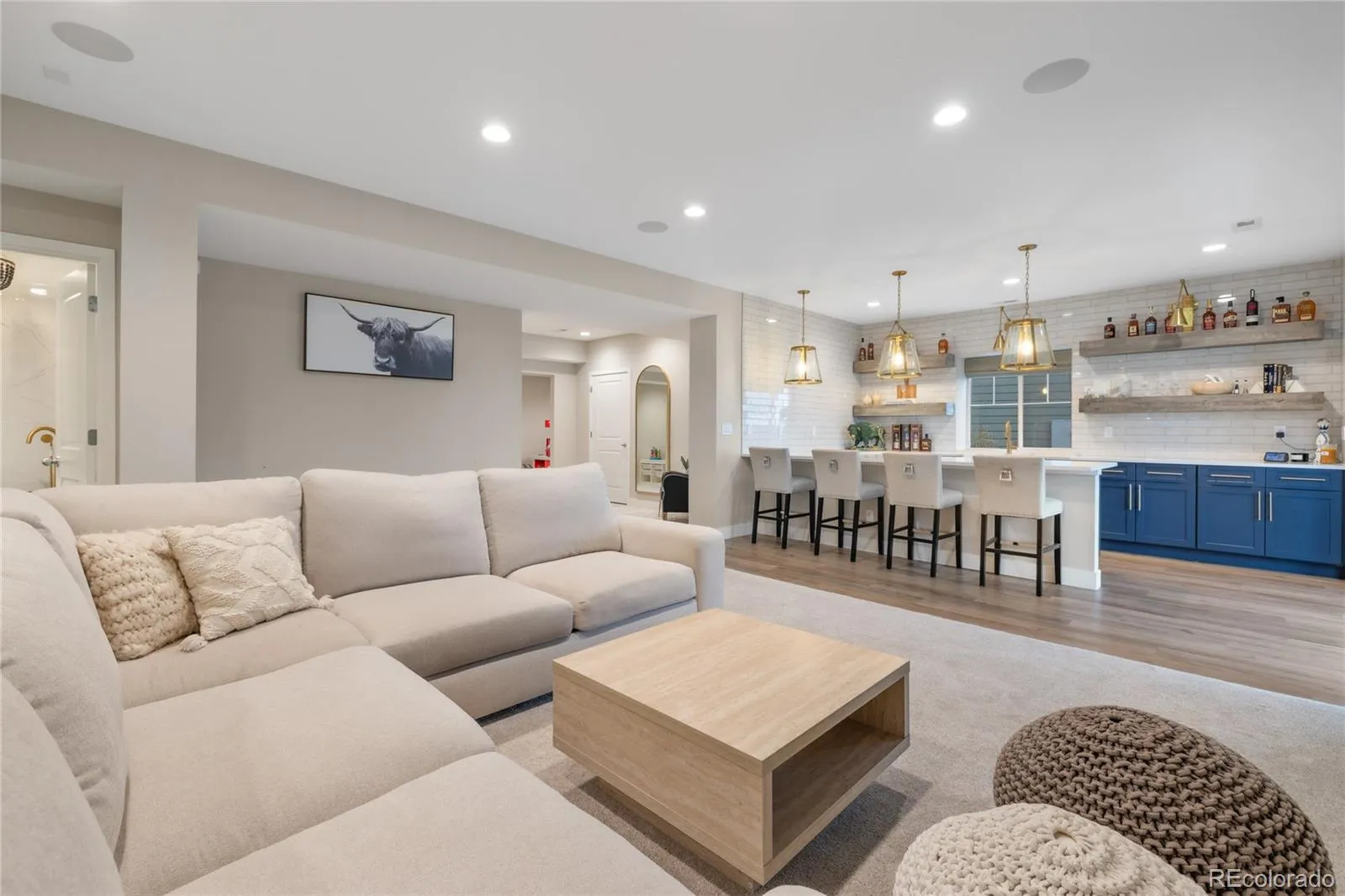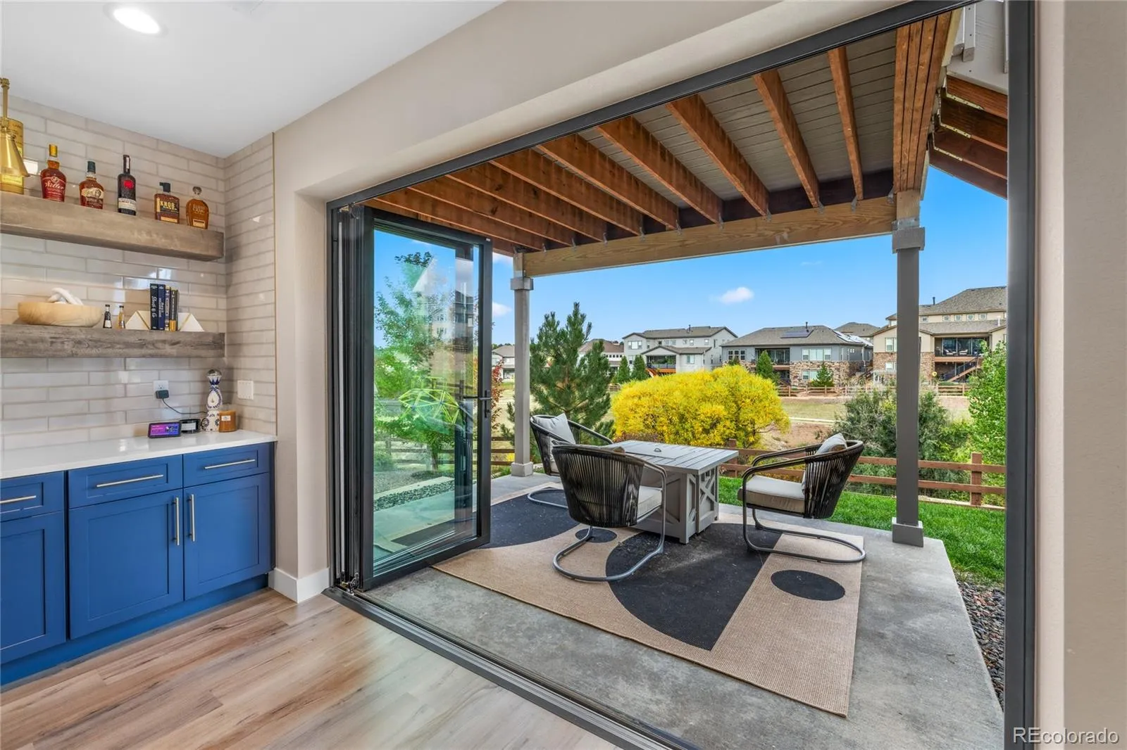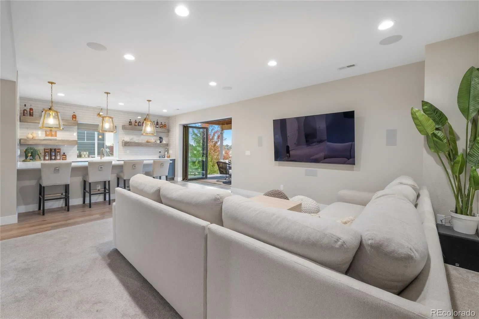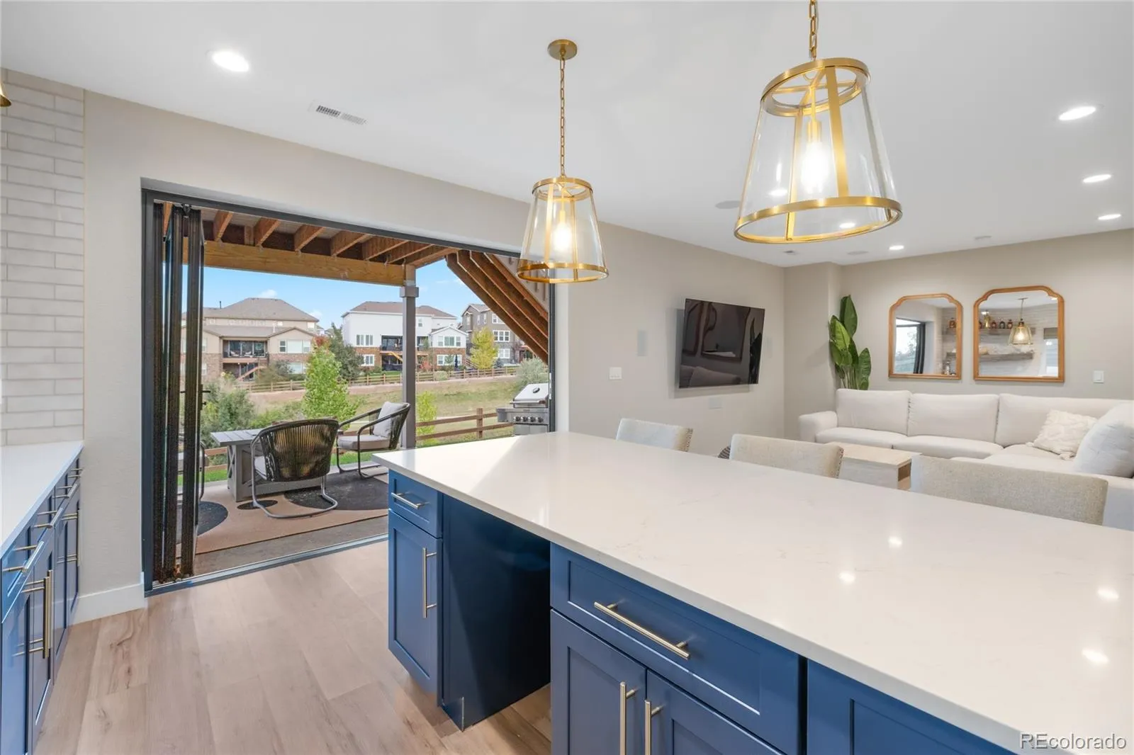 Welcome to this stunning 5-bedroom, 4-bath home in the highly sought-after Whispering Pines community. Backing to open space, this two-story home blends everyday comfort with thoughtful design. The main level welcomes you with a vaulted entry and a bright, open layout. Off the front door, there’s a private office—perfect for working from home. The kitchen offers granite countertops, rich dark cabinetry, and a walk-in pantry, flowing easily into the living room with an electric fireplace. Step outside to a spacious deck that overlooks peaceful open space—an ideal spot for entertaining or simply relaxing at the end of the day. Also on the main floor is a guest bedroom and full bath, plus a convenient mudroom right off the garage. Upstairs, brand-new carpet (October 2025) runs throughout. The primary suite feels like a retreat with its double sinks, glass shower, and oversized walk-in closet. Two additional bedrooms, a full guest bath, and a loft provide plenty of extra living space—perfect for a playroom, media area, or lounge. The finished walk-out basement is where this home truly shines. Designed for versatility, it could serve as a full guest suite or entertainment space. Over $100K in upgrades include a gorgeous full kitchen with quartz countertops, blue cabinetry, and open shelving. Large sliding doors open to the patio, extending your living space outdoors. The lower-level bathroom was fully renovated with double sinks, a large soaking tub, and a glass-enclosed shower. There’s also an additional bedroom and flex area ideal for a gym, game room, or home theater. Located close to parks, trails, shopping, and E-470, this home offers both convenience and tranquility. Backing to open space, you’ll love the peaceful setting and easy access to evening walks and quiet nights under the stars.
