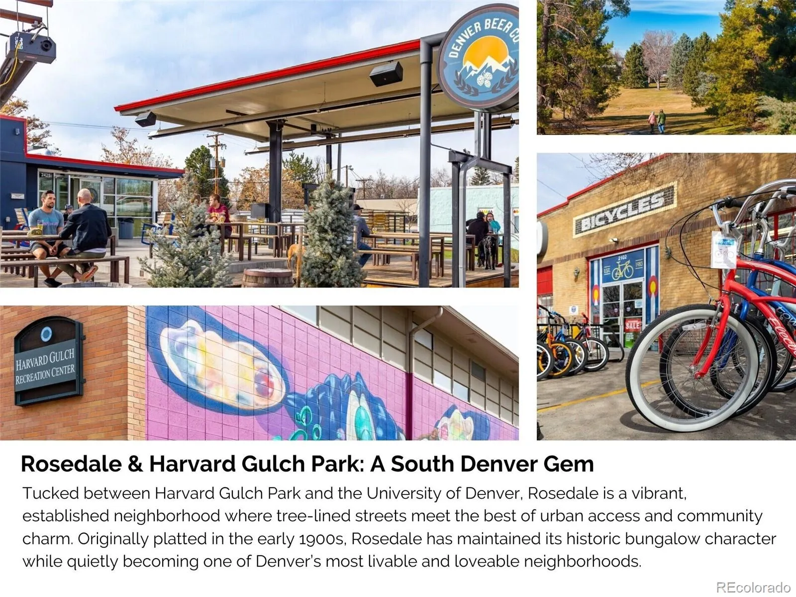 Bright + Breezy Bungalow in the Heart of Rosedale. Nestled in the sought-after Rosedale neighborhood, this 4-bedroom, 2-bath bungalow blends 1920s charm with modern updates in all the right places. Thoughtfully remodeled with an open floor plan, hardwood floors, and natural light throughout, the home features an updated kitchen with granite countertops, 42” white cabinetry, stainless steel appliances, and a gas range. Two main-floor bedrooms and a full bathroom flow seamlessly to the spacious backyard, complete with a newly installed paver patio, fresh sod, raised garden beds, and ample room to relax or entertain. Downstairs, the finished basement offers two additional bedrooms, an updated ¾ bath, a laundry room, and bonus storage. Recent updates include a newer roof and water heater (2019). Ideally located just blocks from Harvard Gulch Park, Porter Hospital, University of Denver, and local favorites like The Post Chicken, Bacon Social House and Pearl Street’s Farmers Market. This is urban living with a neighborhood feel – move-in ready and walkable to the best of South Denver! Welcome Home.