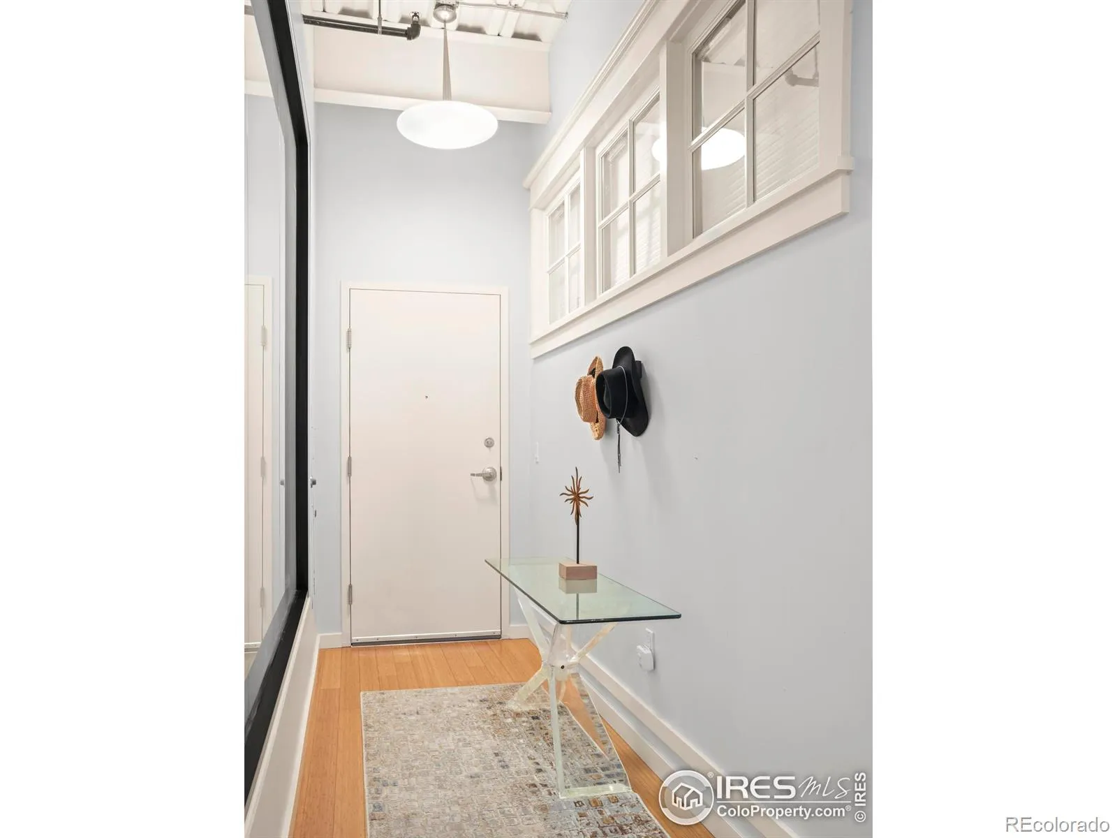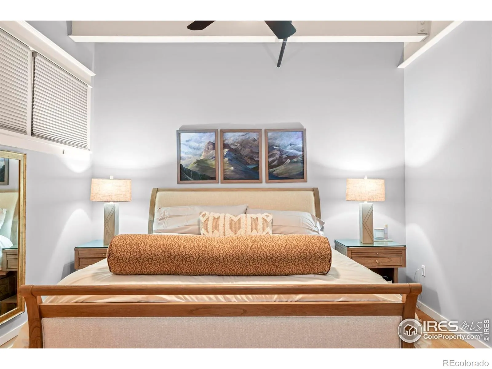 Urban sophistication meets mountain views in this downtown Boulder residence. Just one block from Pearl Street Mall, this luxury loft offers a rare blend of industrial character and refined design within a secure, low-turnover building. Southern exposure floods the open layout with natural light, while the private balcony captures sweeping Flatiron and sunset views. Inside, high ceilings, exposed ducts, and painted brick walls evoke a modern loft aesthetic, complemented by chic upgrades throughout. The kitchen impresses with cherry cabinetry, granite countertops, a pantry, and upscale stainless steel appliances. The living area showcases new custom wallpaper, a built-in cherry bookcase, and a fireplace that anchors the space with warmth and style. Retreat to the serene primary suite featuring California Closets and motorized Bali blackout shades. Additional highlights include bamboo flooring, a new HVAC system with a 10-year warranty, secured entry, an elevator, underground parking with storage, and an upcoming EV charging station option.