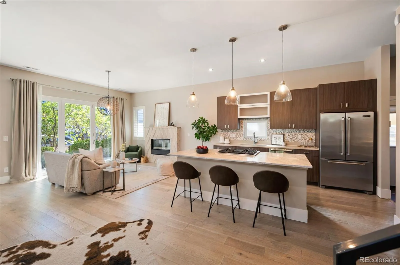 Experience the best of Denver living in this contemporary LoHi townhome featuring designer finishes, abundant natural light, and incredible outdoor spaces, including a fenced front patio, a private deck off the primary suite, and a rooftop terrace with panoramic city views.