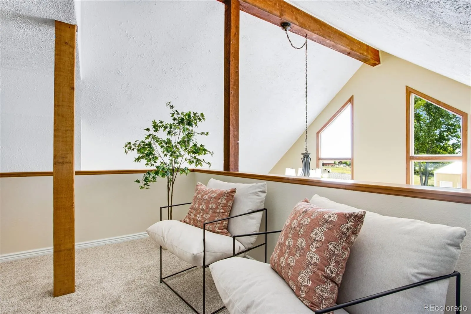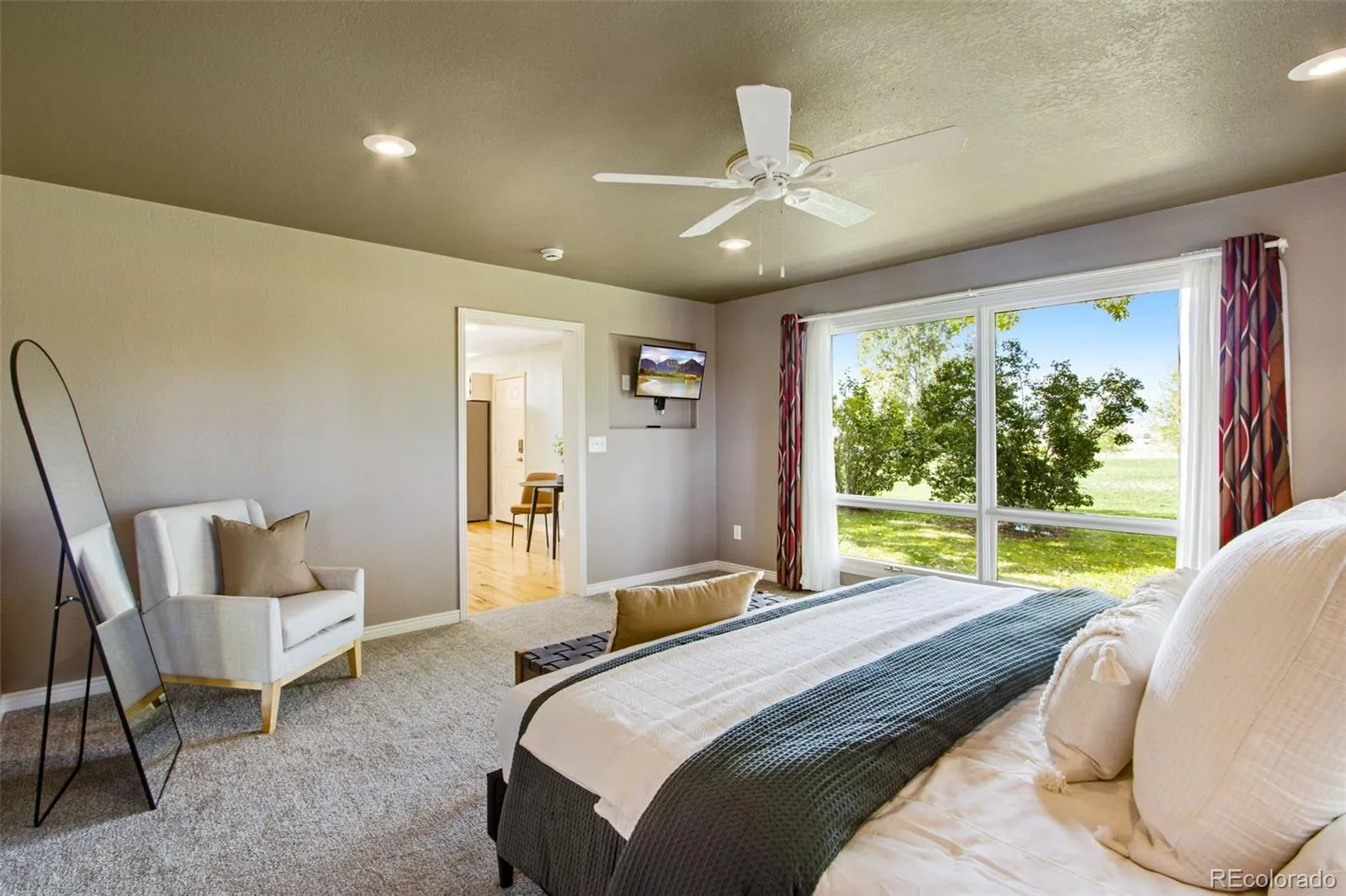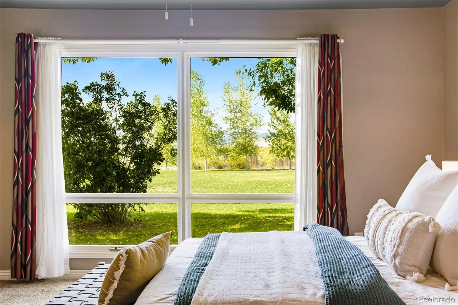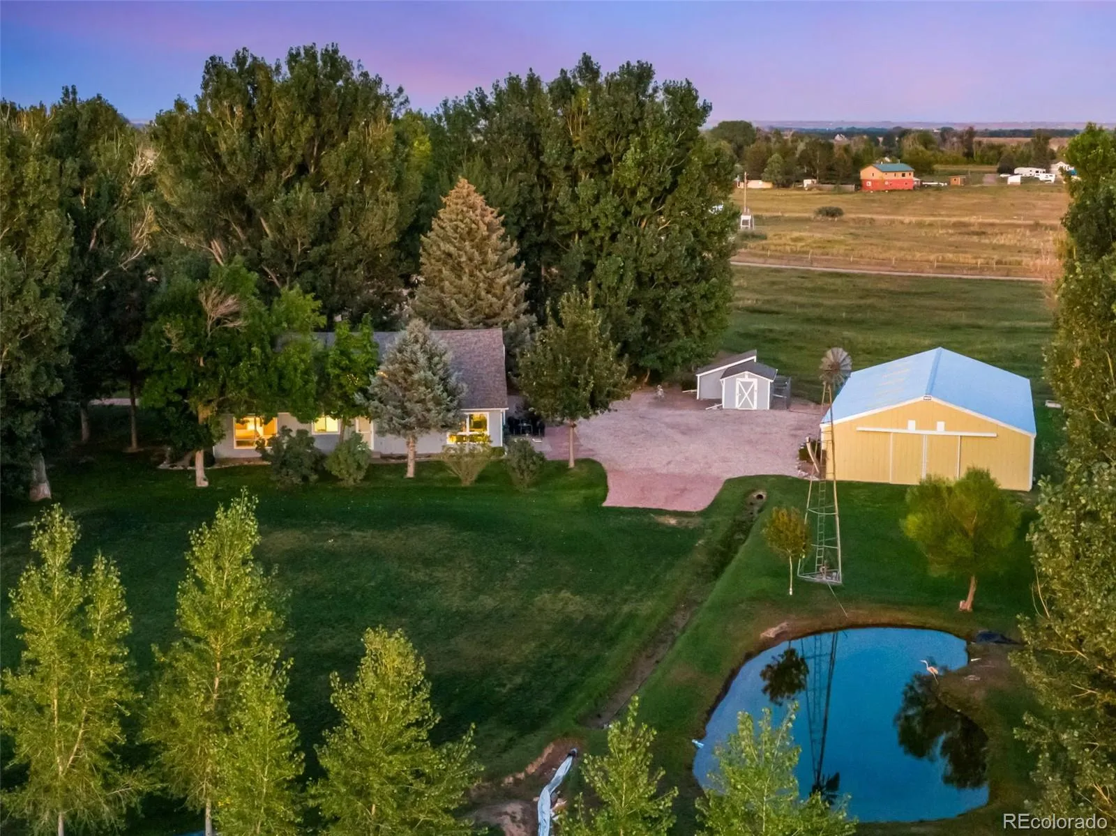 A special offering, where open space, water security, and mountain beauty come together in perfect harmony on 5 peaceful acres. Here is the opportunity to enjoy the best of what northern Colorado offers – a great hobby horse property or organic farm, a picturesque windmill accentuates the property’s panoramic views! Ready for the ultimate pastoral lifestyle and a member of the LADCO water association! (see agent for details) Bathed in natural light + soaring vaulted ceilings, site finished Hickory floors, well-appointment throughout with an inviting chef’s eat-in kitchen + fully remodeled 5 piece primary bath! Large graceful Cottonwoods line the entrance + driveway with several varieties of fruit trees that add seasonal color and charm. 3 Spacious Bedrooms, 3 Baths, convenient Main Floor Primary Suite + Upper level secondary Suite + nearly all newer windows! Expansive Eat-in Kitchen, Corian countertops, SS appliances gas range/dual fuel, huge center island excellent workspace + storage! The perfect Oasis for Farm to Table! New Carpet in the Primary Suite, Upstairs Suite + the office/desk area in the loft. Newer Roof on all buildings in 2018 & exterior paint done, on Barn tuff rib metal roof. 3 outbuildings, 65 X 36 Massive 6 Car Tandem Garage/Shop + Barn with 2 stalls + one oversized stall) new concrete flooring in breezeway. Steel barn with 50amp for an RV, scenic pond that serves both irrigation and overflow purposes, enhancing beauty and functionality. In the main home-Tankless Hot Water Heater, Trane furnace/Central AC, wall-in wood F/P in living rm (easily convertible to gas, line brought to it) 5 Piece Luxury Primary Bath-beautifully remodeled with oversized soaking tub & walk-in shower, heated floors + walk-in closet. Expansive south patio area concrete & flagstone with natural Gas BBQ line. Hydrants onsite + 4 standing beds on the east side. All appliances included + easy 15min. into Old Town Fort Collins + easy access to I-25, Pride of Ownership shines!