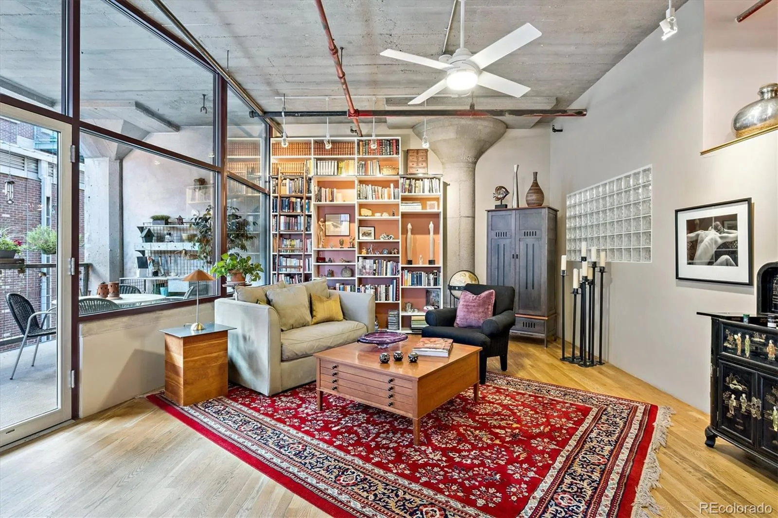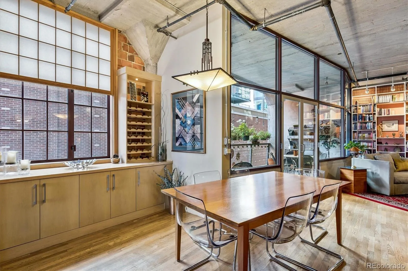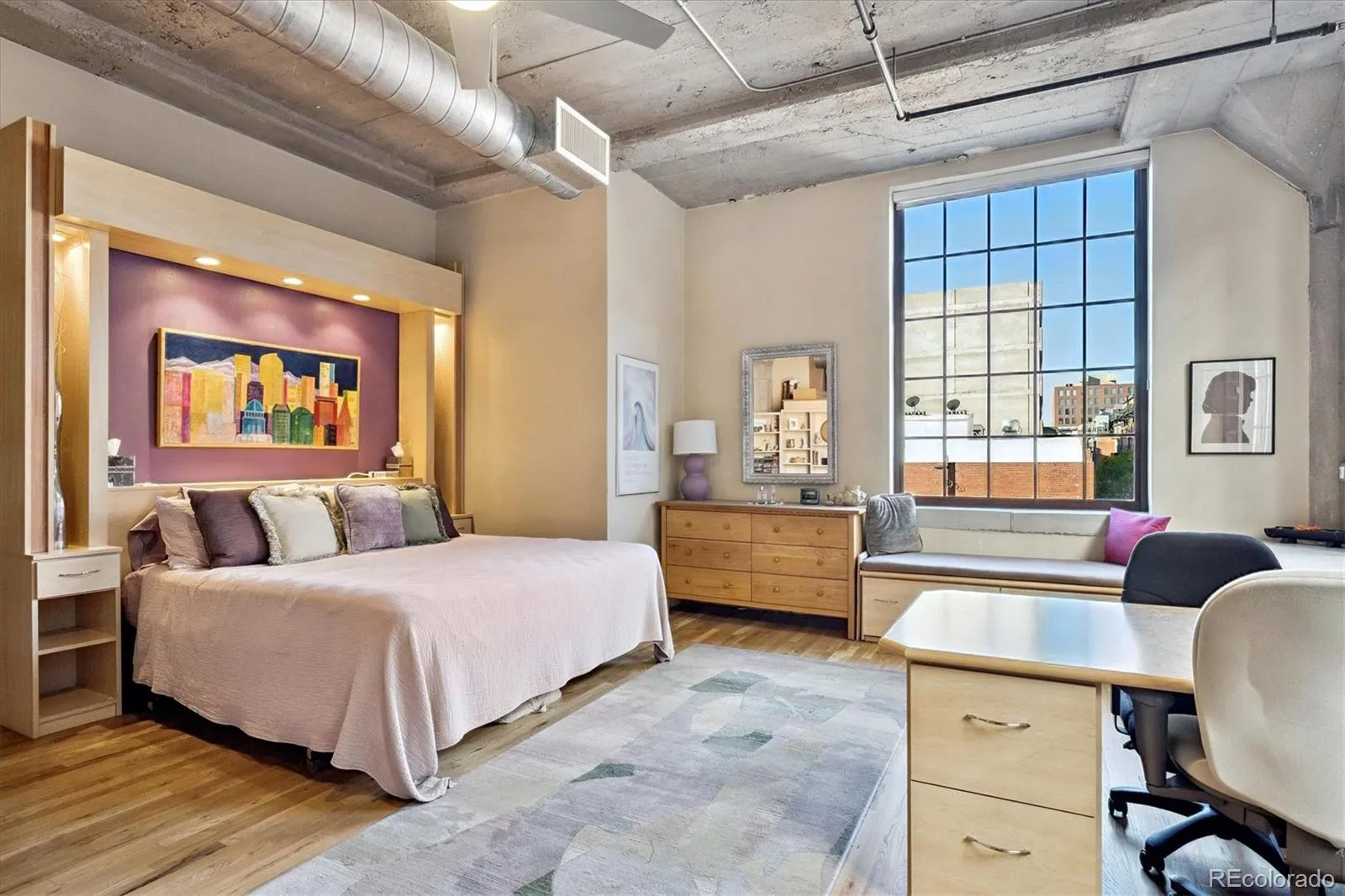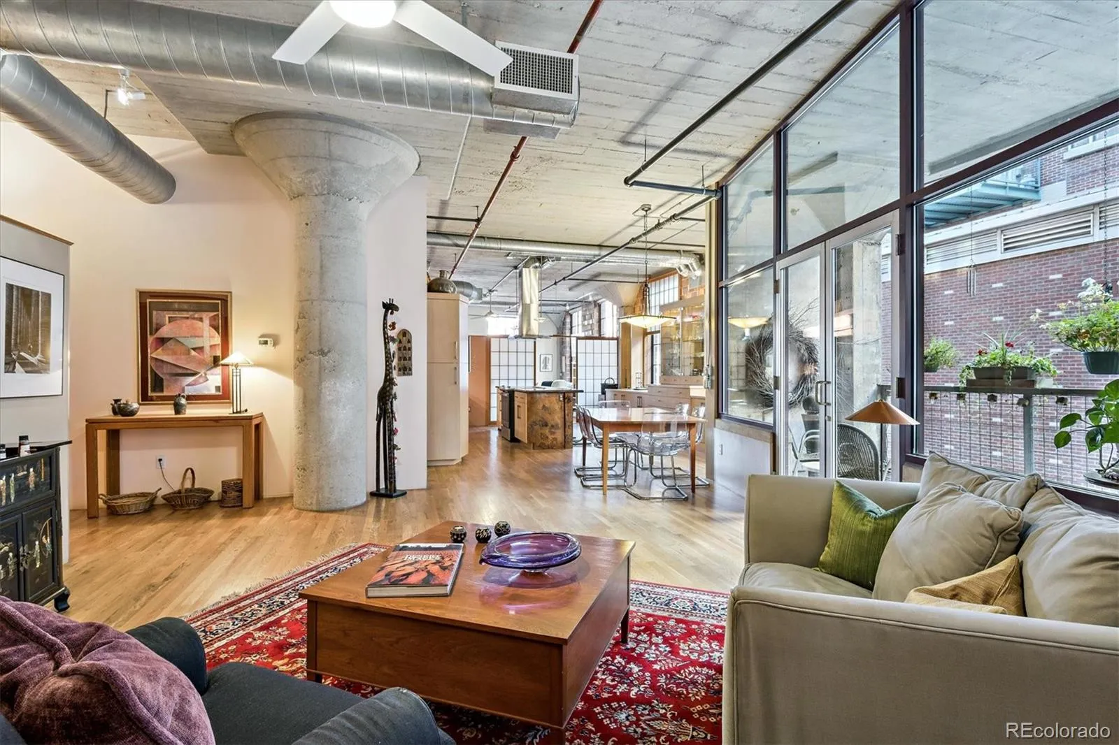 True Loft living, steps to Mac Gregor Square, Coors Field, Union Station and the Dairy Block. Unit 3E is a rare 2 bed and two bath ( F,3/4) configuration that is perfect for work from home and/or visiting guests. This unit features 11 foot ceilings, oversized ceiling height windows, exposed pipes and a community art collection. A large primary suite is complimented by a en-suite primary bathroom (updated in 2019) with a deep soaking tub and heated floors. Primary suite has custom cabinetry , work space, bookshelves, walk-in in closet, full sized laundry and three large ceiling height windows. A second non-conforming bedroom off of the entry foyer is ideal as a guest bedroom or office. Three quarter bath is convenient to both the second bedroom and the great room. Oversized gourmet kitchen with island features custom cabinetry flanked by banks of windows. Living room has a wall of library shelving and large windows facing the balcony. Secure deeded surface parking. With the possibility of renting additional garage rental spaces. This unit has the most desirable location, configuration, and historic charm yet it is bargain priced at $500 PSF. Rocky Mountain lofts were designed by noted architect Montana Fallis as on of Denver’s first Merchandise Marts. A high end reconstruction and conversion to luxury lofts preserved the classic art deco elements of flared concrete columns , exposed bricks and terracotta. LoDo Historic District. See www.1863Wazee3E.com for walk through tour.
