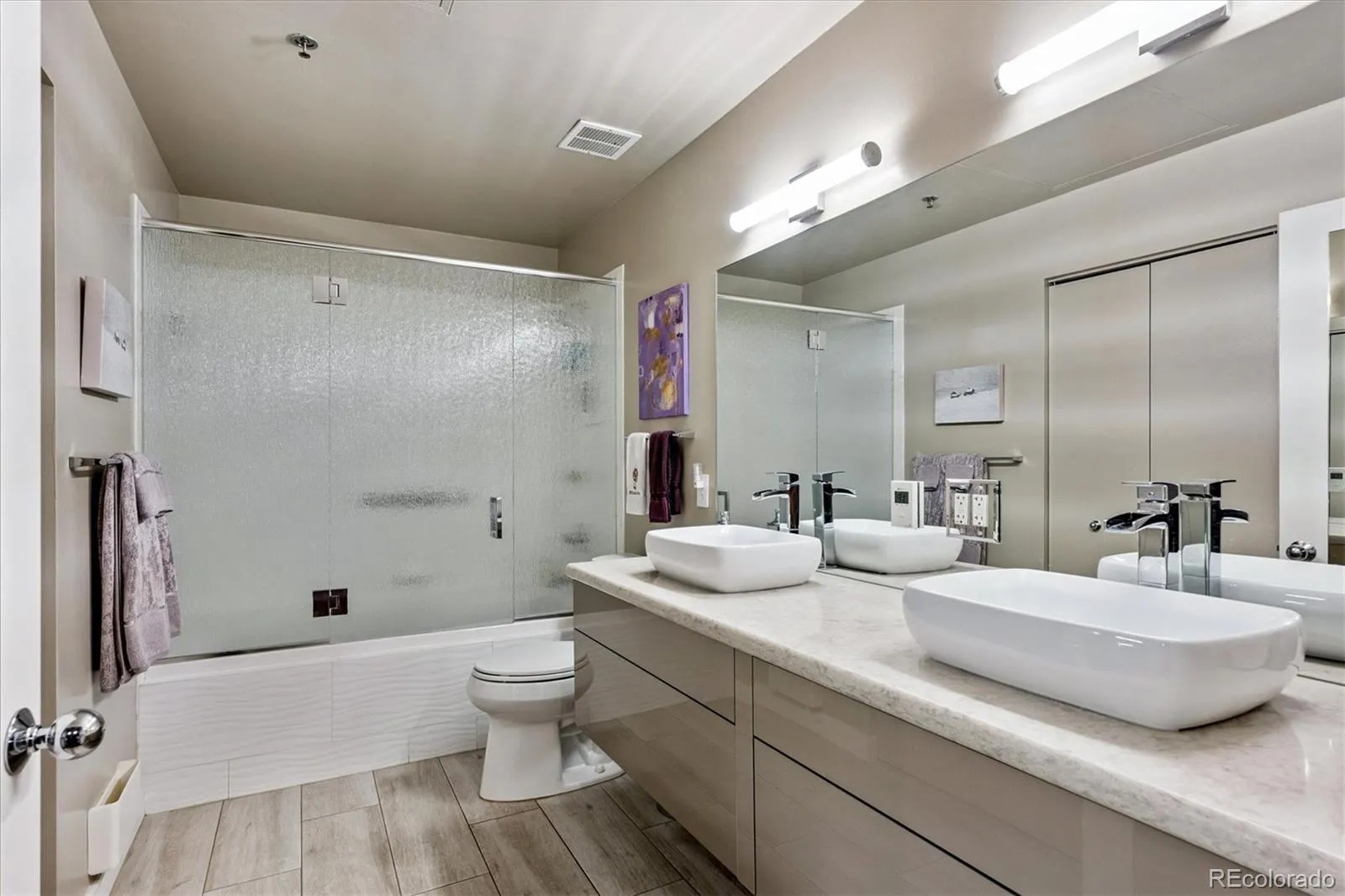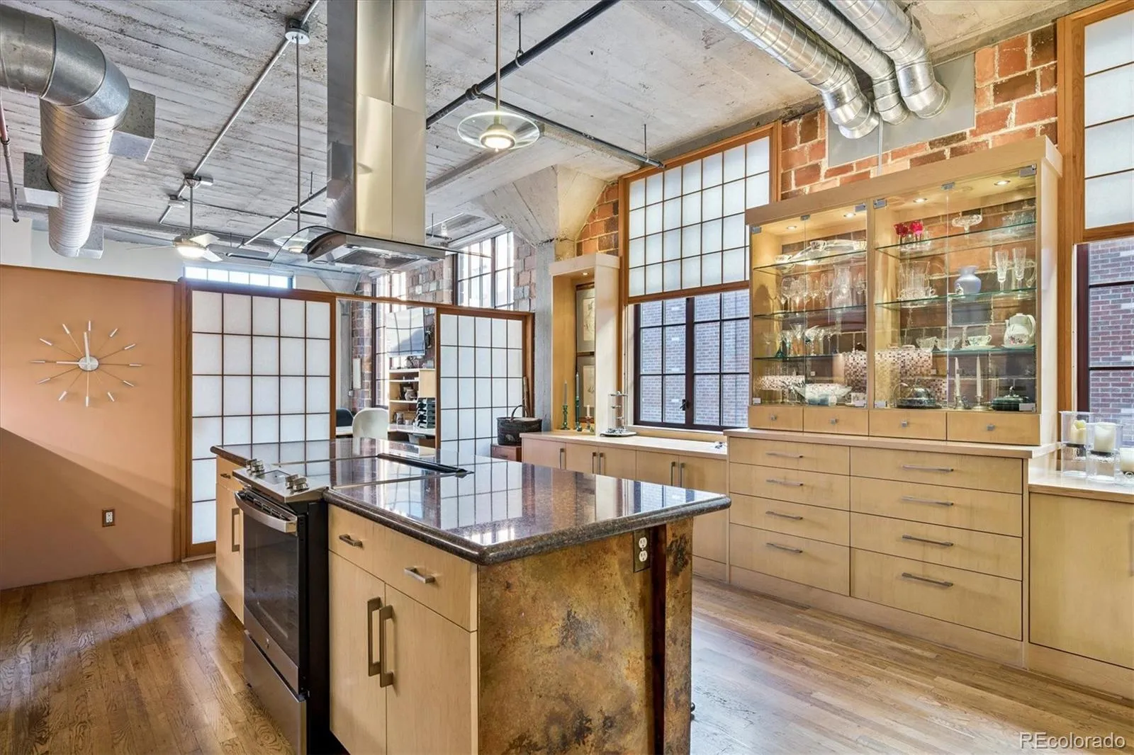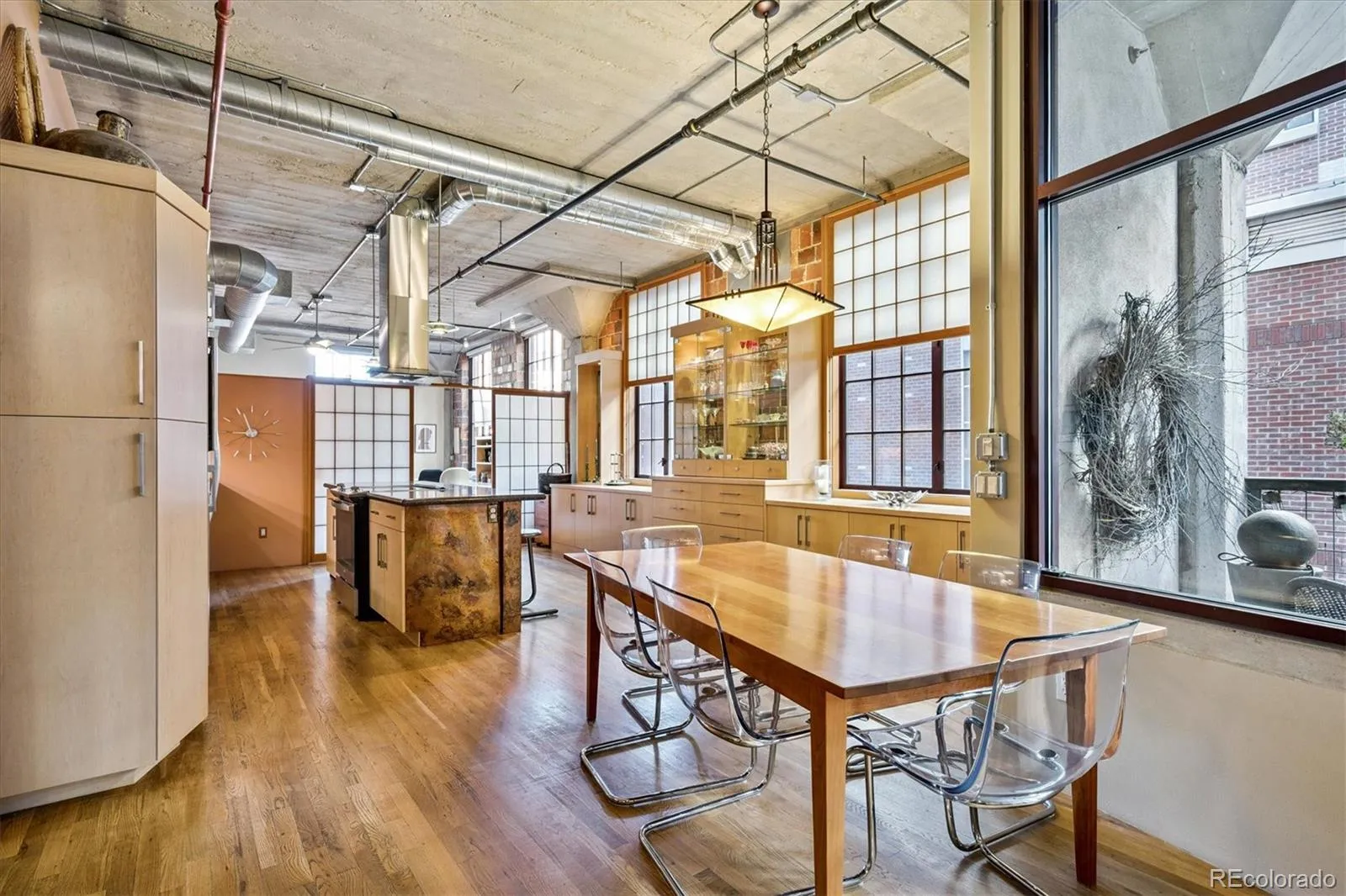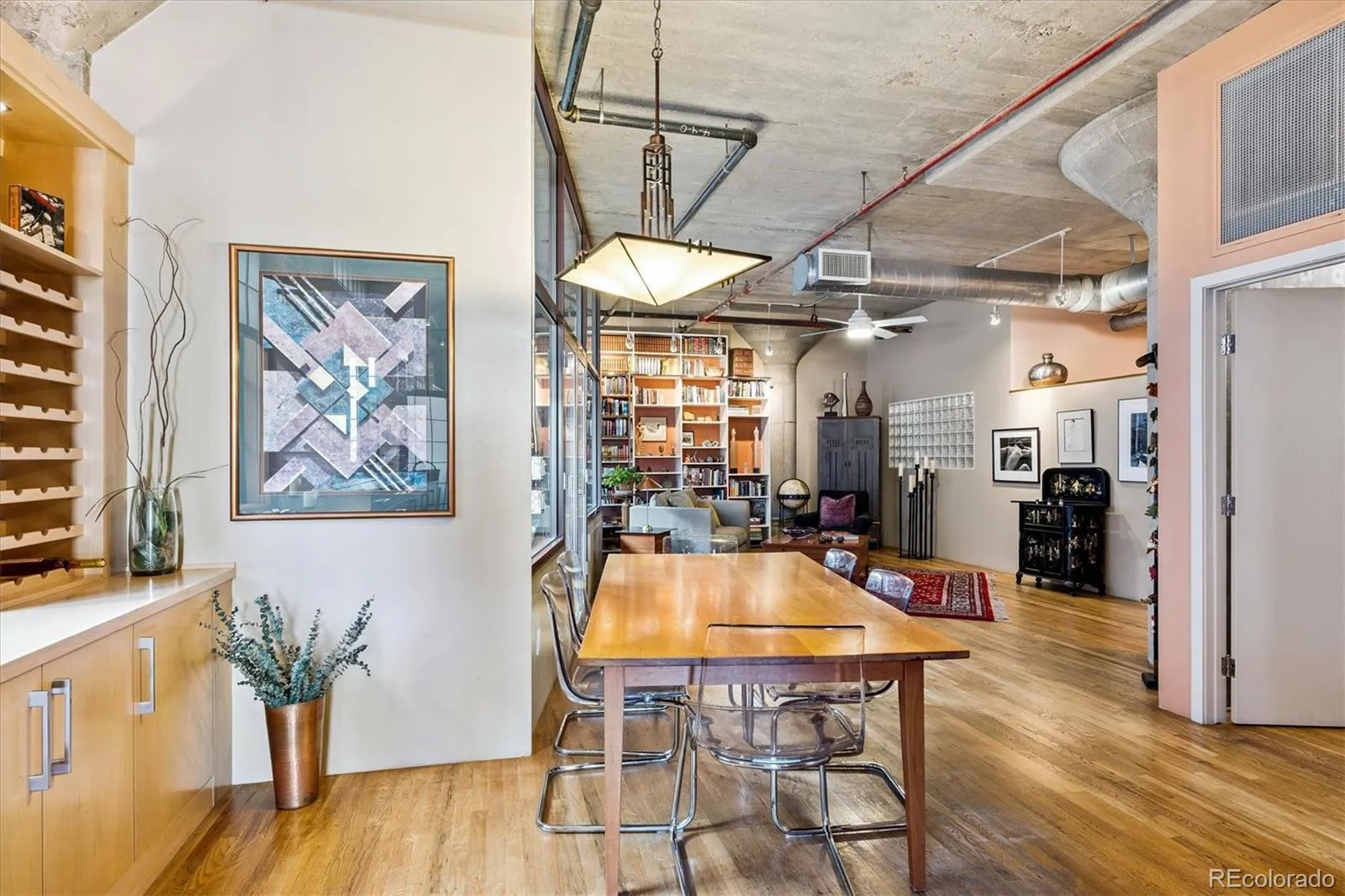 True Loft living, steps to Mac Gregor Square, Coors Field, Union Station and the Dairy Block. Unit 3E is a rare 2 bed and two bath ( F,3/4) configuration that is perfect for work from home and/or visiting guests. This unit features 11 foot ceilings, oversized ceiling height windows, exposed pipes and a community art collection. A large primary suite is complimented by a en-suite primary bathroom (updated in 2019) with a deep soaking tub and heated floors. Primary suite has custom cabinetry , work space, bookshelves, walk-in in closet, full sized laundry and three large ceiling height windows. A second non-conforming bedroom off of the entry foyer is ideal as a guest bedroom or office. Three quarter bath is convenient to both the second bedroom and the great room. Oversized gourmet kitchen with island features custom cabinetry flanked by banks of windows. Living room has a wall of library shelving and large windows facing the balcony. Secure deeded surface parking. With the possibility of renting additional garage rental spaces. This unit has the most desirable location, configuration, and historic charm yet it is bargain priced at $500 PSF. Rocky Mountain lofts were designed by noted architect Montana Fallis as on of Denver’s first Merchandise Marts. A high end reconstruction and conversion to luxury lofts preserved the classic art deco elements of flared concrete columns , exposed bricks and terracotta. LoDo Historic District. See www.1863Wazee3E.com for walk through tour.