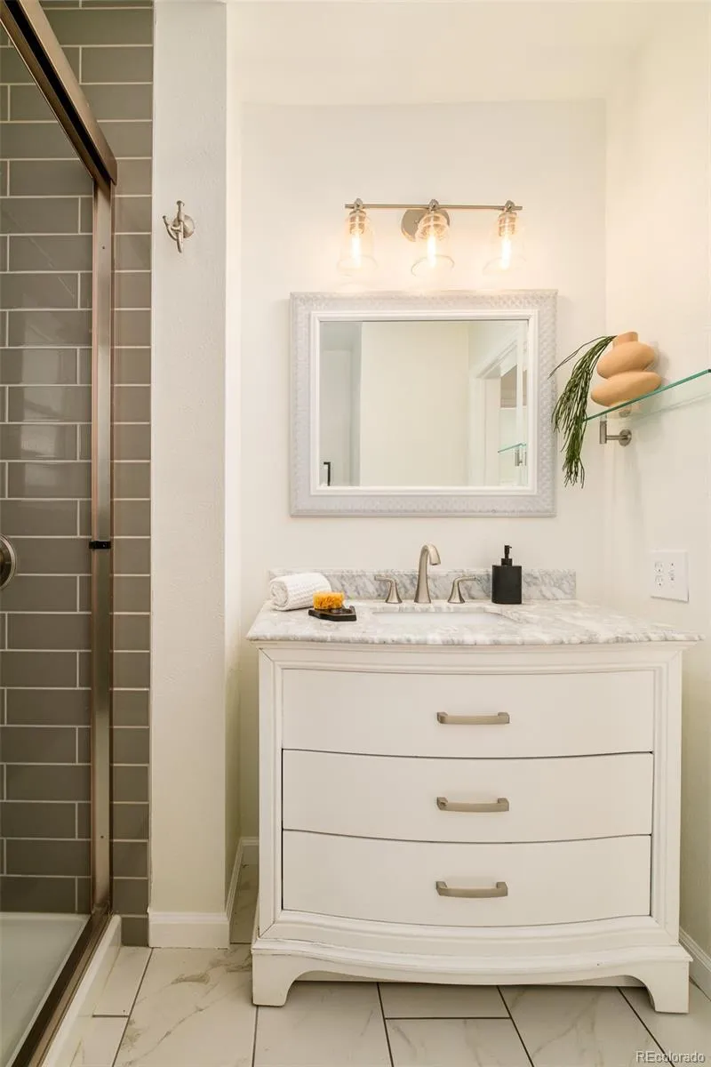 Effortlessly blending timeless charm with stylish modern updates, this Sunnyside bungalow sits on a double lot and offers the perfect balance of cozy interiors and thoughtfully designed outdoor spaces, and sits just minutes from the heart of Denver’s most iconic spots. Inside, a light-filled living space welcomes you with updated windows, fresh paint, and curated design details that feel both warm and elevated. The remodeled kitchen is both functional and beautiful, featuring shaker-style cabinetry, quartz countertops, stainless steel appliances, a gas range with a hood, and stylish accents that lend a fresh, modern feel. The main level includes one bedroom with walk-in closet and updated bathroom with thoughtful finishes. Downstairs, a basement flex space offers endless versatility ideal for a non conforming bedroom, media room, or home office. A bright and spacious laundry/mudroom leads to the home’s standout feature: a private backyard oasis designed for entertaining and everyday enjoyment. From the new pergola and large stamped concrete patio to the outdoor entertainment area, two storage sheds, and lush landscaping with drip and sprinkler systems, this yard truly has it all. The detached garage, featuring keypad entry, ample storage, and additional off-street parking space, adds both function and convenience. Lovingly maintained and move-in ready, this home presents an incredible opportunity to own a slice of Sunnyside with room to entertain, customize, and enjoy the very best of Denver living.