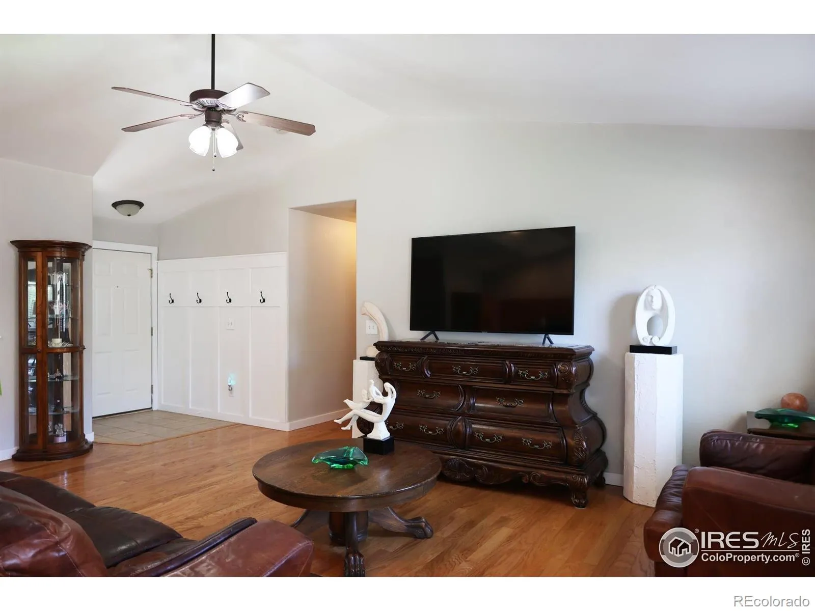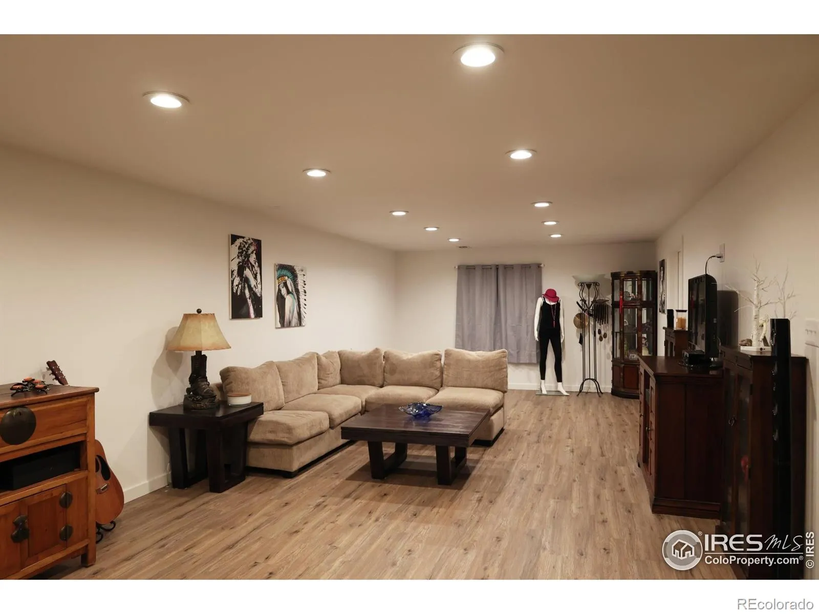 Step into the foyer with a unique hanging station, coat closet, plus new LPV flooring. A spacious great room features vaulted ceilings and Bruce luxury wood floors. The open kitchen offers overhead dimmer lighting, a dishwasher, custom cabinetry, newer stainless steel range/oven, double ss sink, microwave, a large double door refrigerator plus a perfectly sized bar for gatherings. New LPV flooring also added to the kitchen, dining area, and the main floor laundryroom w/ washer/dryer hookups. The primary suite boasts a walk-in closet, en suite bath with double sinks, shower, and a relaxing garden tub. Two additional bedrooms provide comfort and flexibility. The oversized 90% finished basement includes an office and a 4th bedroom with newer LPV flooring throughout plus a handy storage room and a shower in the bathroom w/ tiled flooring. Outdoors enjoy a private, fenced backyard with professional landscaping, raised garden bed, and custom fish pond. Both yards include sprinklers fed by non-potable water covered in the $50 HOA. With central air, heat, and a convenient location near downtown, schools, and I-25, this home combines comfort, style, and functionality in one inviting package.