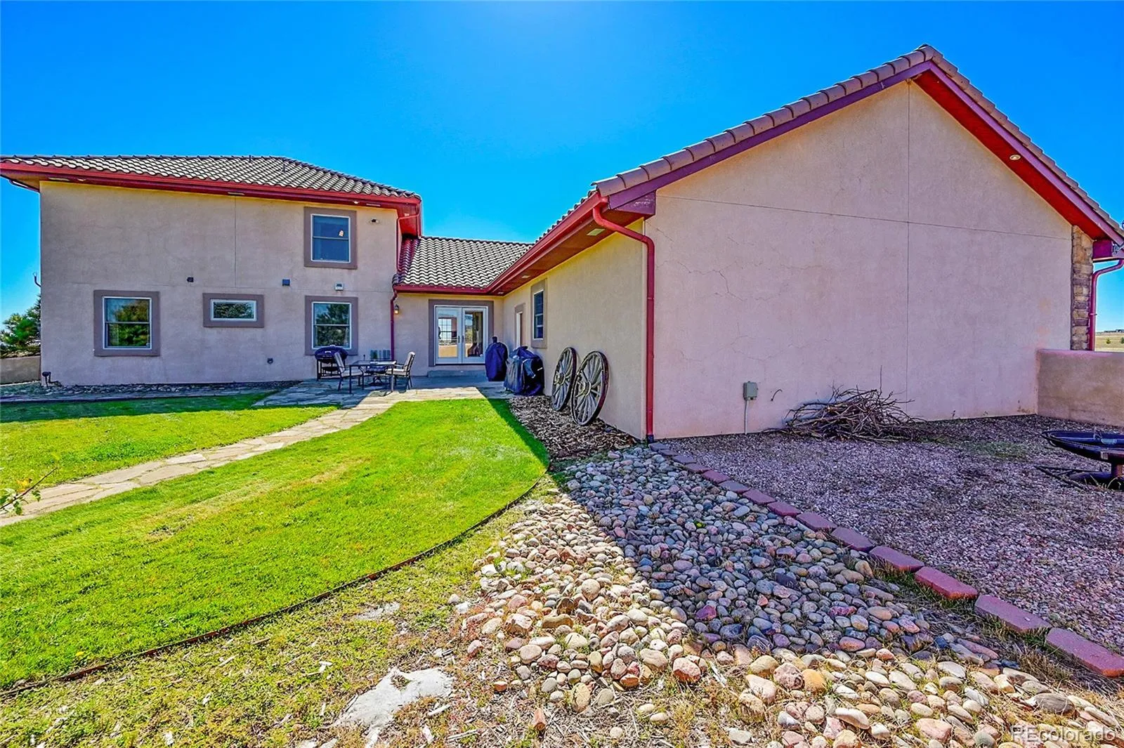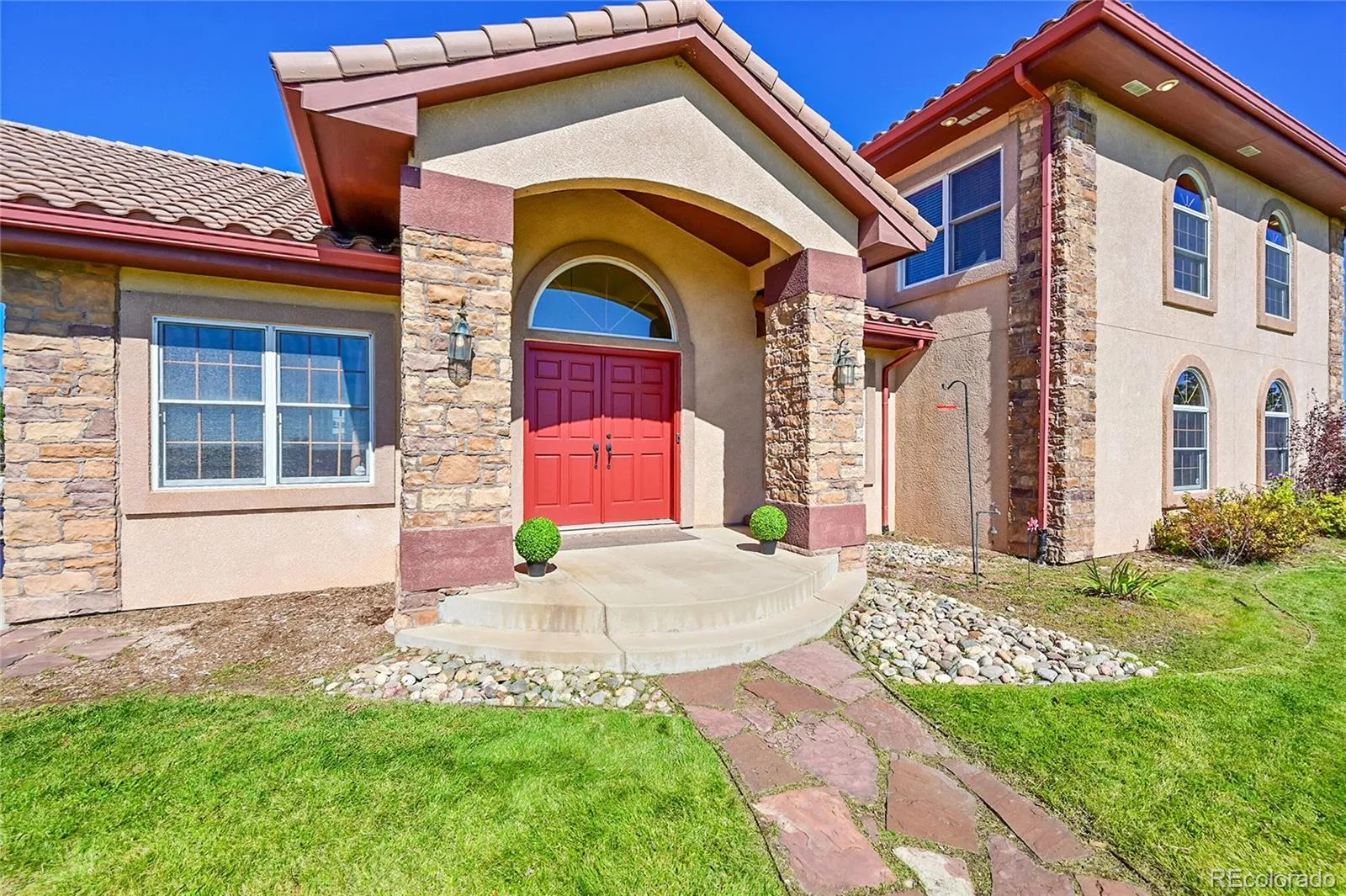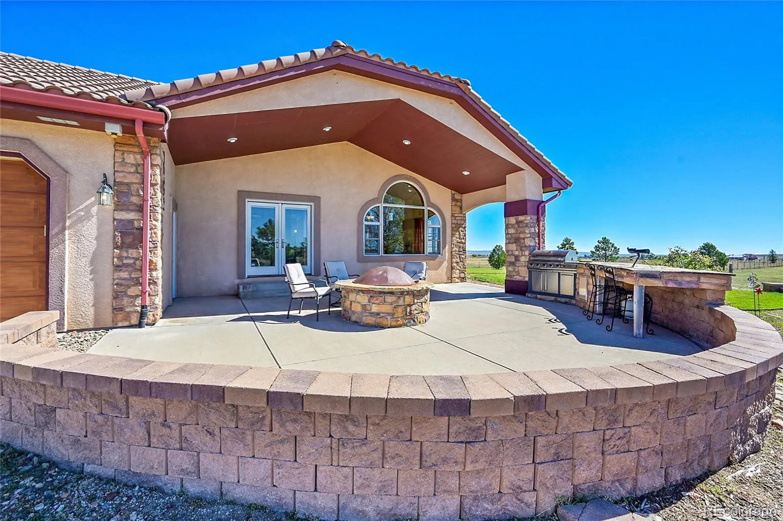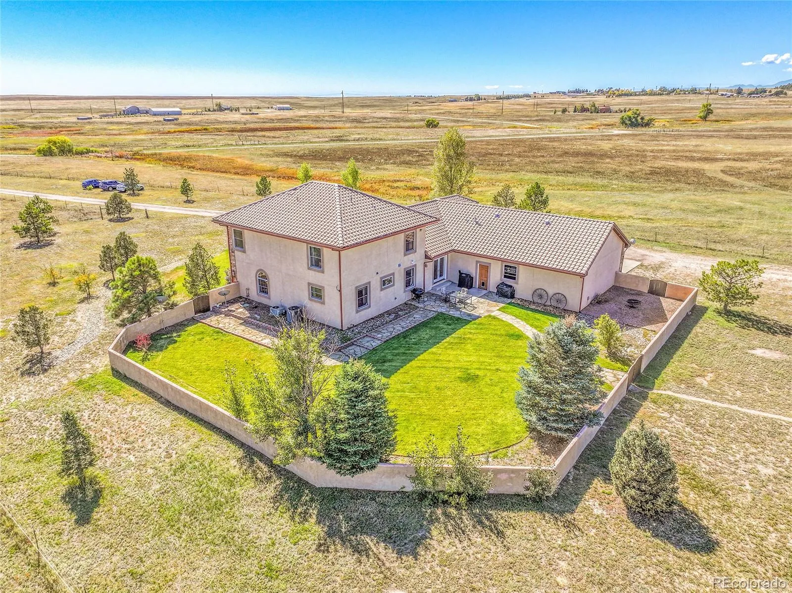 acres with unobstructed views of Pikes Peak and the Front Range. Topped with a classic tile roof and finished in rich stucco