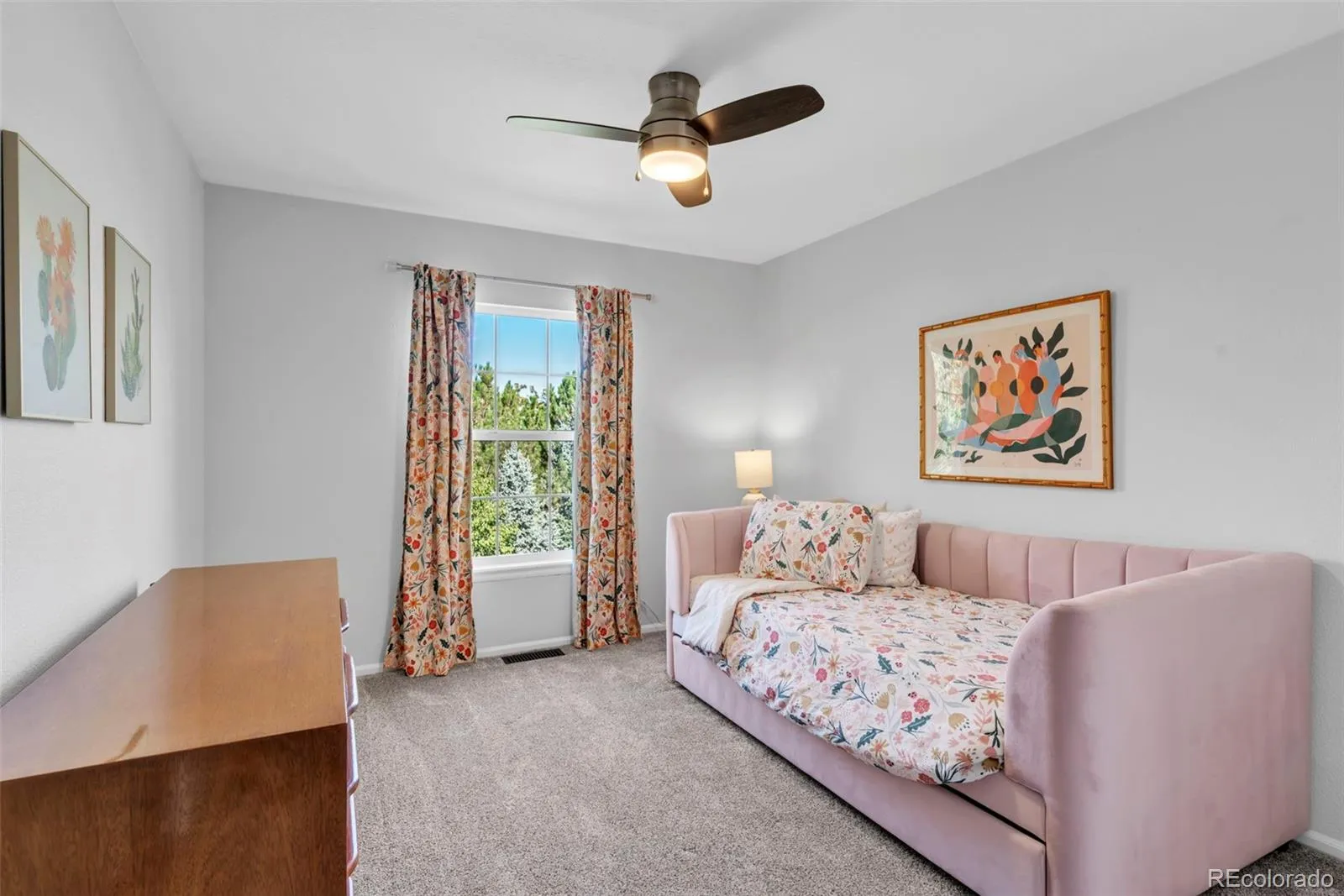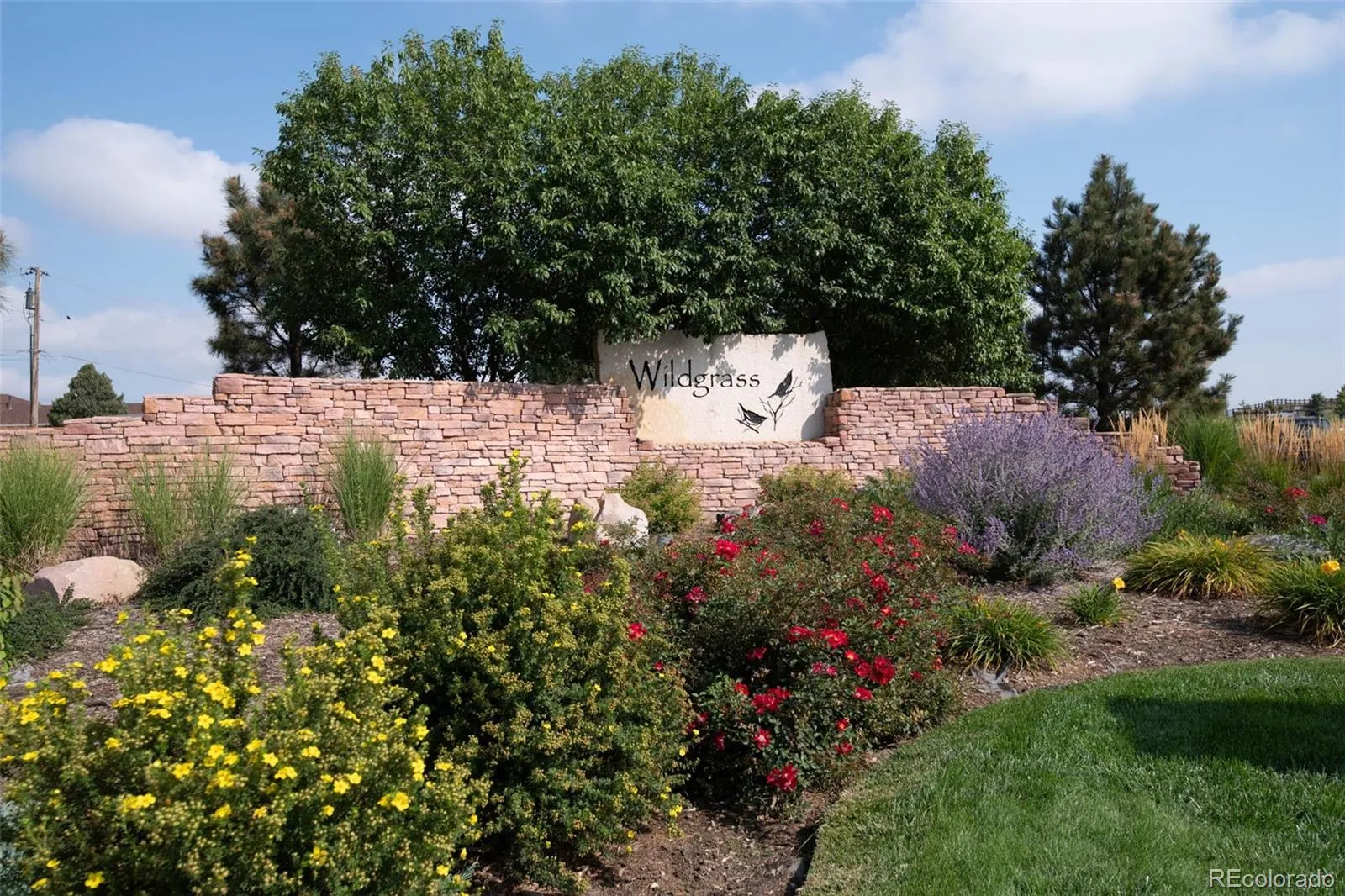 Experience elevated living where beauty, serenity, and sophistication blend. Nestled in the Wildgrass community, this breathtaking two-story home offers more than just a place to live. Tucked away on a cul-de-sac with mountain views, every moment here feels like a retreat. From the moment you arrive, you’ll be in awe of the open plan living space. In the heart of the home is the thoughtfully designed chef’s kitchen with no detail overlooked. Featuring a gracious kitchen island, 6-burner gas range, built-in KitchenAid refrigerator, quartz countertops, designer lighting and a custom bar station complete with wine and beverage fridge. Whether it’s morning coffee or a celebration with friends, this kitchen makes it unforgettable. The main floor is bathed in natural light, thanks to expanded windows and glass patio doors that seamlessly blend indoor and outdoor living. The open-concept living room, complete with a gas fireplace and rustic style mantel, offers a welcoming yet refined space to entertain or unwind. A private office completes the ideal main-level layout. Upstairs, the primary bedroom suite is your personal sanctuary, featuring a walk-in closet designed to delight and a luxurious bathroom with spa-like finishes, including a walk-in shower with dual shower heads. Three additional bedrooms, full bathroom and a convenient laundry room finish out the second level. Downstairs, the finished basement extends the living space with a family room, two additional bedrooms with egress windows and a full bathroom. Outdoors, mature landscaping which ensures privacy while the expanded patio creates the perfect environment for entertaining. Desirable 3-car garage and south facing driveway – ideal for winter months. Enjoy access to a scenic trail system that runs through this sought-after community. Conveniently located near schools, parks, The Orchard Town Center with easy access to I-25 and Northwest Parkway. This is more than a home, it’s where your next chapter begins.