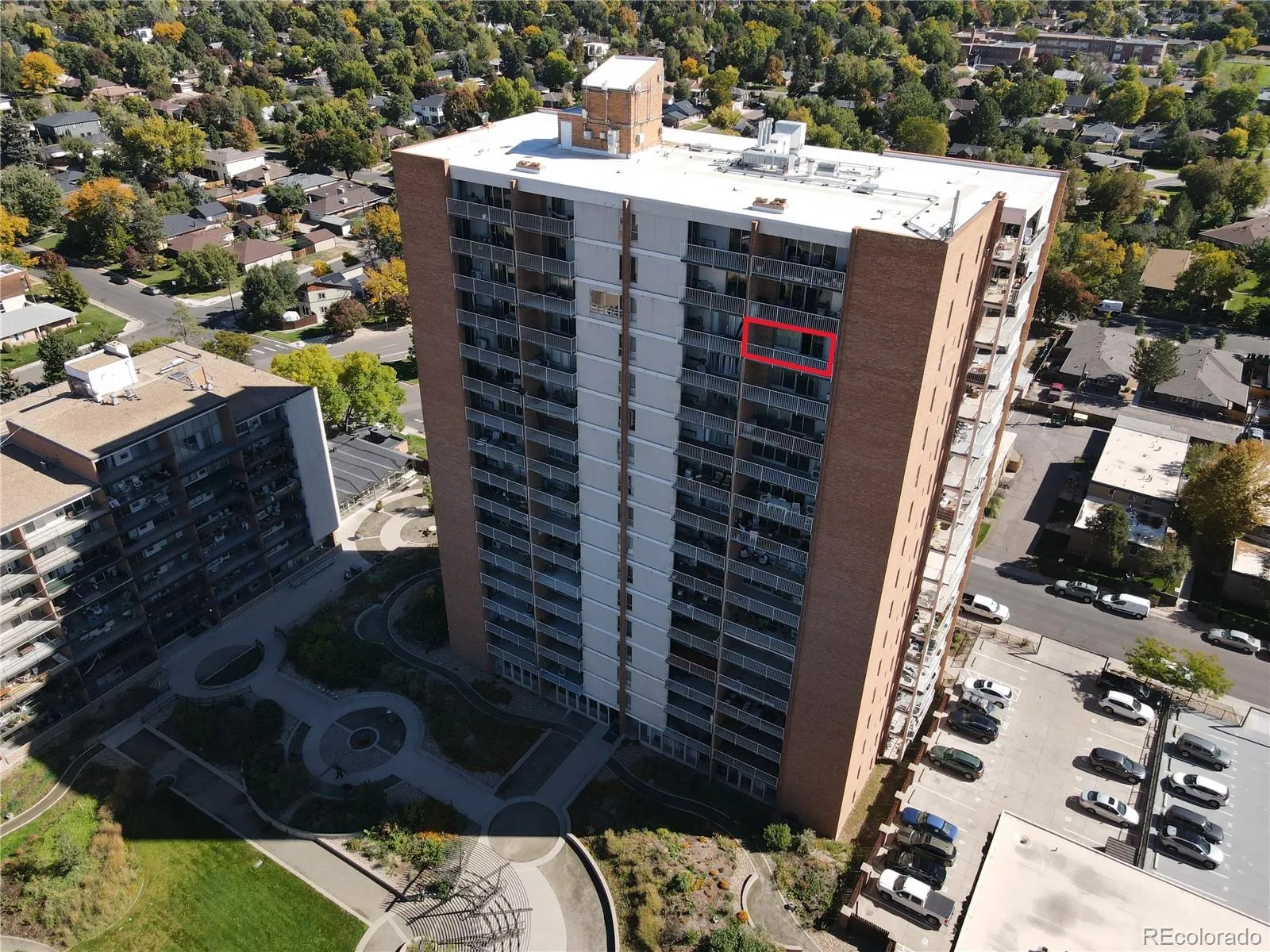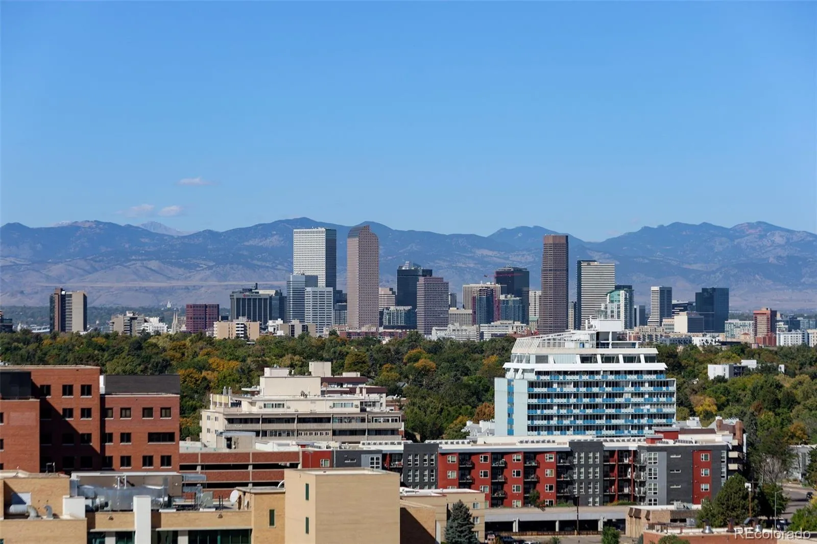 Breathtaking west facing mountain and city views from this 16th floor unit. Experience resort like living at the Park Mayfair complex. Exceptional amenities include outdoor AND indoor pools, updated fitness facility with weight room, yoga studio, sauna and steam room; community clubhouse with kitchen, billiards room, and outdoor space with walking trails, gardens and water feature. Two bedroom unit is full of natural light from the floor to ceiling windows leading to the oversized balcony. Primary bedroom has attached en suite bathroom with updated designer tile shower, walk in closet and direct access to balcony. Secondary bedroom has built in desk with bookshelves, closet system and nearby guest bathroom with updated tile shower. Gleaming hardwood floors throughout and stylish exposed brick wall complete this lovely condo. Mid century style wood burning fireplace across from dining area is a unique touch. New in unit windows and sliding glass doors provide efficiency and ease of use. Coinless laundry room just down the hall for your convenience. HOA includes heat along with trash and water! Exciting updates coming to this well managed building, reach out for details.
