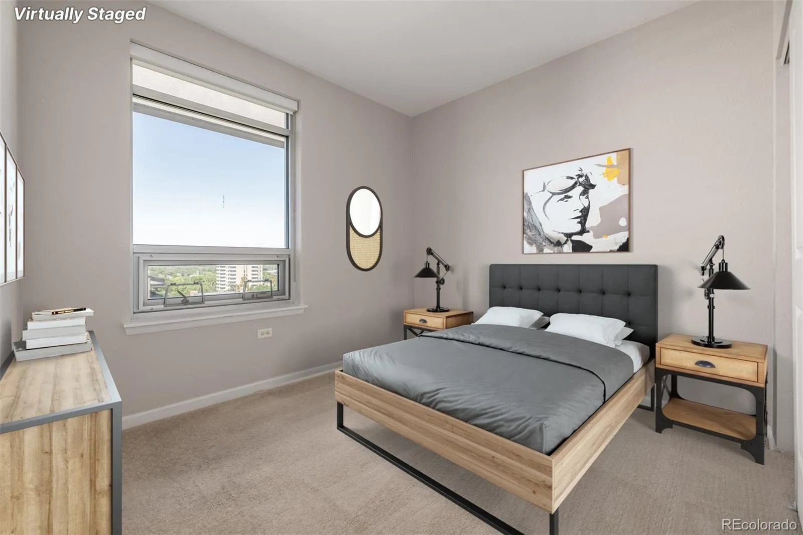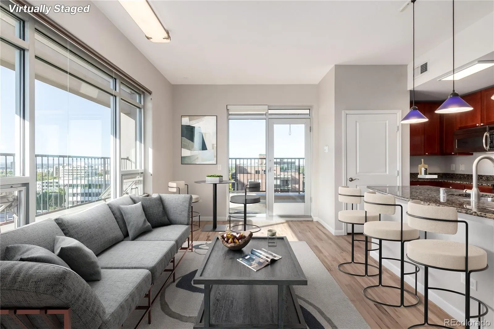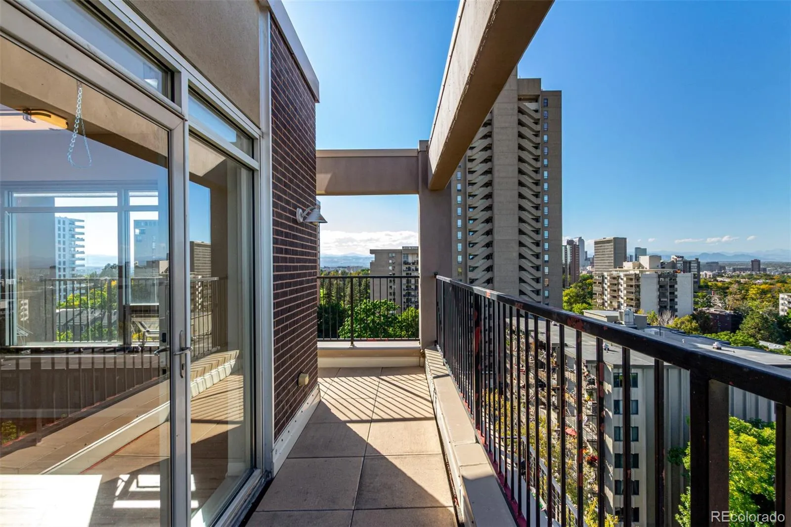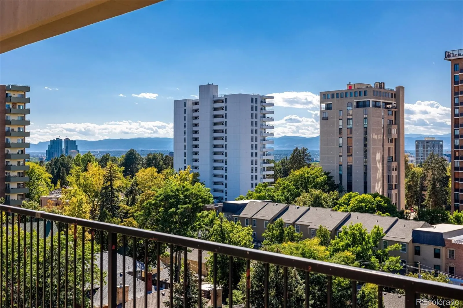 Perched atop an elegant high-rise just up the road from the iconic Cheesman Park, this penthouse suite celebrates city living with panoramic views that sweep from the Denver skyline to the Rocky Mountains. High ceilings lift the eye upward while oversized windows flood the home with light, creating an ever-changing backdrop that frames the city in its most beautiful form. The living room centers around a chic fireplace, its modern design enhanced by contemporary fixtures and warm honey-toned hardwoods that enliven the space. A thoughtfully designed island with pendant lighting connects the kitchen and living area seamlessly, encouraging both effortless flow and refined entertaining. In the kitchen, full-height cherry shaker cabinetry combines timeless style with abundant storage, complemented by stainless steel appliances, vented hood, and elegant countertops that offer a chef-ready workspace. The primary suite rises to meet the views with a coffered ceiling and oversized windows that extend the sense of volume and serenity. An expansive walk-in closet and spa-inspired ensuite bathroom offer a retreat within the retreat. The secondary bedroom is equally well-appointed with a separate accessible bath and thoughtful design. Everyday convenience is elevated with in-unit laundry, two deeded covered parking spaces, and a location that places Cheesman Park, the Denver Botanic Gardens, and countless restaurants and cafes within easy reach. A home of both historical character and modern function, this residence blends chic sophistication with the vibrant energy of Denver living.