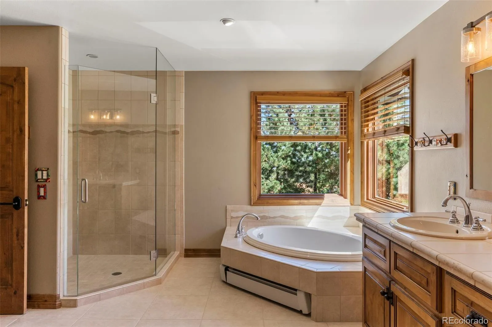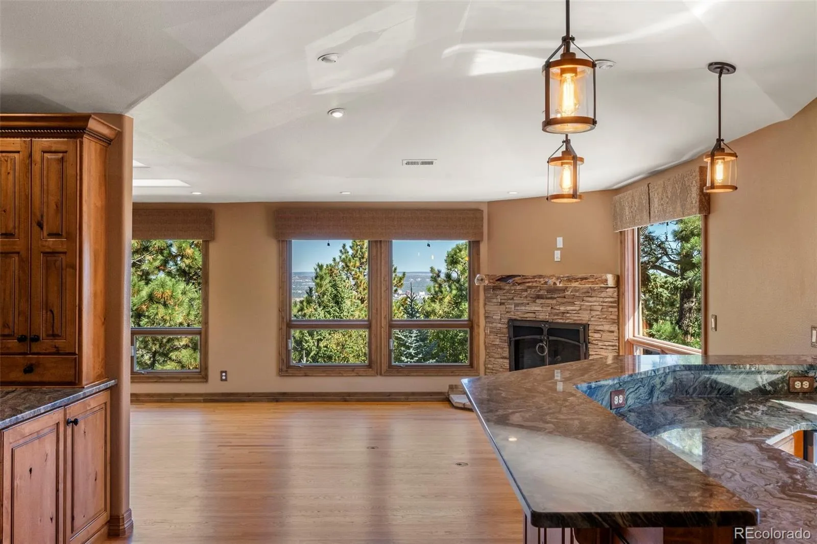 A serene hillside retreat tucked away in the trees just moments from the Broadmoor hotel. This exceptional residence in Broadmoor Heights sits on nearly half an acre, blending indoor comfort and outdoor living. Step outside to expansive outdoor living areas and private gardens, all surrounded by towering pines that embrace the mountain terrain. The open, flowing main level has rich hardwood floors, floor-to-ceiling windows, and a walkout to an expansive deck ideal for entertaining and outdoor living. The primary suite is a true retreat complete with a stone fireplace, dual walk-in closets, and a spa-like bathroom. The chef’s kitchen is outfitted with high-end appliances, custom cabinetry, and two granite islands, and is ideal for hosting or quiet evenings. Main level office with custom built-ins and wraparound windows. Lower-level guest suites with private walk-out access and a media room. Two garages with EV charger and carport, plus an additional free-standing garage or workshop. This 4,189 square foot home is ideal for the buyer seeking privacy, elegance, and a lifestyle anchored in an iconic Broadmoor neighborhood. Buyer has the option to join the Broadmoor Golf Club.