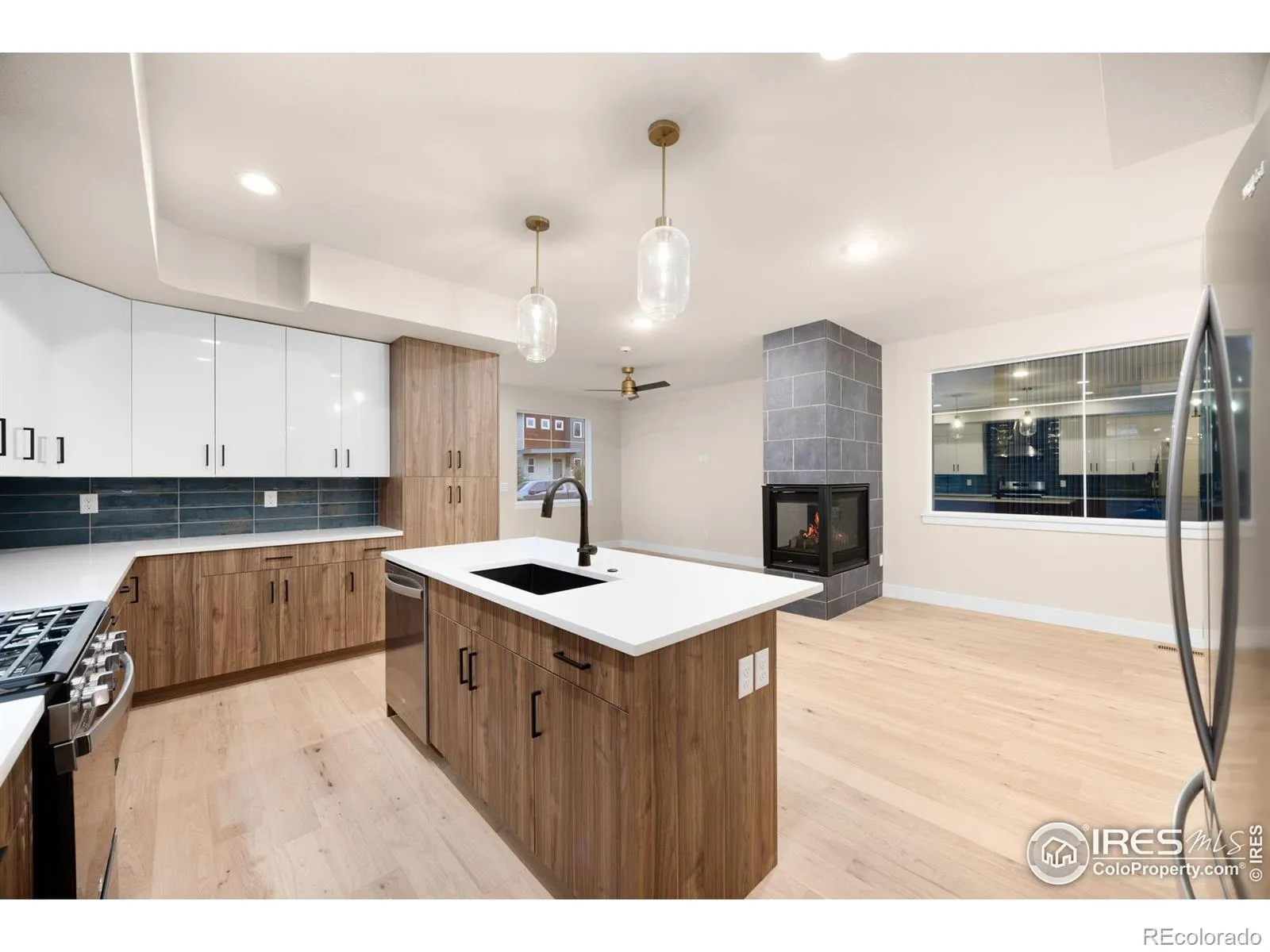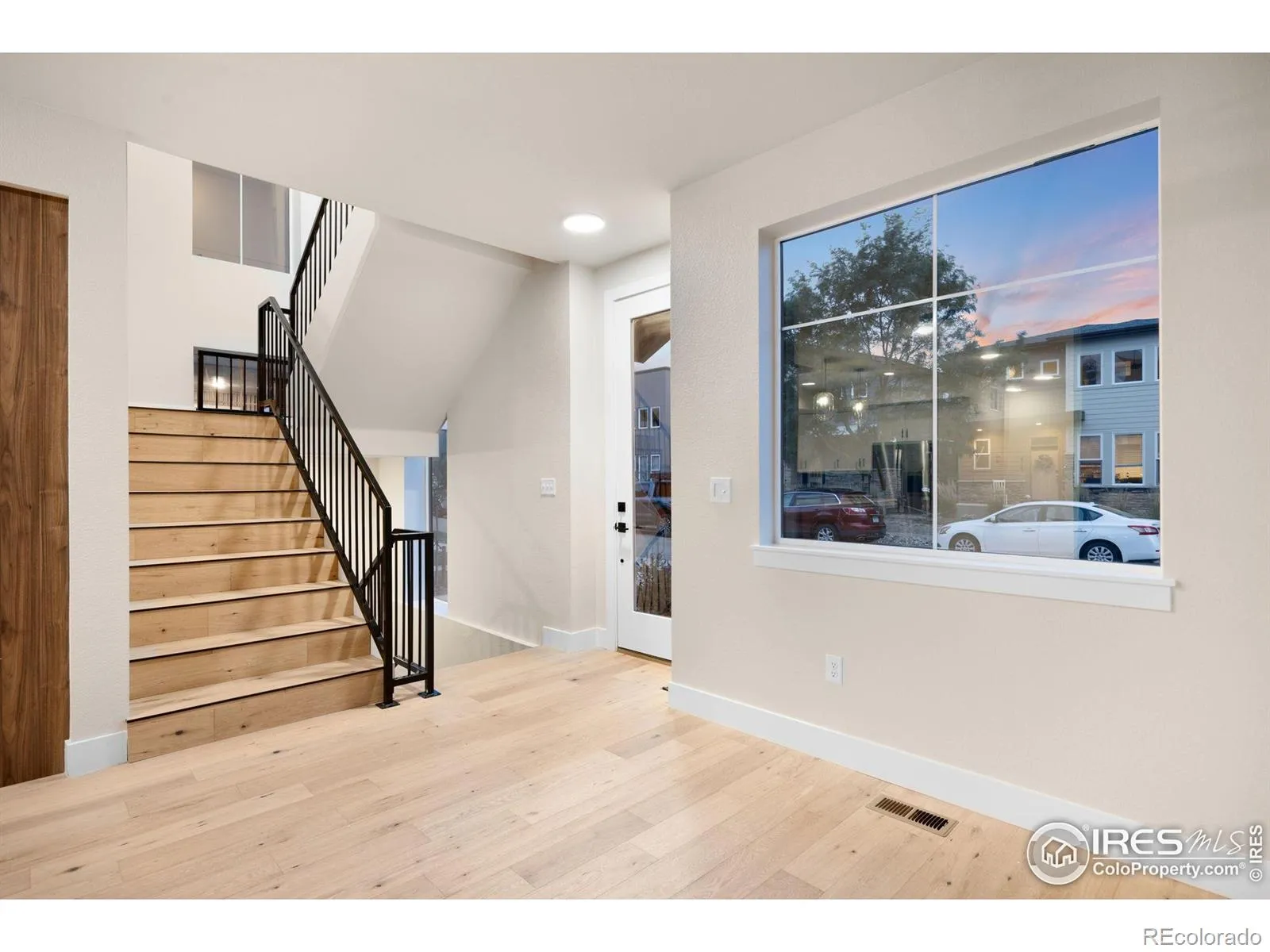 This Acadia Monarch Model will WOW you! Offering sweeping views from an expansive rooftop deck! This stunning contemporary two-story home showcases luxurious finishes, soaring vaulted ceilings, and an open-concept layout perfect for both everyday living and entertaining. The gourmet kitchen features a large island, stainless steel appliances, a gas range with hood, and an inviting eat-in dining area with a sleek gas fireplace. It flows seamlessly into the living and dining spaces, creating an ideal atmosphere for connection and comfort. Upstairs, you’ll find Three Bedrooms, including a beautiful Primary Suite with a private balcony rated to hold a hot tub and a Spa-inspired Ensuite Bath. Two additional bedrooms share a Full Bath, and the Upper-level Laundry adds everyday convenience. The Finished Basement includes a Fourth Bedroom and full guest bath-ideal for visitors or entertaining. Enjoy multiple outdoor spaces, including the spacious rooftop deck (also rated for a hot tub) where you can relax under Colorado’s night sky and take in breathtaking sunsets. The two-car garage with alley access and an HOA that covers trash, basic cable, and internet make for easy, low-maintenance living. Just steps from the Poudre River Whitewater Park, scenic trails, local breweries, and downtown Fort Collins-this home truly has it all. Come see it today!