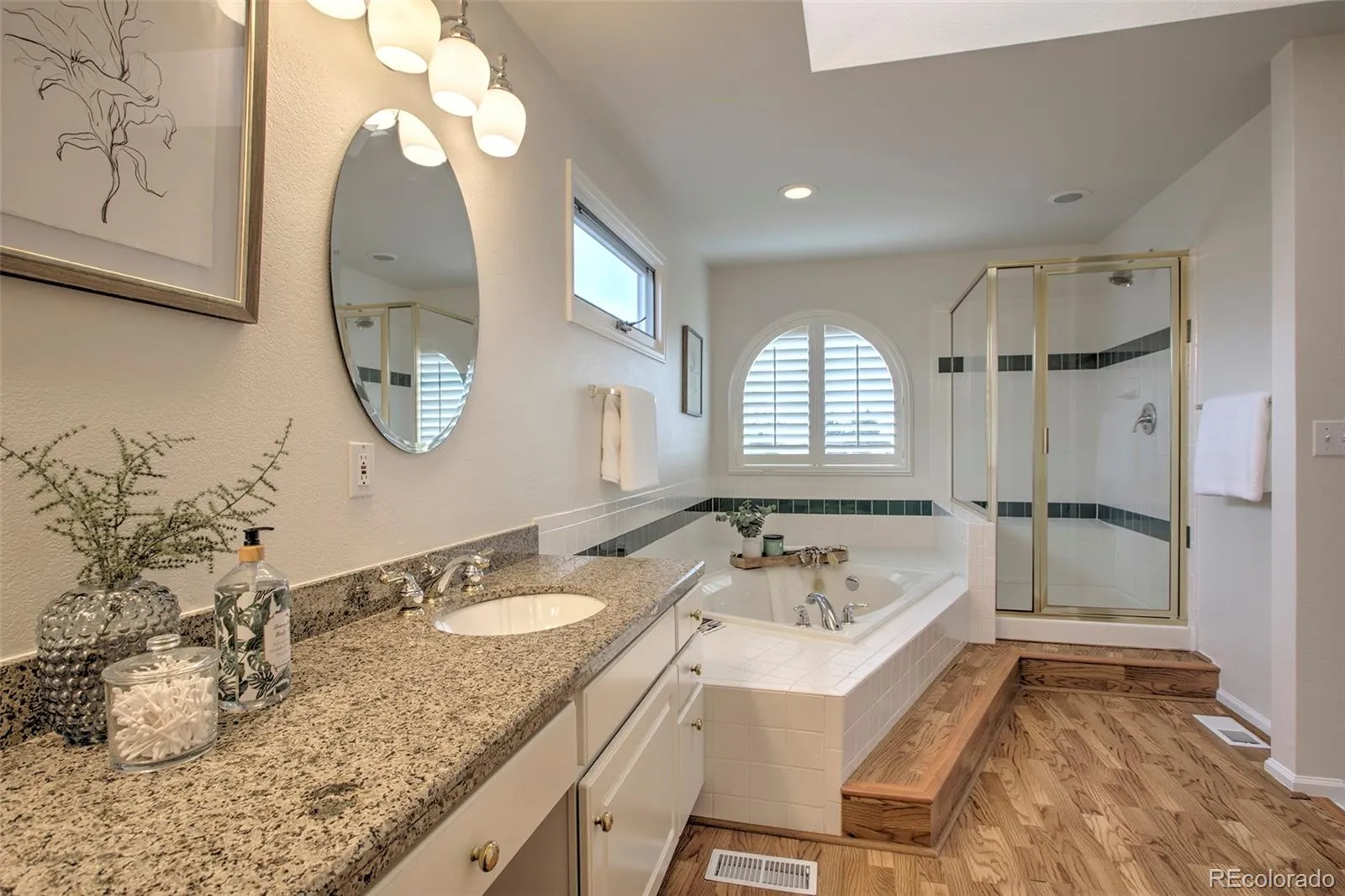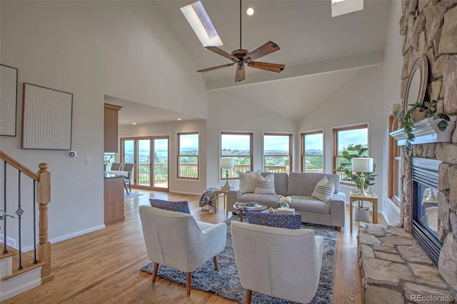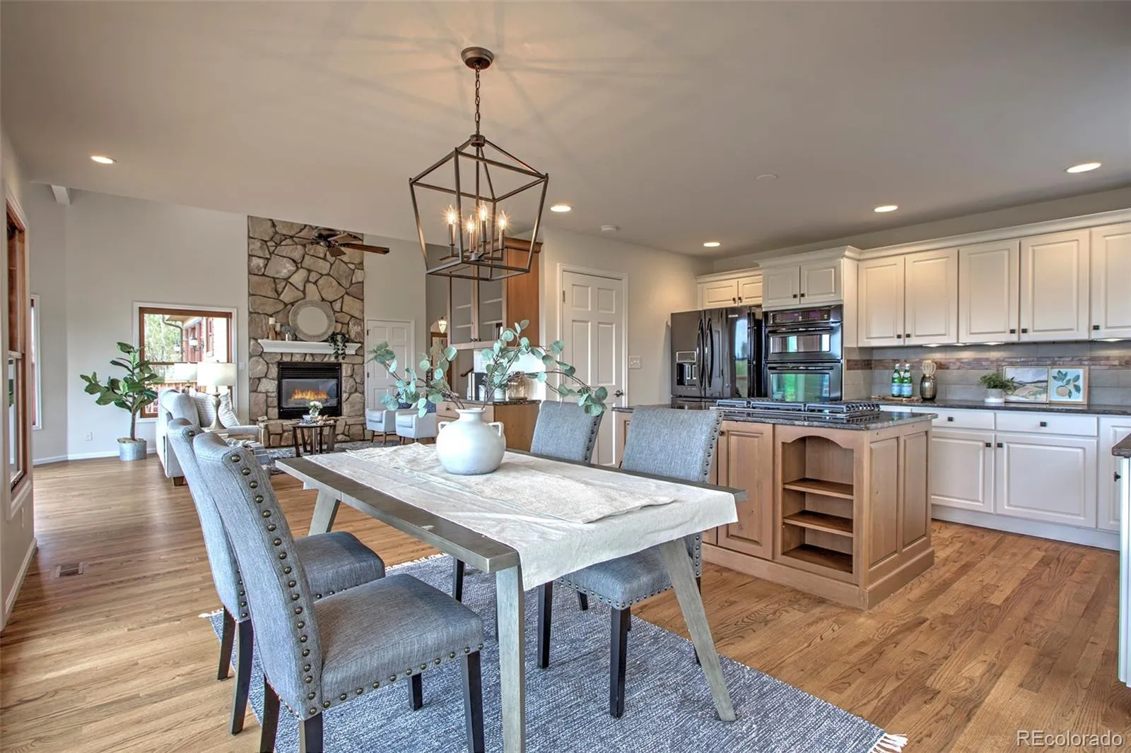 · Classic Colorado Style: Contemporary architecture blends seamlessly with the natural beauty of the surrounding landscape. Warm accents include a soaring stone fireplace, hardwood floors, granite countertops, and custom wood cabinetry.