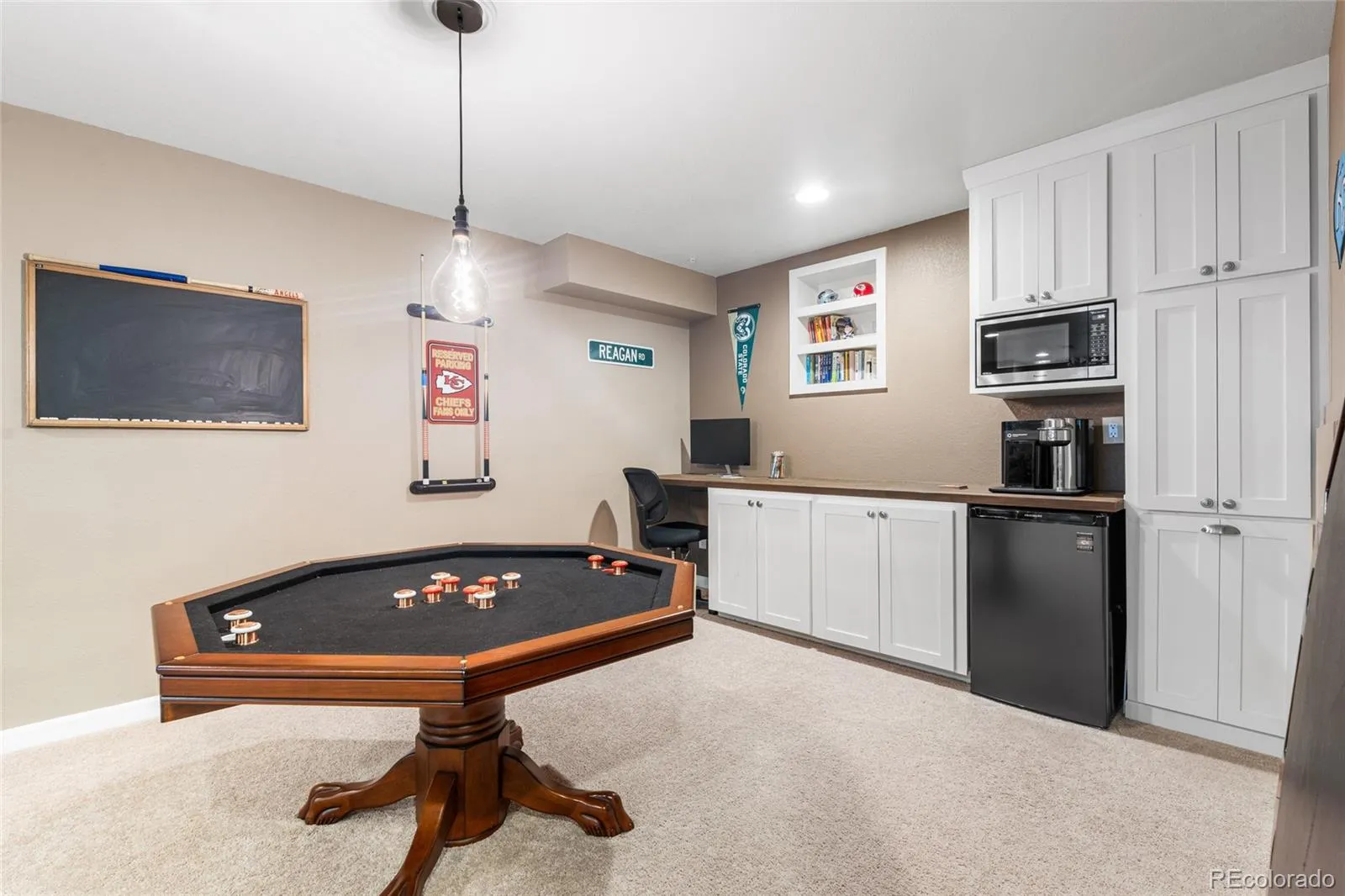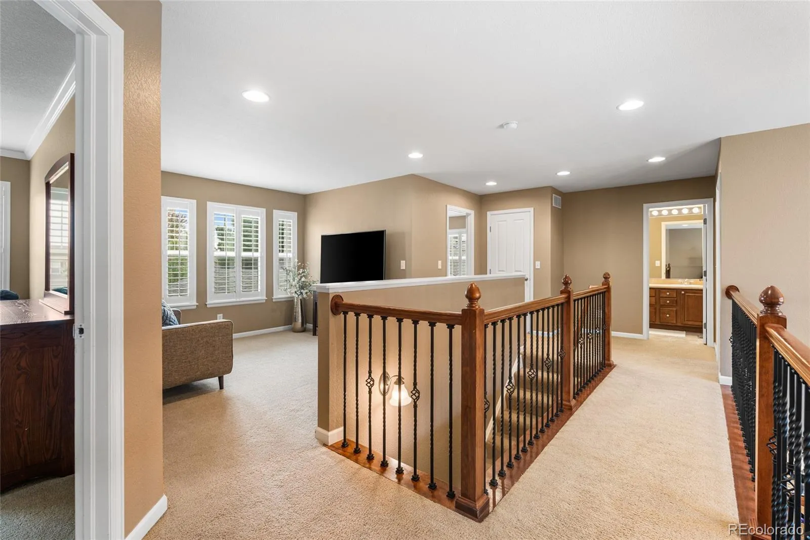 Thoughtful upgrades throughout include a built-in entertainment center, surround sound, crown molding, wainscoting, plantation shutters, a humidifier, water softener system, and an insulated garage. Recent updates include a newer roof, newer water heater, and newer exterior paint, offering peace of mind and move-in-ready condition.