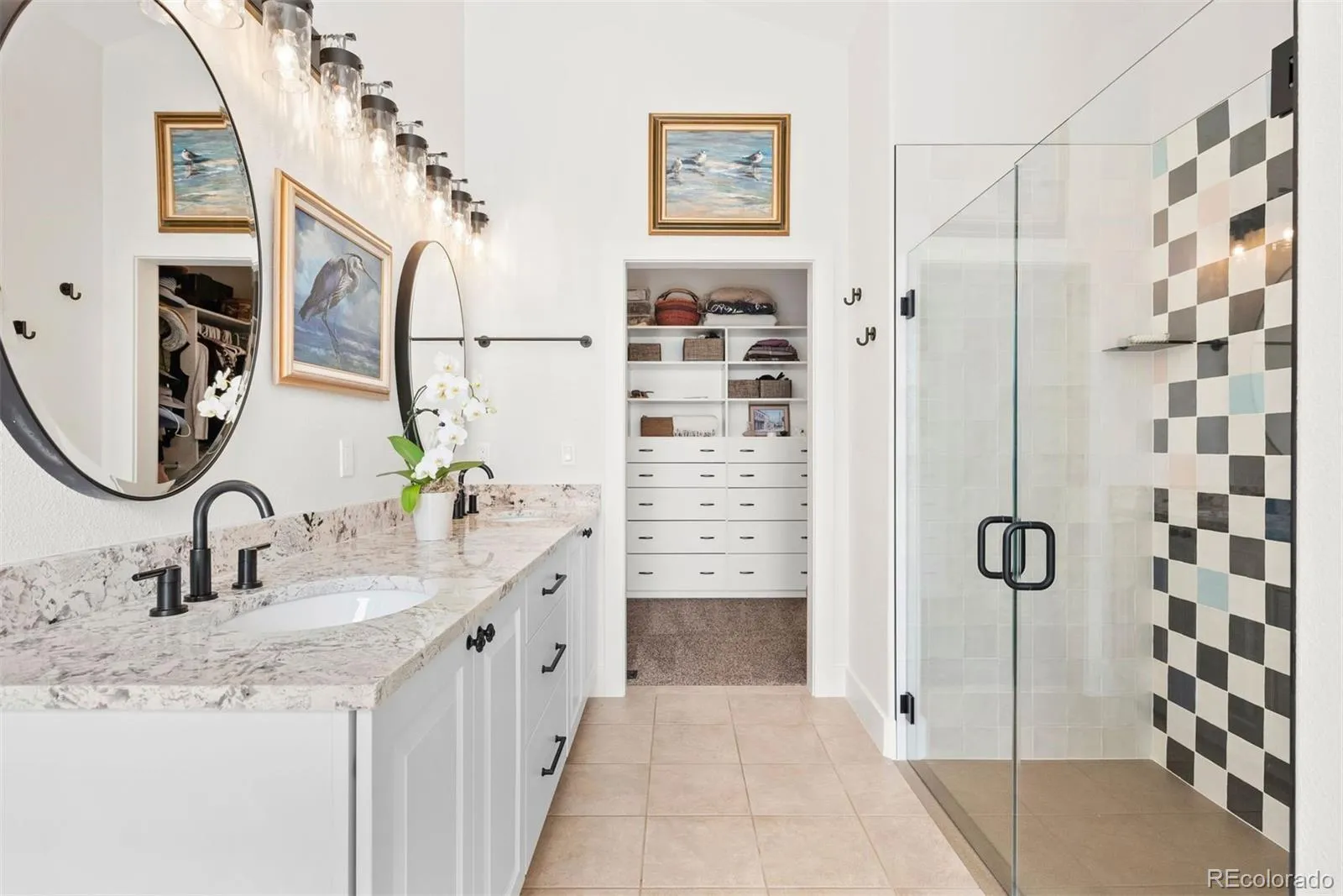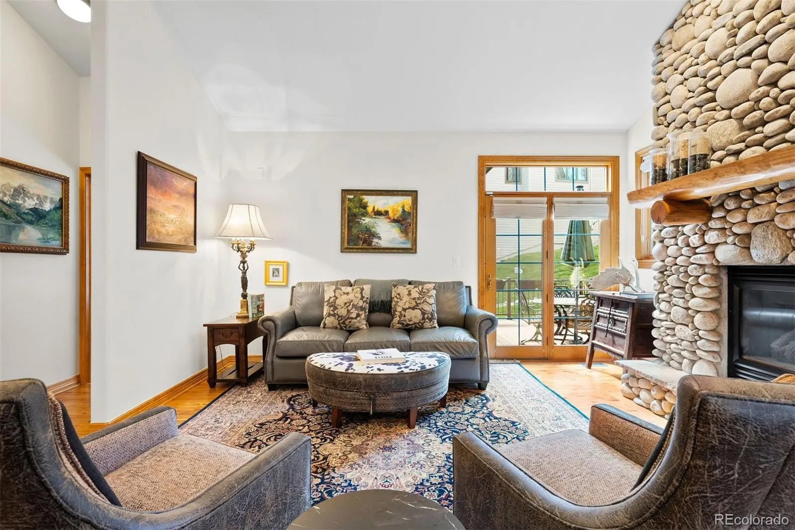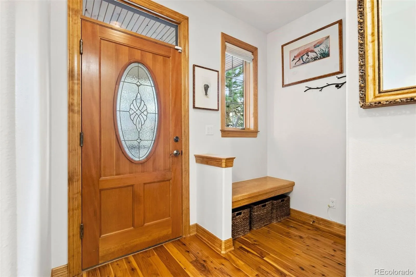 Maintenance free living in north Evergreen! Exquisitely remodeled and beautifully maintained townhome has an exceptional location backing to a lovely open meadow, and is within easy reach of nearby trails, schools, grocery shopping, the rec center and Bergen Village. ADA compliant main level living open floor plan offers quality custom updates that create a better-than-new appeal and a rare move-in ready condition. Hickory floors extend throughout the main living area. Remodeled kitchen features “Showplace” cabinetry with soft close drawers, glass fronts, crown molding plus a stylish dove-gray subway tile backsplash, farmer’s sink, modern lighting and walk-in pantry. New stainless appliances include a “Cafe” induction range with downdraft, microwave, dishwasher and a LG refrigerator. Expansive slab granite counters with bar opens to the great room providing wonderful entertainment space! Spacious dining room includes a custom side board with glass front cabinets, wine storage, shelving, drawers and a marble top. Vaulted great room is enhanced by stacked river rock gas fireplace. You will love the easy flow to the expansive south-facing newer Trex deck with iron rails. Vaulted primary suite adjoins the deck as well and features remodeled 5-piece bath with soak tub, frameless glass enclosed shower set off with colored tile, undermount sinks, slab granite, framed mirrors, new lighting and loads of natural light. Professional organizers finish the walk-in closet. Remodeled powder bath has slab granite, marble floor and a vessel sink. Recreated laundry room includes a GE Profile washer/dryer combo, sink, cabinets and tile floor. The carpeted lower level with 9′ ceiling has abundant natural light and a family room large enough to accommodate a media room, game table and office or gym. Two bedrooms share a remodeled slab granite bath. Big storage room with shelving. Fresh interior paint, new roof in 2021 and all new Andersen E series windows plus exterior paint in 2022.