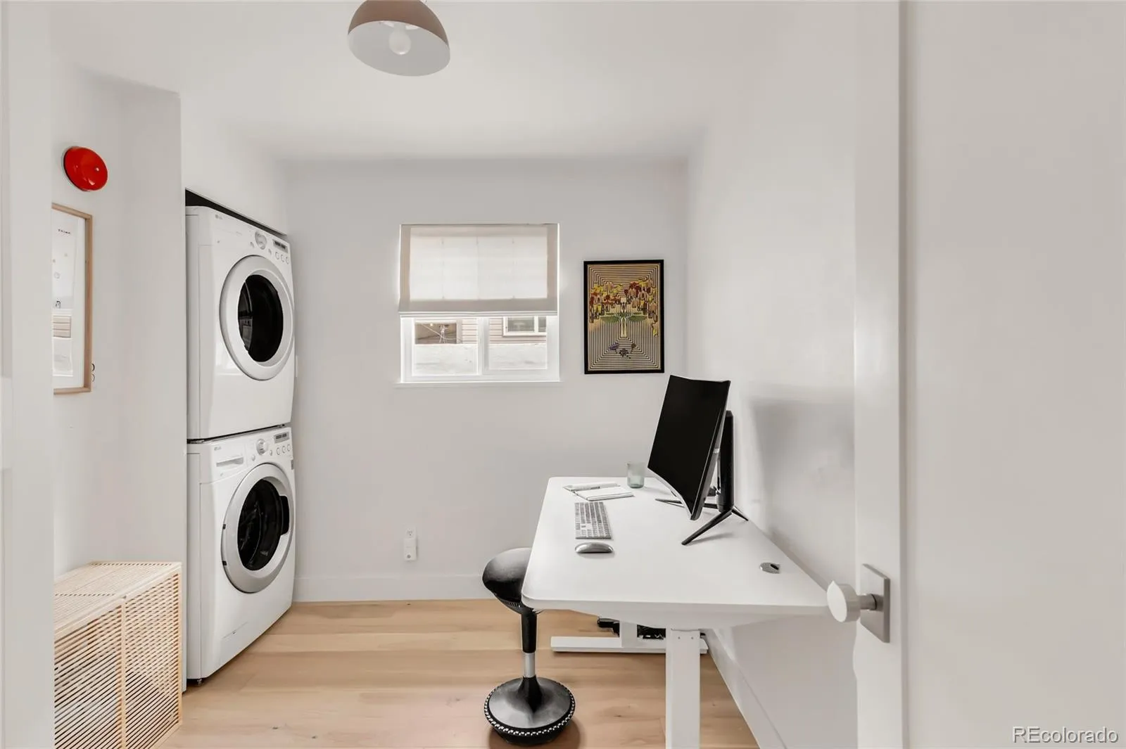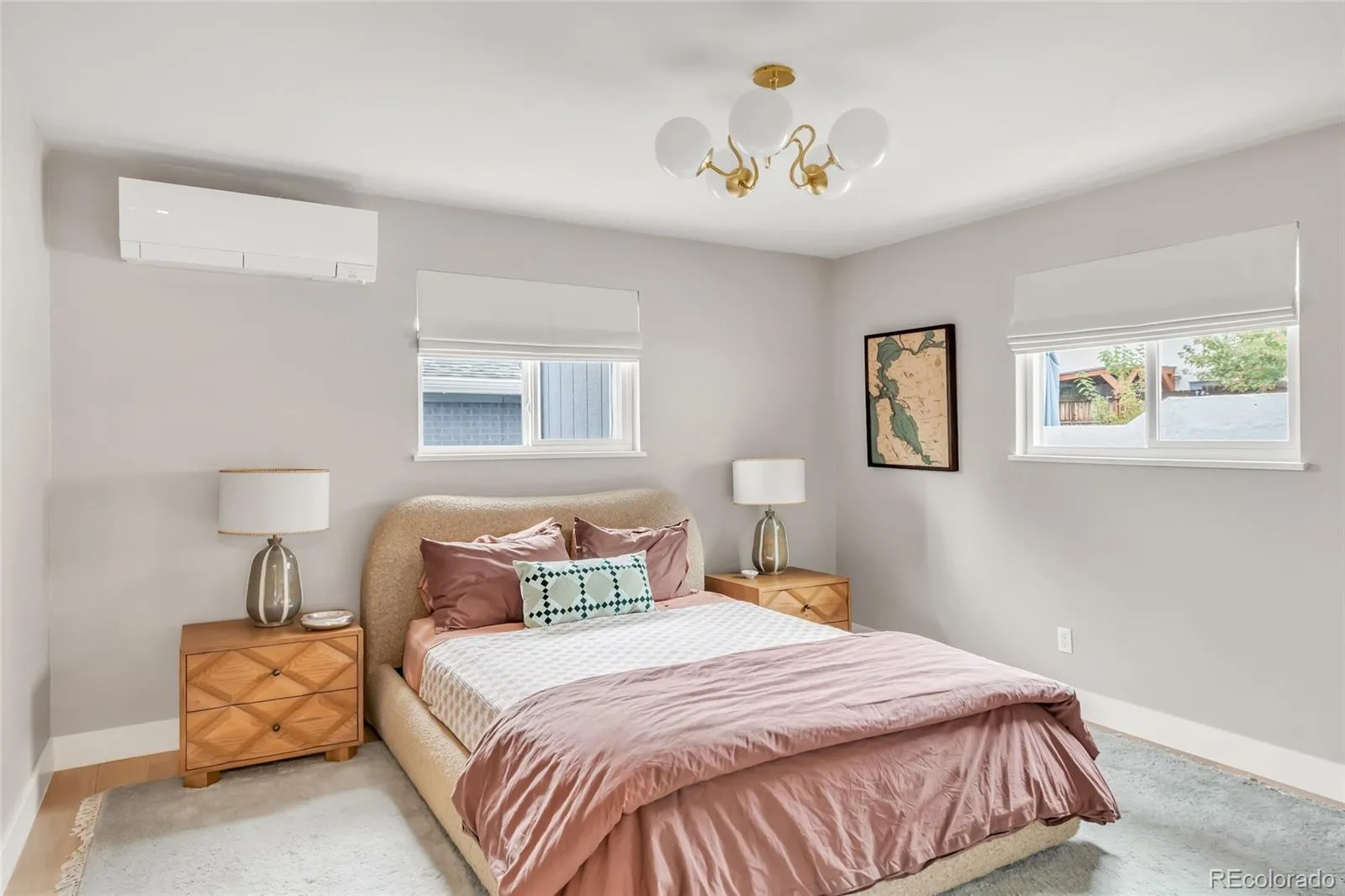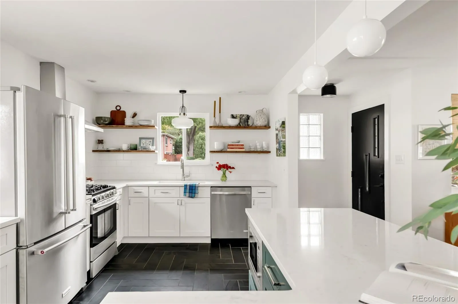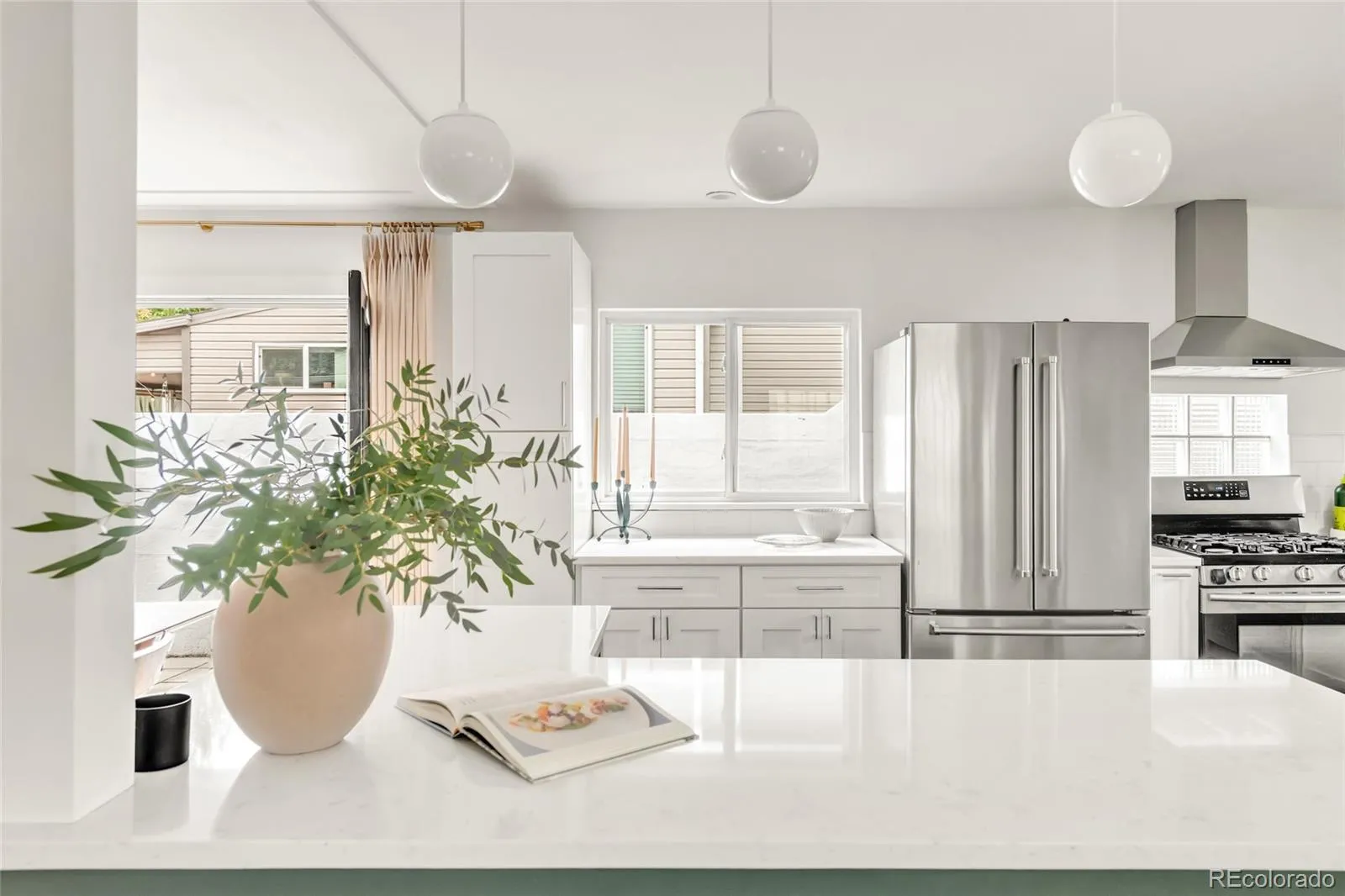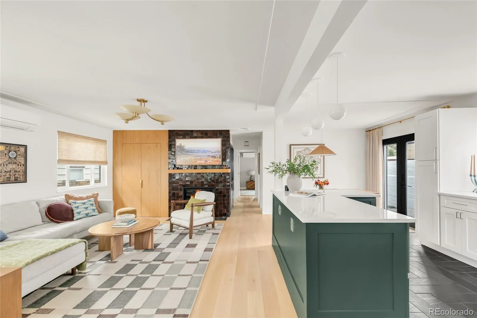 Poised on the border of Denver’s beloved Regis and Berkeley neighborhoods, this one-of-a-kind brick ranch embodies the spirit of timeless mid-century aesthetics paired with designer finishes rarely found in Denver homes priced in the $600s. A curated palette of materials and textures defines the home’s character: 6-inch white oak plank flooring, Emtek hardware, and sculptural lighting sourced from Design Within Reach, CB2, Hudson Valley, Dutton Brown, and Schoolhouse. Anchoring the great room is a 39-inch Marquis natural gas fireplace wrapped in Zia tile, framed by custom white oak wall paneling and a handcrafted mantel by Cream Modern. The great room unfolds with glass-front built-ins and a kitchen where Cashmere Carrara quartz, custom cabinets, and Brizo fixtures bring a refined touch to daily living. Comfort and efficiency converge through thoughtful upgrades, including energy-efficient heating and cooling with independent room-by-room climate control and a dedicated kitchen water filtration system. Two full-size bedrooms and a third bedroom/flex space offer versatility for guests, creative pursuits, or a home office, each featuring custom closet systems from The Container Store. French doors extend the dining area to a private patio and fully fenced yard, perfect for entertaining or giving furry friends room to roam. An oversized 2-car garage with a natural gas heater adds storage and year-round functionality. Just one block from Willis Case Golf Course and 4 short blocks from the vibrant Tennyson corridor, this residence connects effortlessly to Denver’s favorite destinations, including Huckleberry Roasters, Two Hands, Bakery Four, Hey Kiddo, Gelato Boy, Atomic Cowboy, The Tatarian and many more. Visit West Highland in 7 minutes, RiNo in 8, LoHi in 9, and Downtown Denver in 10, plus instant access to I-70 for mountain escapes and flights from DIA. The result is a home as comfortable as it is connected, where design and convenience converge in harmony.