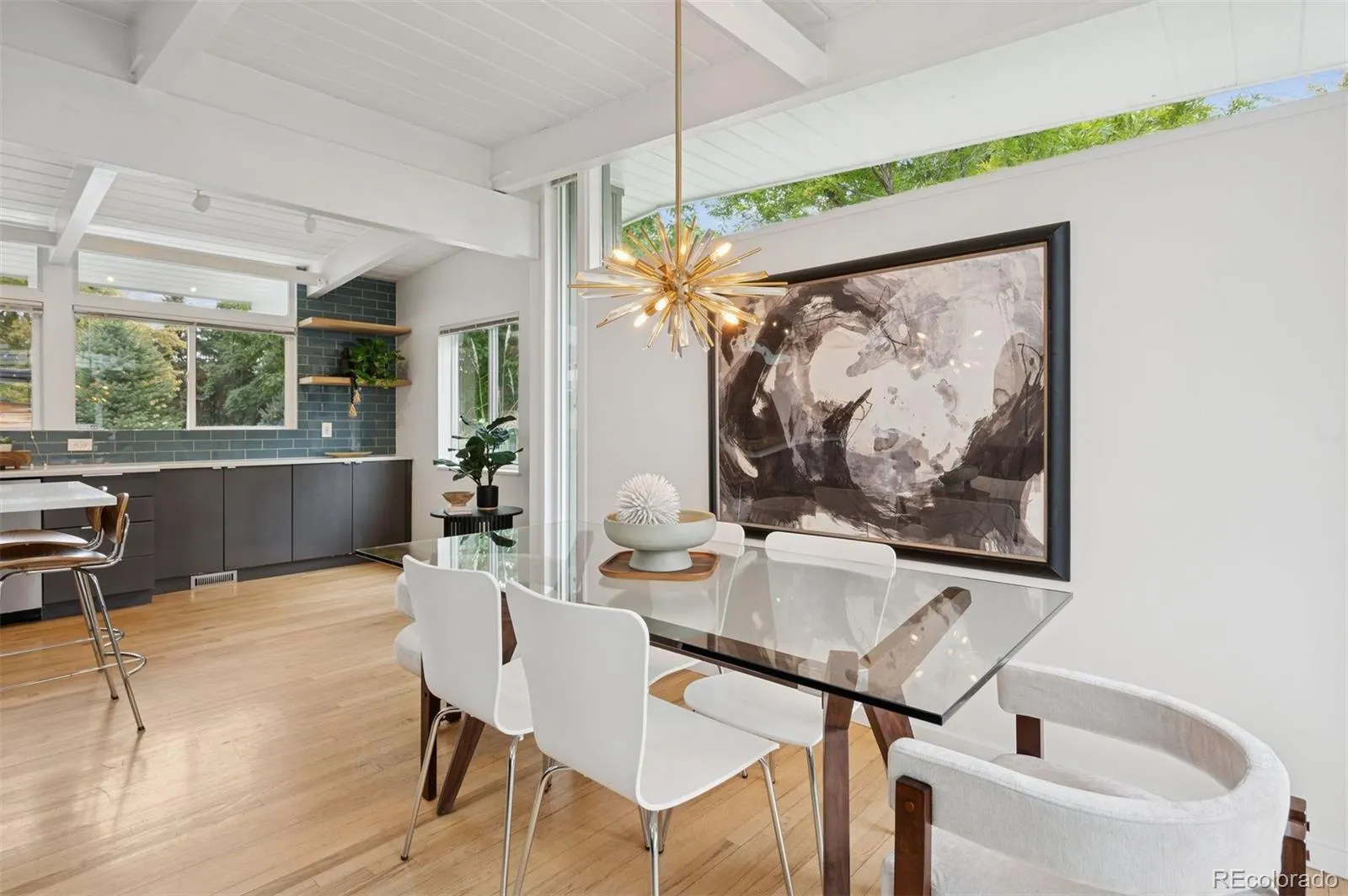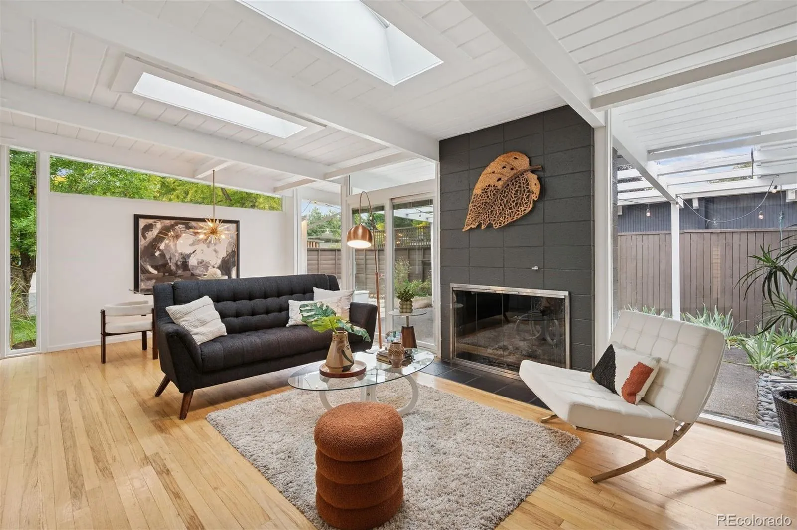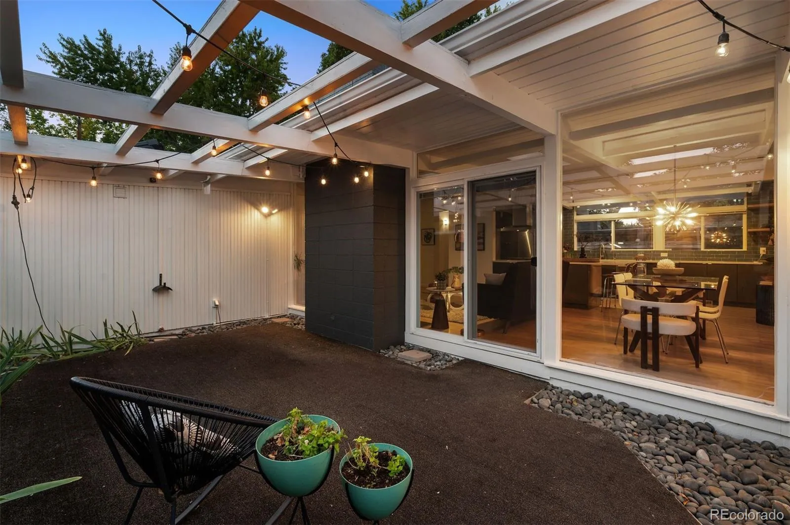 Welcome to the heart of Krisana Park, Denver’s Premiere Mid-Mod enclave. Located on a larger lot directly in the epicenter of this coveted neighborhood, 1355 S Elm St boasts all the original Eichler-inspired charm, with the added overlay of tasteful updating for both style and livability. The requisite clerestory windows, pristine mid-mod lines, streaming light and classic form all stand true, while the oversized one car garage, multiple skylights, full kitchen/bath updates, rare expanded lanai, modern landscaping, new fixtures and finishes all optimize the experience. Garden beds and multiple outdoor living spaces complete the meld of indoor and outdoor living and entertaining. The last full remodel was down to the studs with added insulation, all new windows, new kitchen/baths, skylights and landscaping. Brand new fresh paint inside and out, radon mitigation, upgraded electrical ready for EV charging, Nest thermostat, Racchio sprinklers, reverse osmosis water filtration system, high-end luxury hot tub, additional professional landscaping/hardscaping, new driveway, and newer systems/appliances throughout. This prime SE Denver location is close to parks, trails, shopping, restaurants, and transit with quick access to I-25 to downtown and the mountains. Winner of the Mayor’s Design Award, Krisana Park is truly a special place to call home.