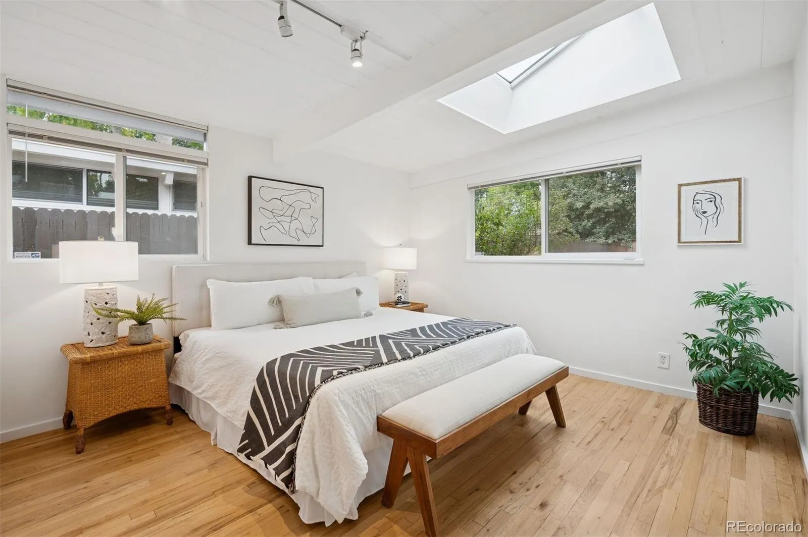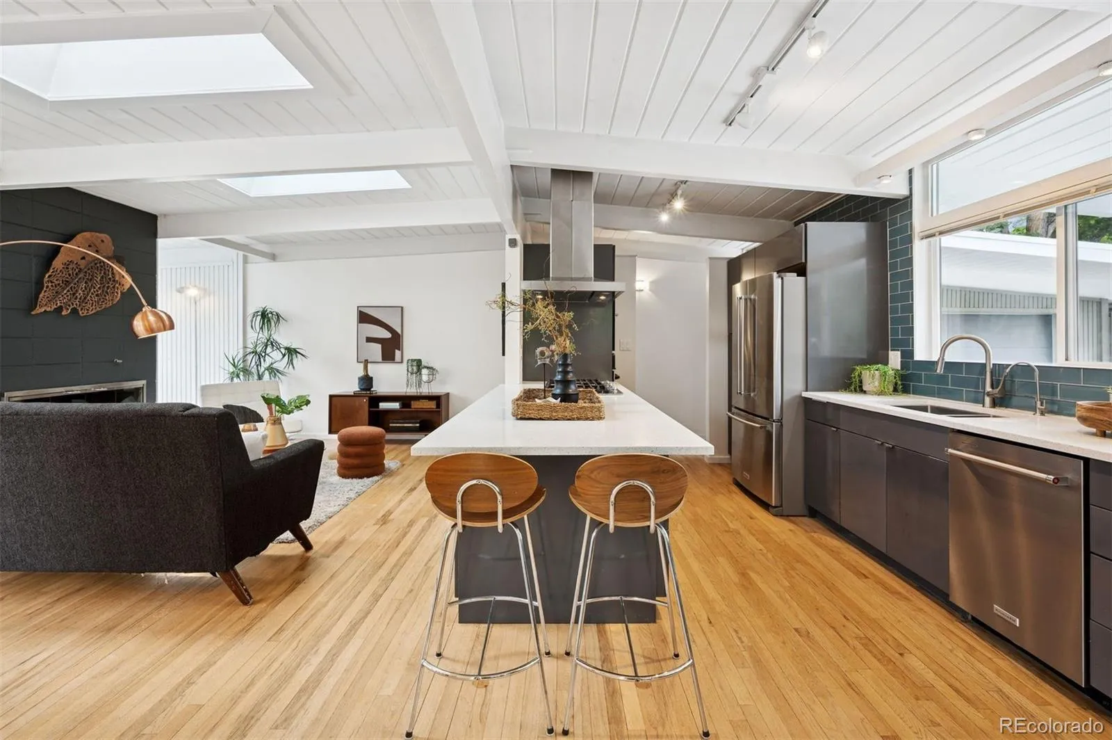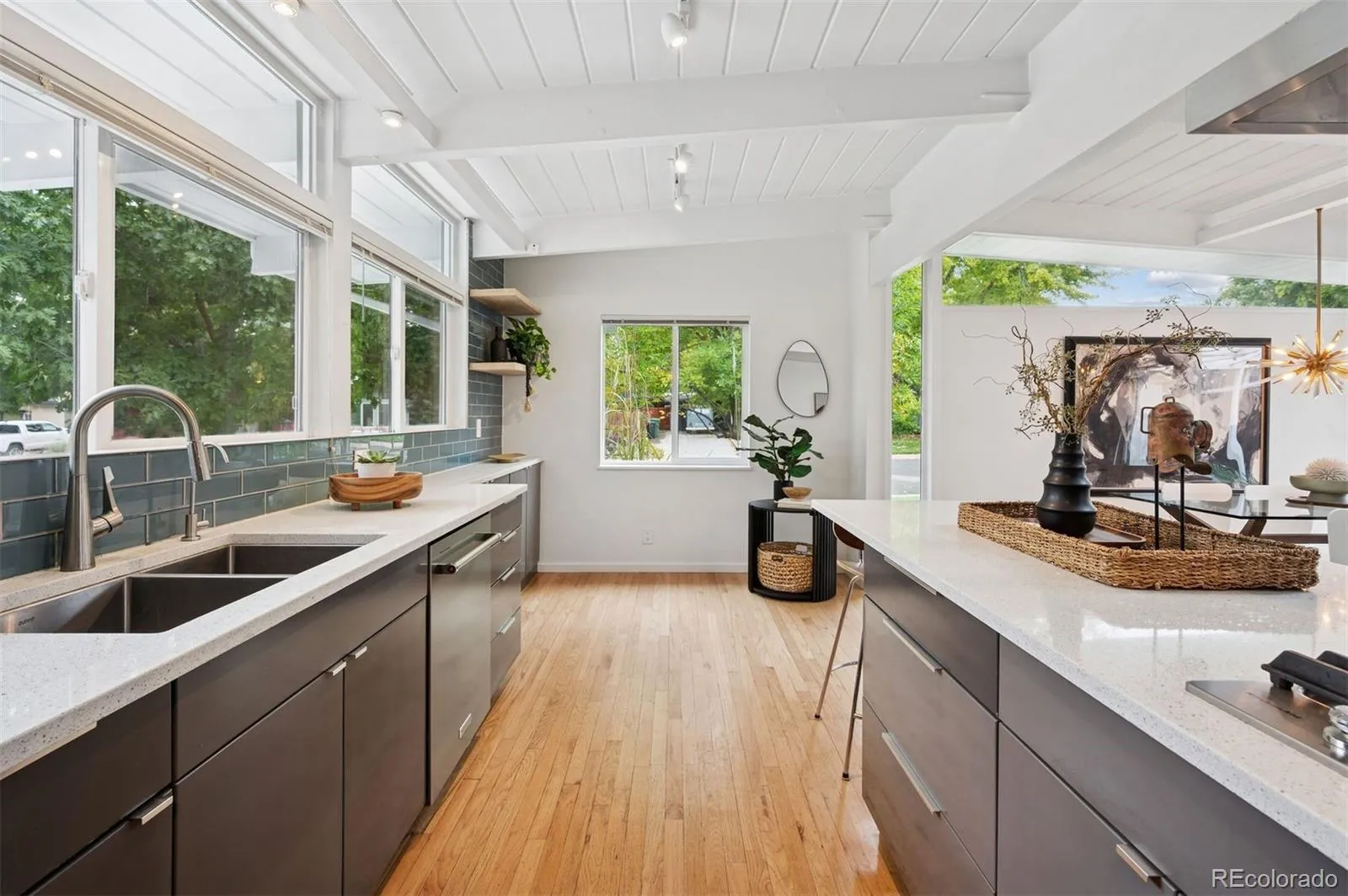 Welcome to the heart of Krisana Park, Denver’s Premiere Mid-Mod enclave. Located on a larger lot directly in the epicenter of this coveted neighborhood, 1355 S Elm St boasts all the original Eichler-inspired charm, with the added overlay of tasteful updating for both style and livability. The requisite clerestory windows, pristine mid-mod lines, streaming light and classic form all stand true, while the oversized one car garage, multiple skylights, full kitchen/bath updates, rare expanded lanai, modern landscaping, new fixtures and finishes all optimize the experience. Garden beds and multiple outdoor living spaces complete the meld of indoor and outdoor living and entertaining. The last full remodel was down to the studs with added insulation, all new windows, new kitchen/baths, skylights and landscaping. Brand new fresh paint inside and out, radon mitigation, upgraded electrical ready for EV charging, Nest thermostat, Racchio sprinklers, reverse osmosis water filtration system, high-end luxury hot tub, additional professional landscaping/hardscaping, new driveway, and newer systems/appliances throughout. This prime SE Denver location is close to parks, trails, shopping, restaurants, and transit with quick access to I-25 to downtown and the mountains. Winner of the Mayor’s Design Award, Krisana Park is truly a special place to call home.