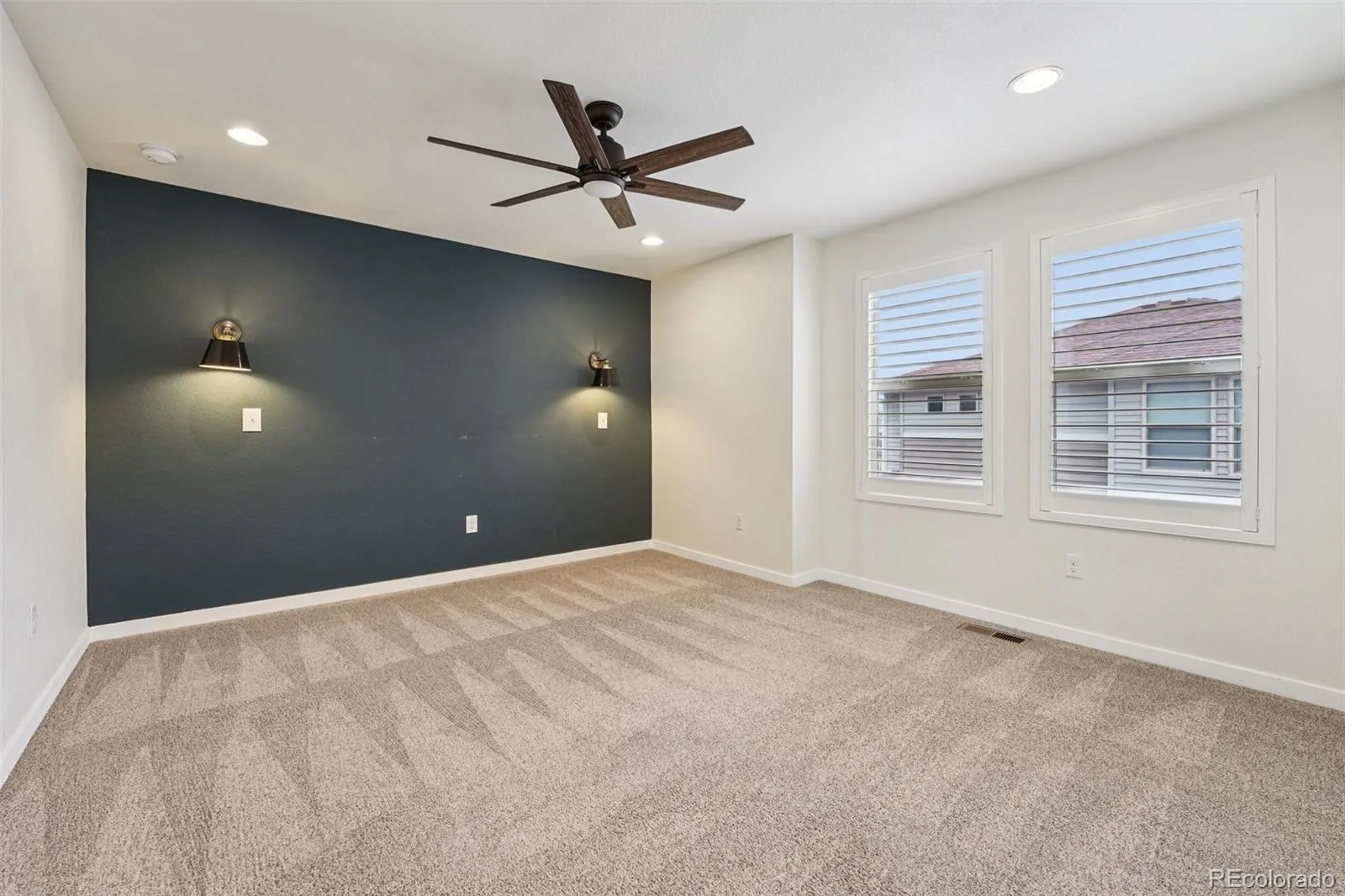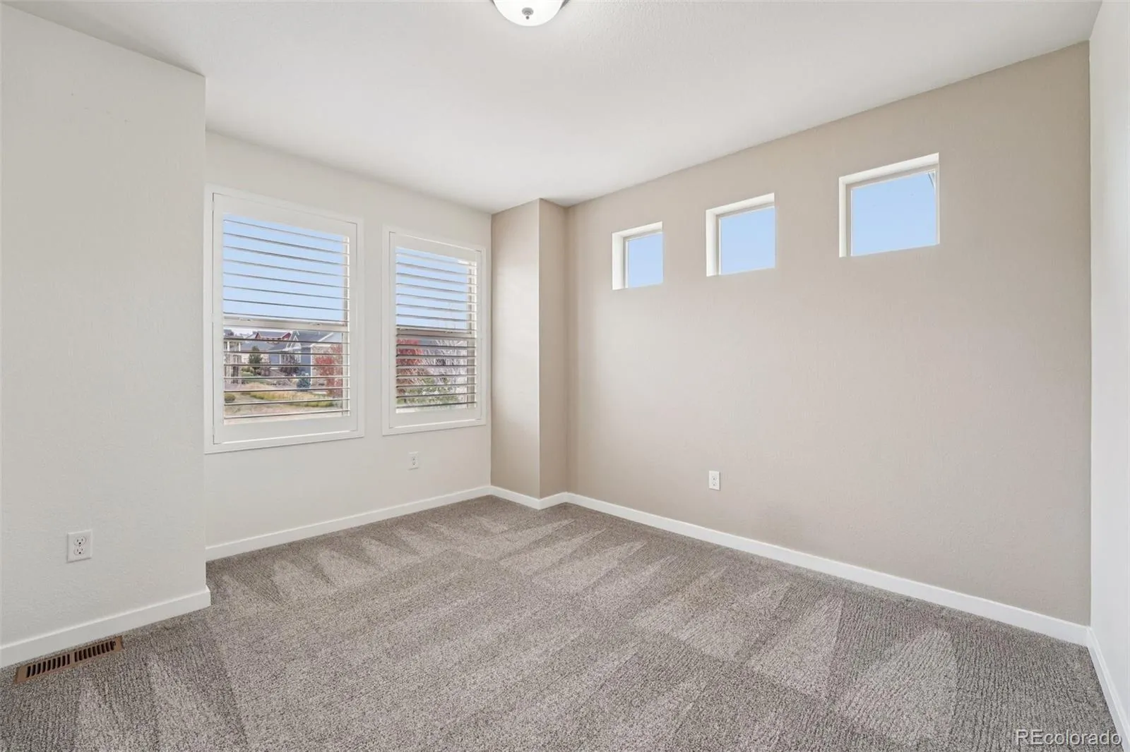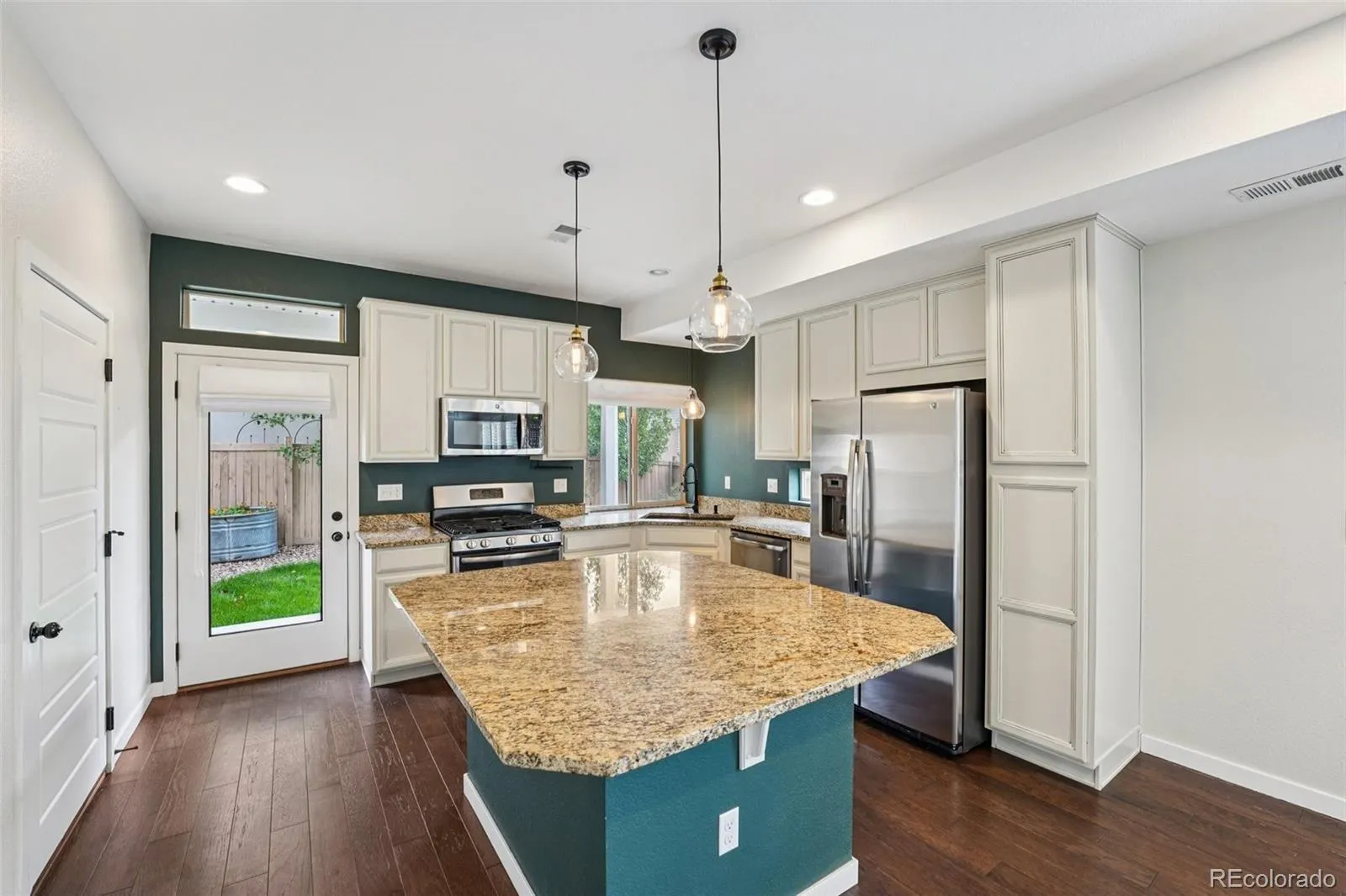 Discover this beautifully upgraded home in The Meadows, ideally situated on a corner lot across from open space and just steps from walking and biking trails. The main level is open and bright, with the living room, dining area, and kitchen flowing seamlessly together to create an inviting space perfect for everyday living and entertaining. Inside, rich wood floors, granite countertops, upgraded cabinetry and appliances, and plantation shutters add warmth and sophistication throughout. The upper level features two spacious bedrooms, two bathrooms, a versatile loft area, and a convenient upstairs laundry, offering both comfort and functionality. Enjoy the privacy of your tree-lined backyard oasis, complete with custom cedar garden boxes, organic soil, drip irrigation for each tree, and a lush, landscaped lawn with custom trellis—a perfect retreat surrounded by nature, deer, and local birdlife. Additional upgrades include designer light fixtures and a fully finished and insulated garage with built-in shelving. Smart home features like pre-wired surround sound, a video doorbell, security system, and smart thermostat provide modern convenience. Flooded with natural light and located near Douglas County schools, The Promenade, and Meadows shops, dining, and entertainment, this home blends privacy, beauty, and an unbeatable location.