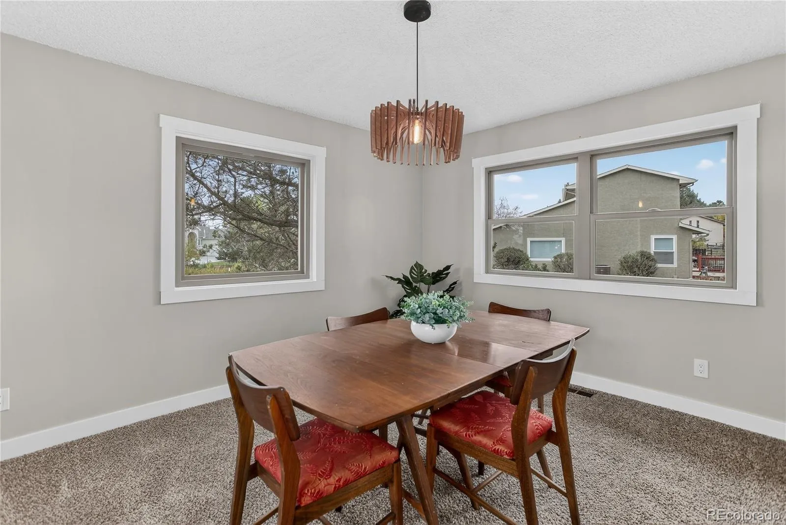 This warm and inviting residence in the heart of Gleneagle offers exceptional living space with thoughtful updates throughout. The main level features a beautifully refreshed living room with new paint and windows, and a welcoming wood-burning fireplace. The open kitchen is perfect for entertaining with the enhancement of new recessed lighting and abundant natural light flowing into the breakfast nook and dining area. The family room shines with recessed lighting, fresh paint, and new windows, creating the ideal space for gatherings. The primary suite includes a newly renovated bath and windows for a fresh, modern touch. Additional highlights include a finished basement remodel, whole-home A/C, a high-efficiency furnace, 150-amp electrical panel, and hardwood floors. Outdoors, the low-water meadow backyard awaits your next design vision, while the front yard features a sprinkler system and mature curb appeal. The south-facing garage is a hidden gem—bright and functional even on snowy mornings. With exterior paint completed just three years ago, this home is ready to enjoy. Ideally located near Fox Run Regional Park, award-winning District 20 schools, and convenient access to I-25, shopping, and dining in Northgate and Monument.