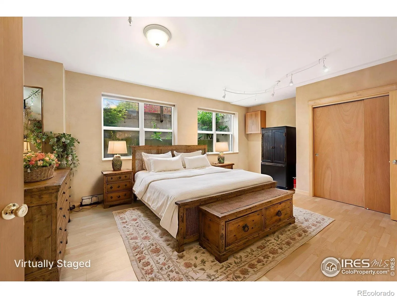 Welcome to Silver Sage Village – Boulder’s best-kept secret! This well established and vibrant 50+ cohousing community embodies the spirit of “Aging in Community.” Members enjoy the privacy of their own beautiful homes along with exceptionally cared for shared amenities – flourishing gardens, indoor and outdoor gathering spaces, a bike shed, wood shop, and a Common House equipped with a gourmet kitchen, library, craft room, exercise room, guest room and extra storage space. The HOA fee covers heat, water, sewer, trash, and snow removal. The home itself is a low-maintenance, rare 1/2 duplex, offering 1960 sf of light-filled living space, 2 spacious patios, a yard, and a detached garage. The main level features an open kitchen, dining and living area with vaulted ceilings, a skylight, and gleaming hardwood floors. The main level primary bedroom suite consists of a sleeping area and a separate office, linked by 2 ample closet spaces (one with laundry hookups), and a large full bathroom with dual sinks. The lower level offers two additional bright, generously sized rooms that allow options for a studio, office, or bedrooms, plus a second full bath, laundry room with sink, and a sizable storage and utility room. Enjoy year-round comfort with baseboard heat and passive solar warmth in winter, and a swamp cooler, mini-split and additional included window AC unit for summer. The lush yard invites gardening or space for pets, with the option for community maintenance. With just 16 owner-occupied homes, Silver Sage listings typically come along fewer than once per year! You’ll be delighted to get to know your neighbors here through regular potlucks, community projects, and celebrations. To top it off, this home is ideally located in a quiet neighborhood near open space, parks, trails, and the vibrant NoBo Art District’s restaurants and galleries, with easy access to public transportation.