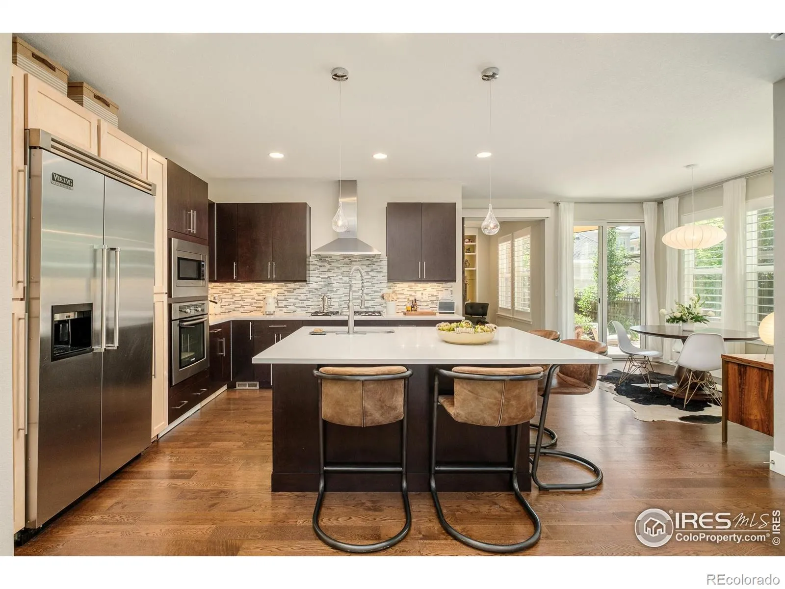 Located in sought-after Central Park North, this stunning Infinity Lime home is perfectly situated on a highly desirable lot close to Central Park, and the Westerly Creek Open Space and directly across from the Jet Stream Pool. Step inside to an open-concept floor plan with vaulted ceilings, custom-made plantation shutters, and abundant windows that flood the space with natural light. The gourmet kitchen is equipped with Viking and Bosch appliances, a glass backsplash, quartz countertops, and a large island that comfortably seats four. The living room features a gas fireplace with a floating metal mantel and custom shelving. Additionally, the a sliding barn door opens to a main floor office withcustom-built bookcases. The second floor offers 3 bedrooms and a light-filled loft, which could serve as a second office or an additional sitting area. An oversized primary suite features a walk-in closet with built-in cabinetry. A luxurious 5-piece bath with a modern soaking tub completes the private suite. Two additional bedrooms, a full bath, and a laundry room with a sink and cabinetry complete the second floor. The unfinished basement features a large egress window and is pre-plumbed for a full bath ready for your personal touch. Hunter Douglas plantation shutters throughout the entire home provide privacy with elevated elegance. The fully landscaped and fenced backyard includes mature trees, a porch, a patio, and a redwood deck. Located near top-rated schools, Light Rail, I-70, Downtown, and DIA, this beautifully updated home is a rare find in one of Central Park’s most desirable locations. Don’t miss out – make it yours before the holidays!