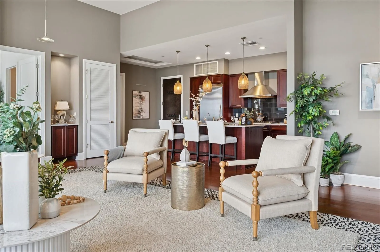 Discover refined sophistication in this very rare west-facing penthouse in the coveted Landmark West Tower, where breathtaking Rocky Mountain views meet soaring 15-foot ceilings. Expansive windows flood the open-concept interior with natural light, showcasing a designer kitchen equipped with Viking appliances, wine fridge and elegant finishes. An oversized balcony off the main room is ideal for effortless entertaining. The spacious primary suite offers a peaceful retreat, complete with a jet tub, custom walk-in closet, and private balcony. A versatile secondary bedroom provides an ideal guest suite or home office with walk-in closet. Additional conveniences include an in-unit laundry with washer/dryer. Residents of The Landmark enjoy five-star amenities: 24-hour concierge, two state-of-the-art fitness centers, a yoga studio, outdoor pools & hot tubs, saunas, wine room, movie screening room, library, business center, guest suite, & terrace with water feature. Just steps from the area’s finest dining, shopping, & entertainment, with quick access to major highways & DIA, this home offers the rare opportunity to experience sophistication & serenity in one extraordinary address. Welcome to your Landmark lifestyle — where every detail is elevated.