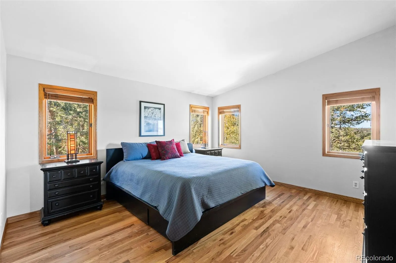 Welcome to your mountain retreat in south Evergreen! This stunning 3-bedroom, 3-bathroom home sits on 1.15 acres, offering breathtaking east-facing mountain views. Enjoy your morning coffee on the freshly stained deck while taking in the sweeping views, or soak in the scenery from the luxurious soaking tub in the primary suite. The spacious kitchen features a large island, coffee/breakfast bar, and dining area — perfect for gatherings. All three bedrooms are conveniently located on the main level, while the walkout lower level offers flexible living space with a sauna and office, easily adaptable to a mother-in-law suite or guest quarters. The laundry room on this level includes a sink, dishwasher, and ample space for a refrigerator and microwave, providing convenience and functionality for guests or multi-generational living. Outdoor enthusiasts will love the proximity to Flying J Ranch Park and nearby trails. Recent updates include a freshly stained exterior and deck (September 2025) and a new roof (January 2024) for peace of mind. The fenced yard includes a dog run, and there’s easy exterior access from the 2-car garage. Enjoy the friendly community atmosphere with a *voluntary* HOA and social events, all just 2 miles from Highway 285 — offering the perfect blend of tranquility and convenience. Don’t miss this Evergreen gem! Visit www.27882Bonanza.com for VIDEO, FLOOR PLAN, and 3D TOUR.