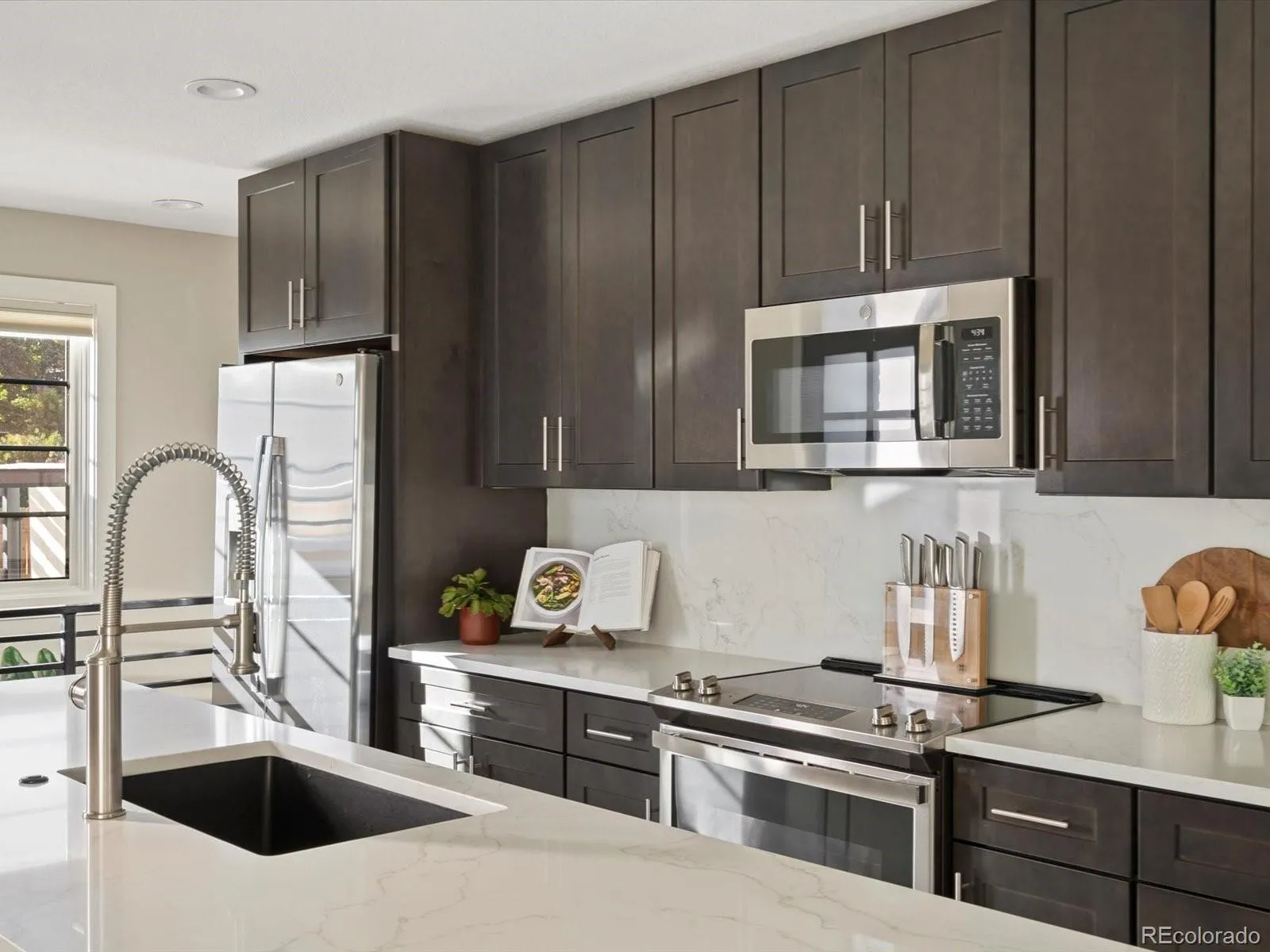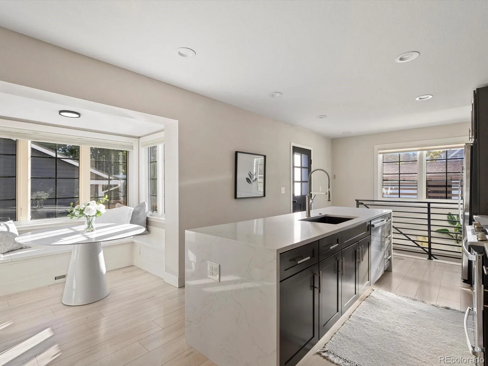 Step inside to a light-filled open layout featuring newer laminate wood floors, updated windows, and a seamless flow between living spaces. The beautifully remodeled kitchen is a true showpiece with custom cabinetry, high-end quartz countertops, and thoughtful finishes. Just off the kitchen, the window-filled breakfast nook is an absolute dream, wrapping you in natural light and creating the perfect spot for morning coffee, casual meals, or cozy afternoons with a book. It’s a space that feels both warm and inspiring.
