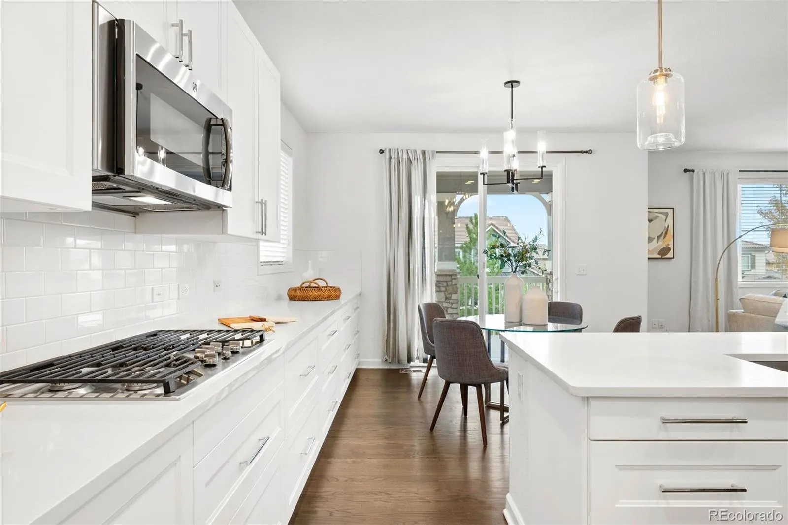 Perfectly positioned on a spacious corner lot in a quiet cul-de-sac, this beautifully remodeled 5-bedroom home is nestled in the highly sought-after Backcountry neighborhood. Offering one of the largest backyards on the street, the outdoor space is ideal for both relaxation and entertaining — enjoy unobstructed mountain views from the rear deck or gather around the cozy firepit on the flagstone patio. Inside, the heart of the home is the stunningly renovated kitchen, thoughtfully designed for entertaining. It features crisp white quartz countertops, white shaker cabinets, and a large center island that seamlessly connects to the inviting family room, where a stylish gas fireplace creates a warm focal point. A formal dining room and convenient powder room complete the main level. Upstairs, you’ll find three generously sized bedrooms, a spacious loft, and a laundry room perfectly situated for ease of use. The fully finished garden-level basement adds incredible versatility with a bright and open great room, a built-in wet bar, two additional bedrooms, an office, and a full bathroom. Enjoy the perfect blend of comfort and convenience with a prime location just a short walk to the neighborhood coffee shop and surrounded by scenic walking and biking trails. Residents also enjoy access to the Sundial House — the community’s vibrant hub — featuring a pool, hot tub, fitness center, and more. Relax on the Sundial House deck while taking in breathtaking views or explore nearby shopping and dining just minutes away. This rare gem has been fully upgraded and is move-in ready — offering the best of Backcountry living.