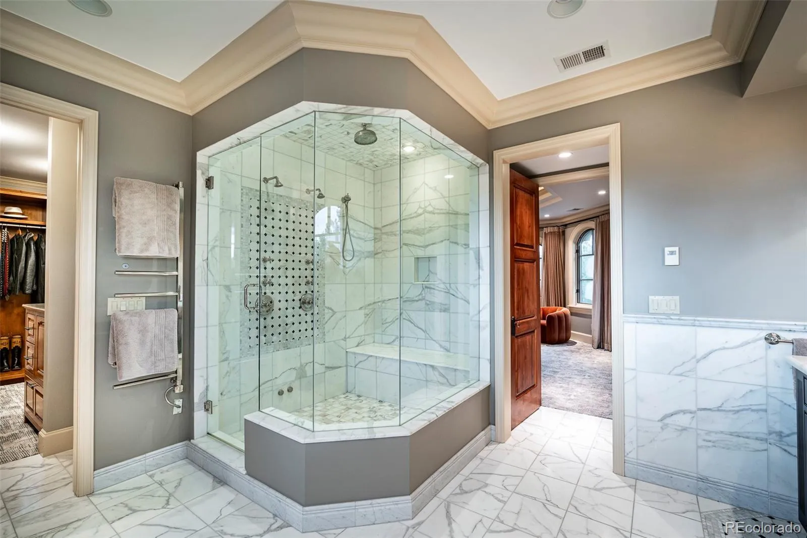 Discover refined living in this exceptional Parkway Estate, a signature property in Denver’s award-winning Lowry community, known for its well-designed layout, walkability, and pocket parks. This distinguished home offers two private office spaces and primary suites—one conveniently located on the main floor and another upstairs—perfect for hosting guests or accommodating multigenerational living. Rich in detail and sophistication, the home showcases a light-filled open layout where floor-to-ceiling windows and glass-lined walls create a harmonious flow between indoor comfort and outdoor elegance. The gourmet kitchen is a true centerpiece, featuring premium Quartzite countertops, dual sinks, two ovens, and twin dishwashers, all designed to inspire culinary creativity. Gather in the dramatic hearth room or relax in the beamed-ceiling living space, complemented by a formal dining area, butler’s pantry, and a main-level wine cellar. Warmth and character define the study, where a fireplace and paneled walls offer an elegant retreat. The main-level primary suite exudes privacy and luxury with its own laundry, five-piece bath, and personal terrace. Upstairs, a grand staircase leads to a second lavish primary suite complete with a fireplace, an expansive walk-in closet with custom built-ins, a laundry area, a marble steam shower and soaking tub. Three additional en suite bedrooms, a library-style office nook, and a second laundry room provide thoughtful functionality. The lower level is an entertainer’s dream with a home theater, billiards room, gym with sauna, wet bar, and a sixth private suite. Step outside to enjoy a cozy outdoor fireplace and a covered veranda for year-round entertaining. Perfectly positioned near Lowry Town Center, offering a variety of retail shops, restaurants, a lively beer garden, the neighborhood library, and your favorite Starbucks—with easy access to Cherry Creek, Downtown Denver, Denver International Airport, and major medical campuses.