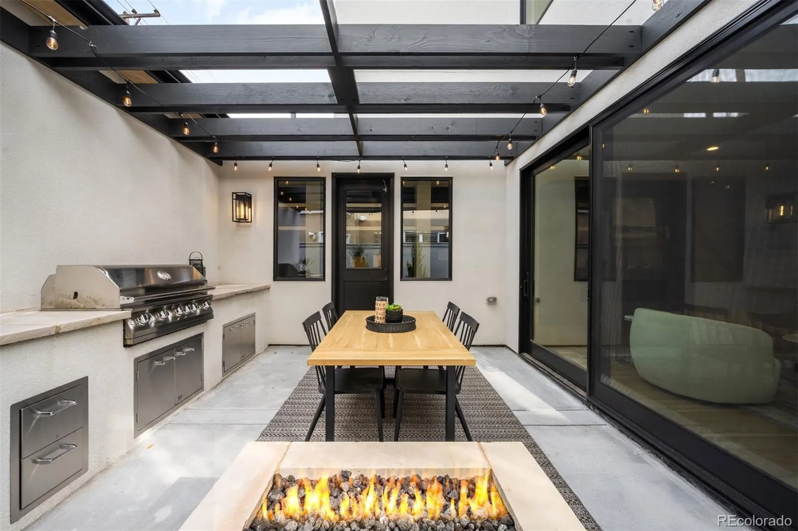 The pinnacle of modern luxury has arrived in Cherry Creek North. Crafted by Second Story Development, this newly built residence delivers nearly 4,000 finished square feet of thoughtfully designed living space that blends striking contemporary architecture with timeless elegance. The main level unfolds around a chef’s kitchen of rare quality, equipped with a 48″ Wolf range, 42″ Sub-Zero refrigerator, dual Bosch dishwashers, wine cooler, and a grand island that invites connection. Custom cabinetry and a walk-in pantry provide a seamless blend of elegance and function. Floor-to-ceiling windows frame the dining room and flood the interiors with natural light, while the living room is anchored by a dramatic gas ribbon fireplace. Expansive glass doors open to a private courtyard sanctuary with a built-in grill and stone fireplace, creating a seamless extension of the living space. The upper level is crowned by a remarkable primary suite with a private sitting area, stone-surround fireplace, and floor-to-ceiling windows that capture both light and views. A spa-like bath with soaking tub, glass shower, dual vanities, and a custom walk-in closet completes this retreat. Two additional en suite bedrooms, a lounge with wet bar, and a rooftop deck with panoramic city and mountain views elevate the experience. The lower level offers an expansive recreation and media space with a custom bar and built-ins, along with a secluded guest suite. An elevator provides effortless access across all three levels, underscoring the home’s commitment to both convenience and luxury. Wide-plank hardwoods, striking stone and metal accents, professional landscaping, and an oversized attached garage further distinguish this property. Just steps from Cherry Creek’s acclaimed dining, galleries, and boutiques, this home is not simply a residence but a statement of elegance and a rare opportunity to live within Denver’s most coveted lifestyle.